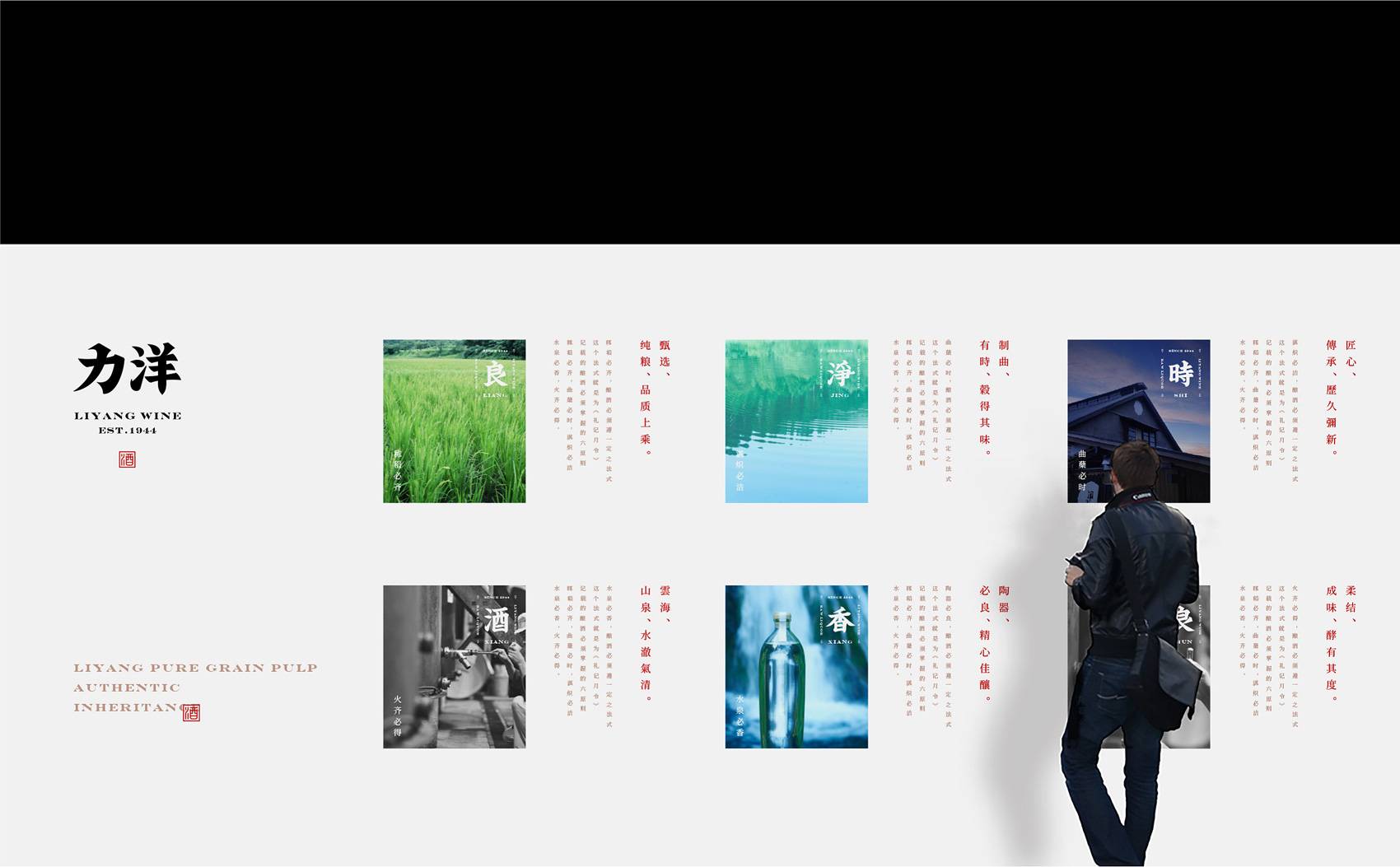 在设计之初,我们发现力洋品牌现状,存在产品线混乱、品牌特性不清晰、客群模糊等问题。包装缺少一个经典瓶型,缺乏具备原创性、代表性、适用性的瓶型设计。且品牌新形象气质的塑造,一定具备传统白酒差异化的视觉气质。