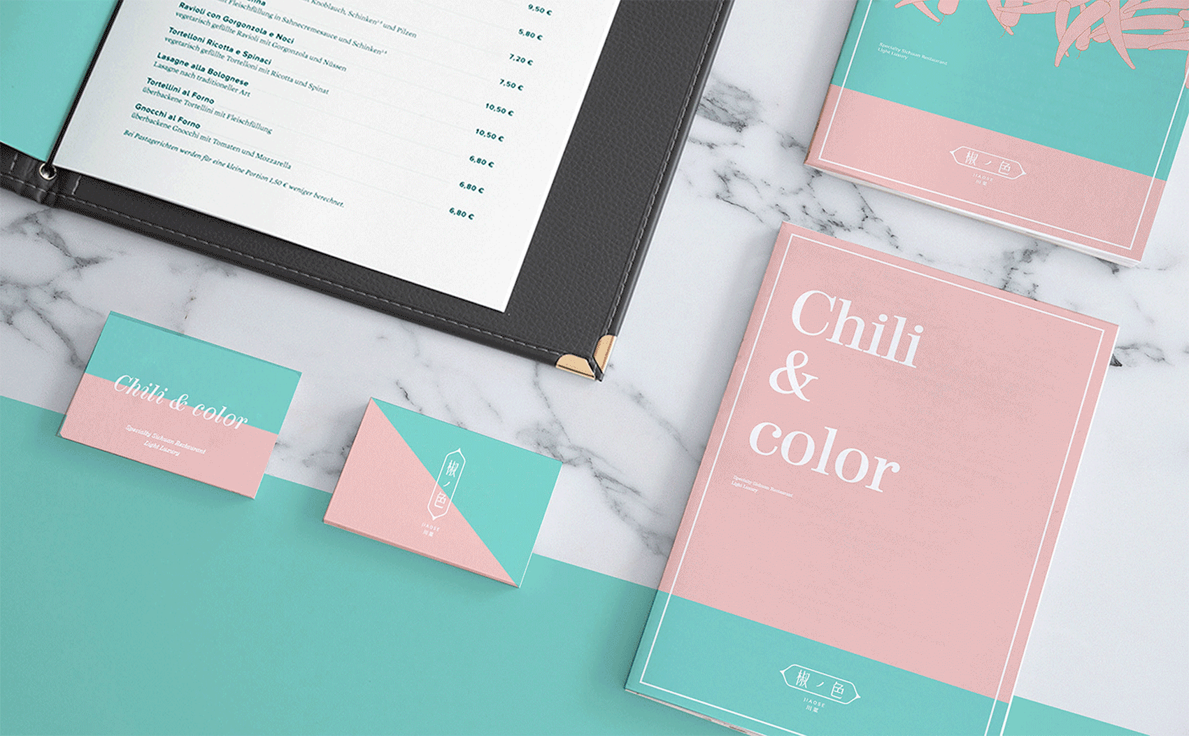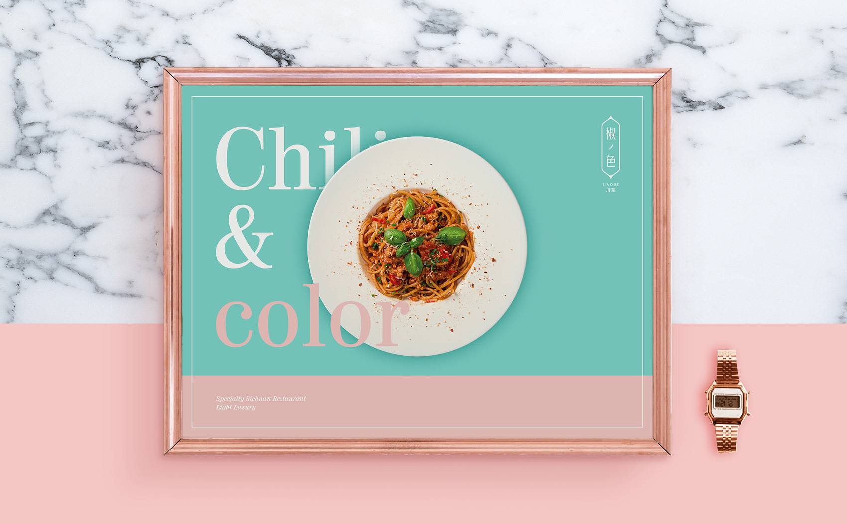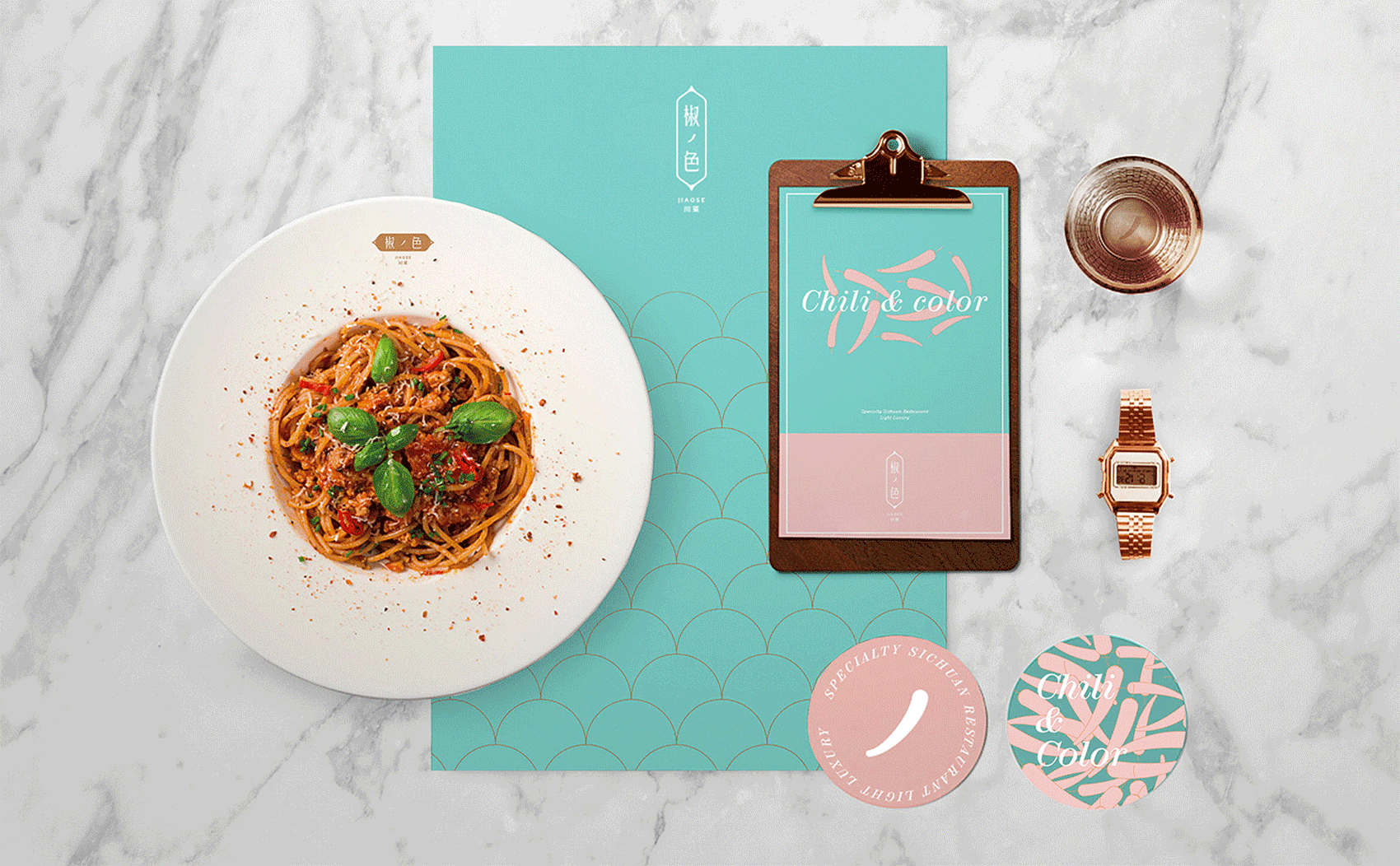 设计必须一目了然,基于品牌的最大资产品牌名称。椒色,从认知出发即是:椒=辣椒;川菜=辣椒;色=色彩;基于认知进行再创造,辣椒在某种角度是能够代表川菜的。设计不是创造全新的东西,而是基于认知、历史、文化,进行重组关联。