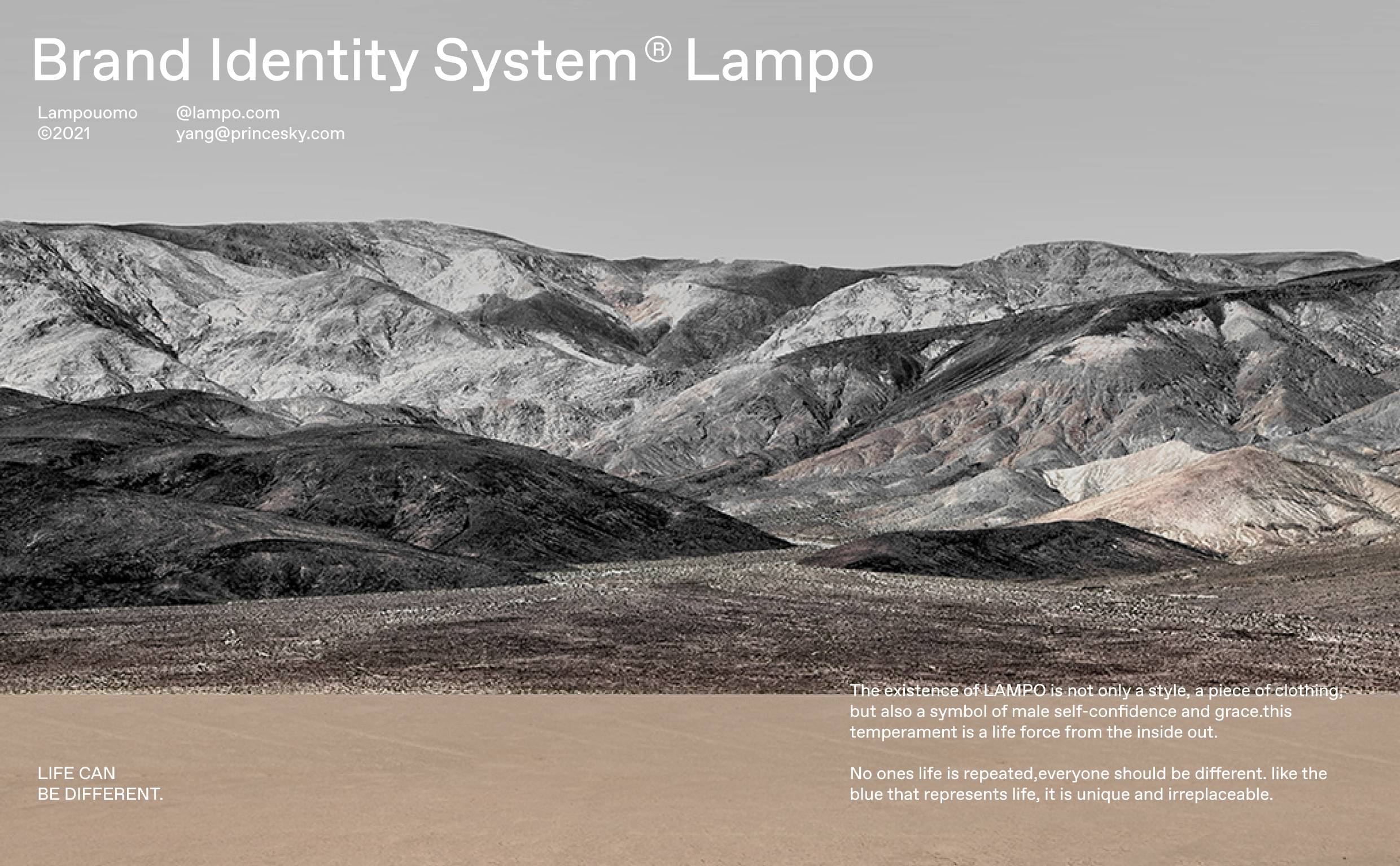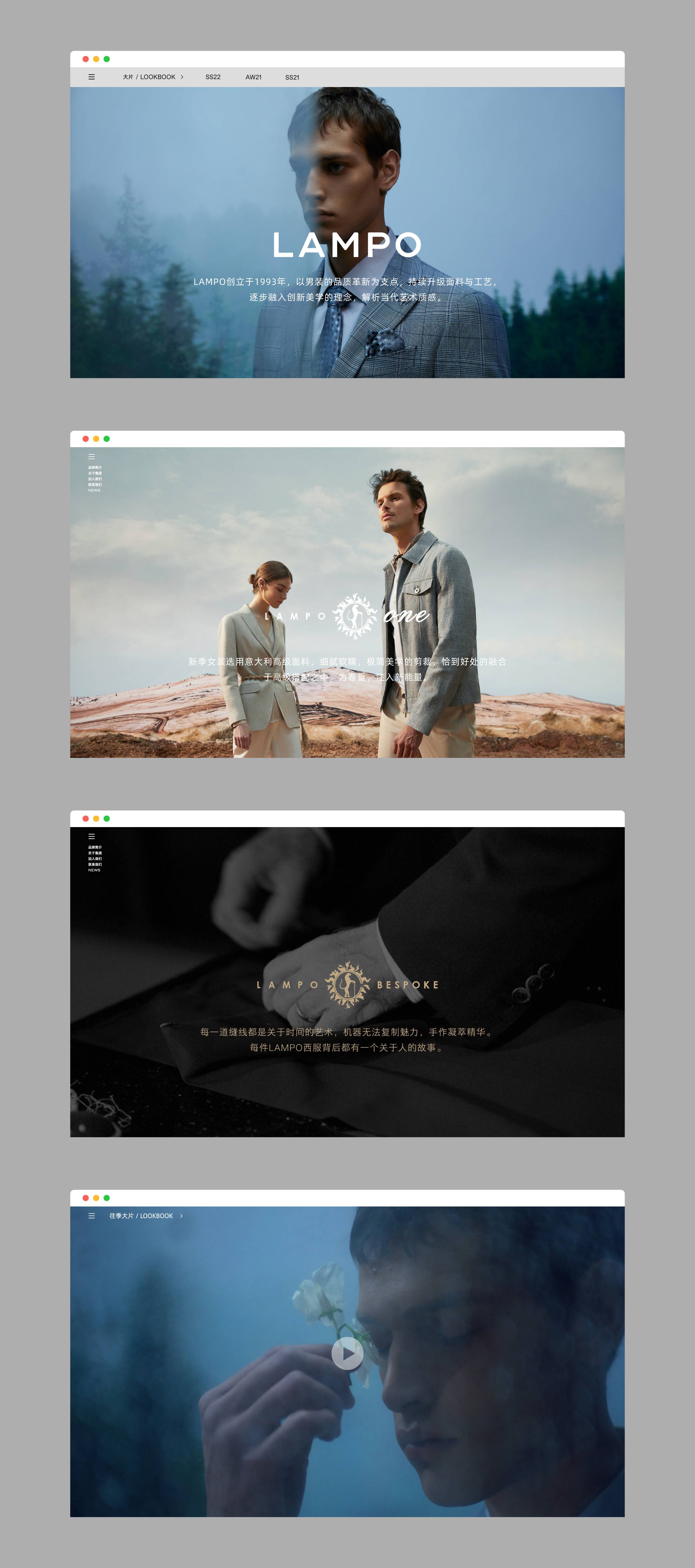 LAMPO的存在不仅仅是一种风格、一件服装,还是男性自信优雅的气质象征,这种气质是一种由内而外的来自生命的力量。没有人的生命是重复的,每个人都应该与众不同。
