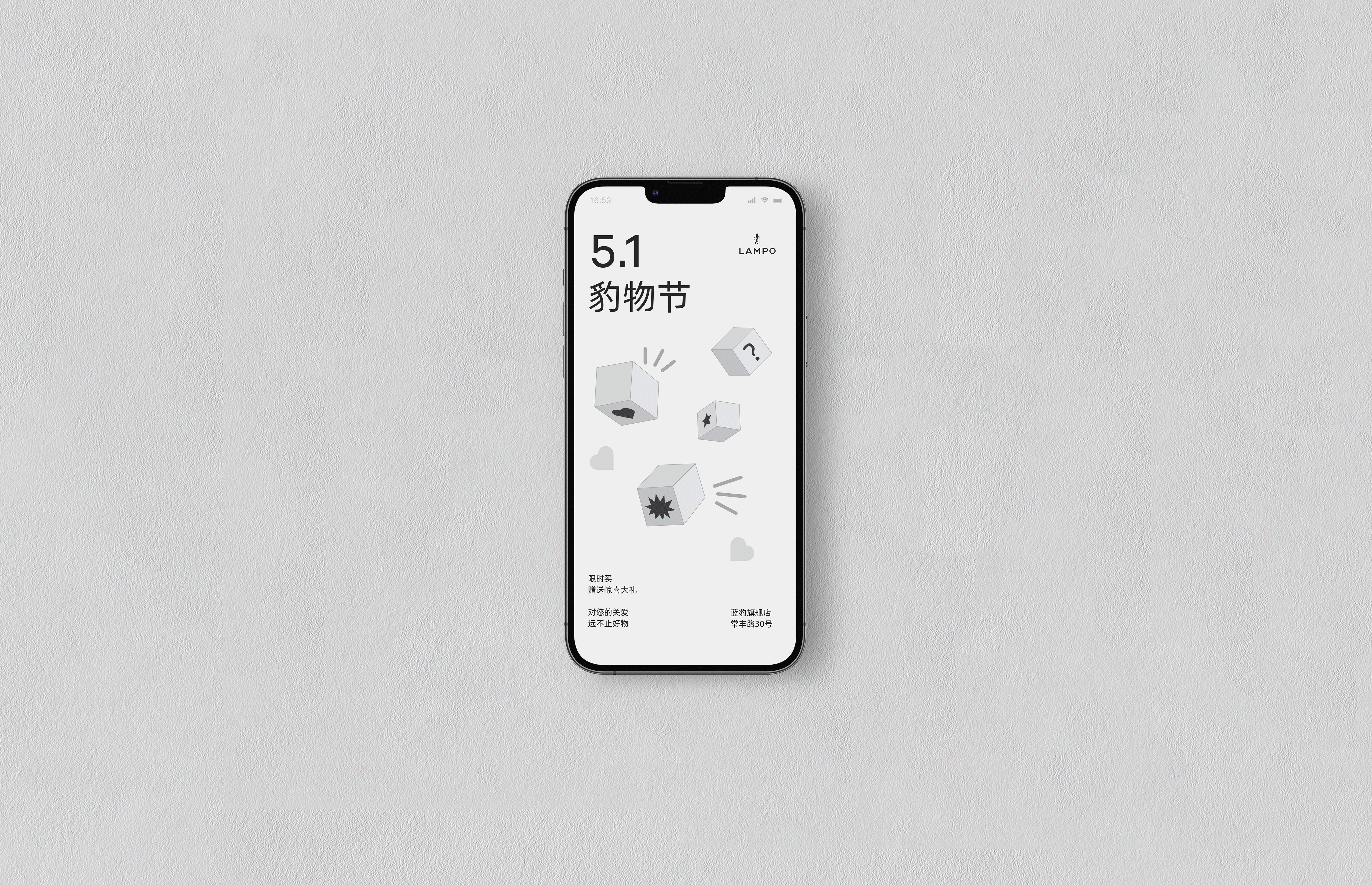 在左上角增加斜切45°角,取自衣领的角度,用以致敬工艺大师D.Cassatella。45°角缩小后,视觉感最接近圆角的特征,彰显蓝豹的高品质、自由、优雅,表达出蓝豹不断对服装品质的打磨与追求。