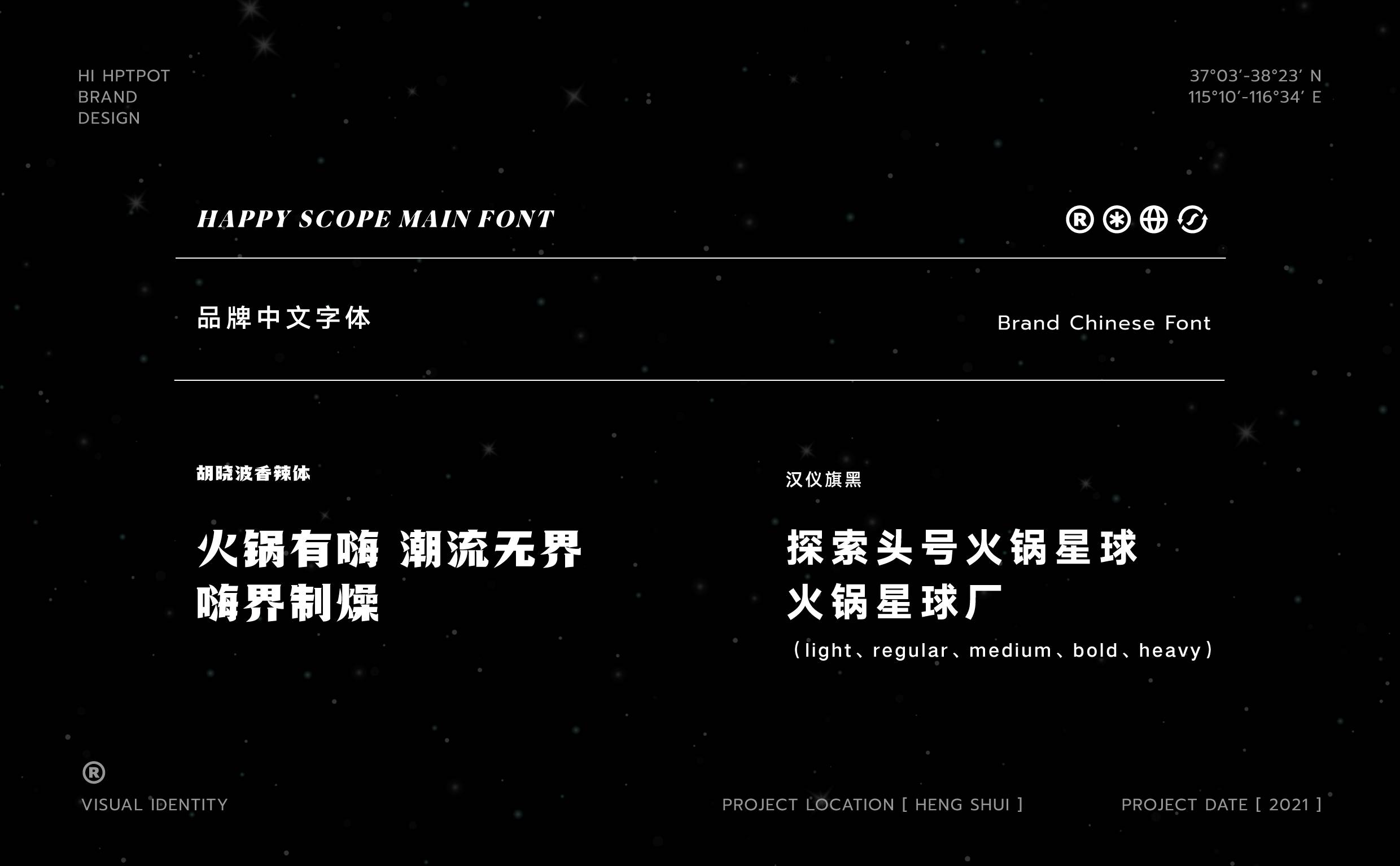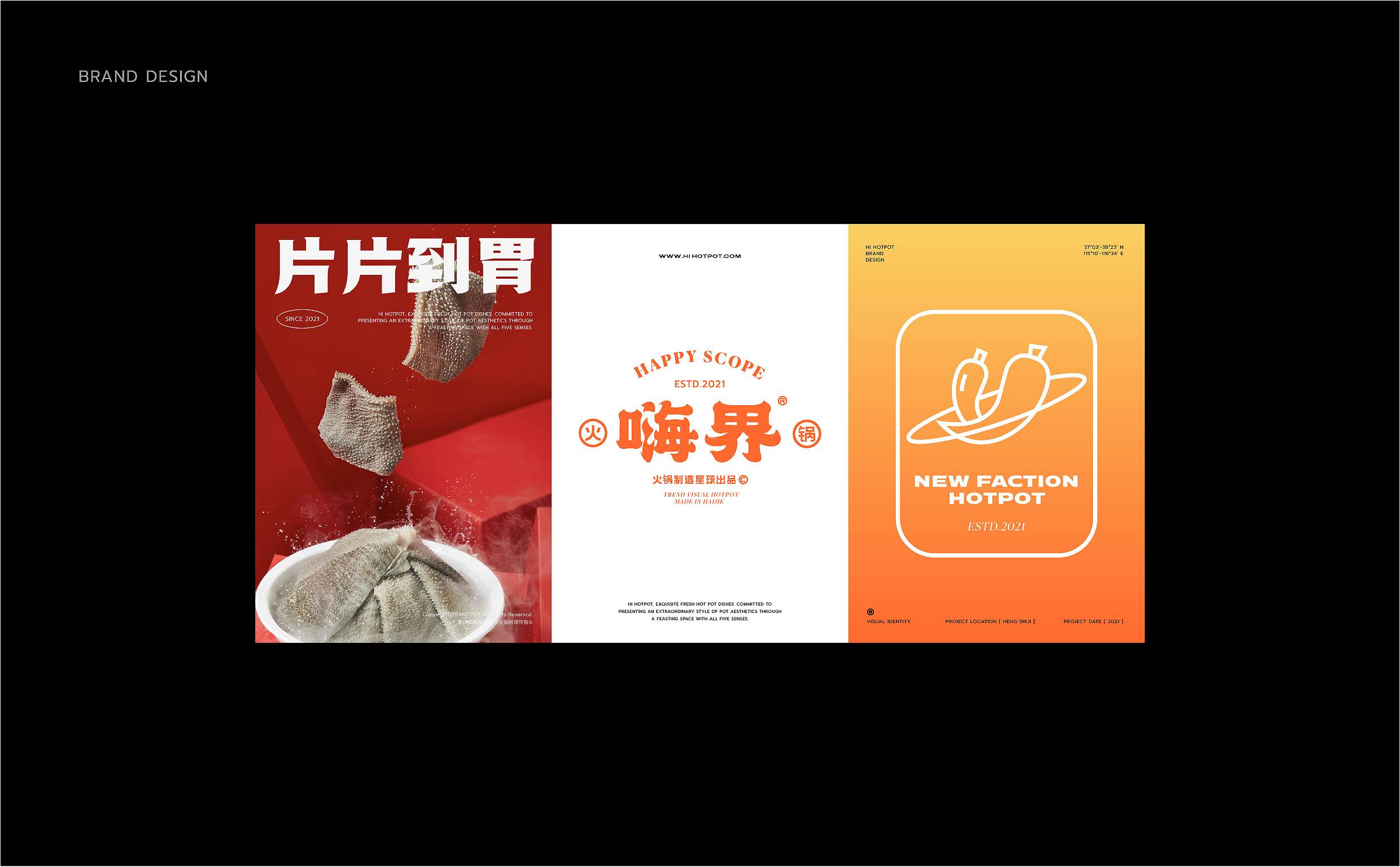 字体设计上,我们保持着品牌“传承而立新的”态度,在基本字形上加入变化,刚柔并济,以美学的曲线作为收尾,那是炽热的火焰、是火锅中的烟火气,从视觉上即能感受到品牌张力以及冲击力,彰显品牌年轻、潮流的特征。