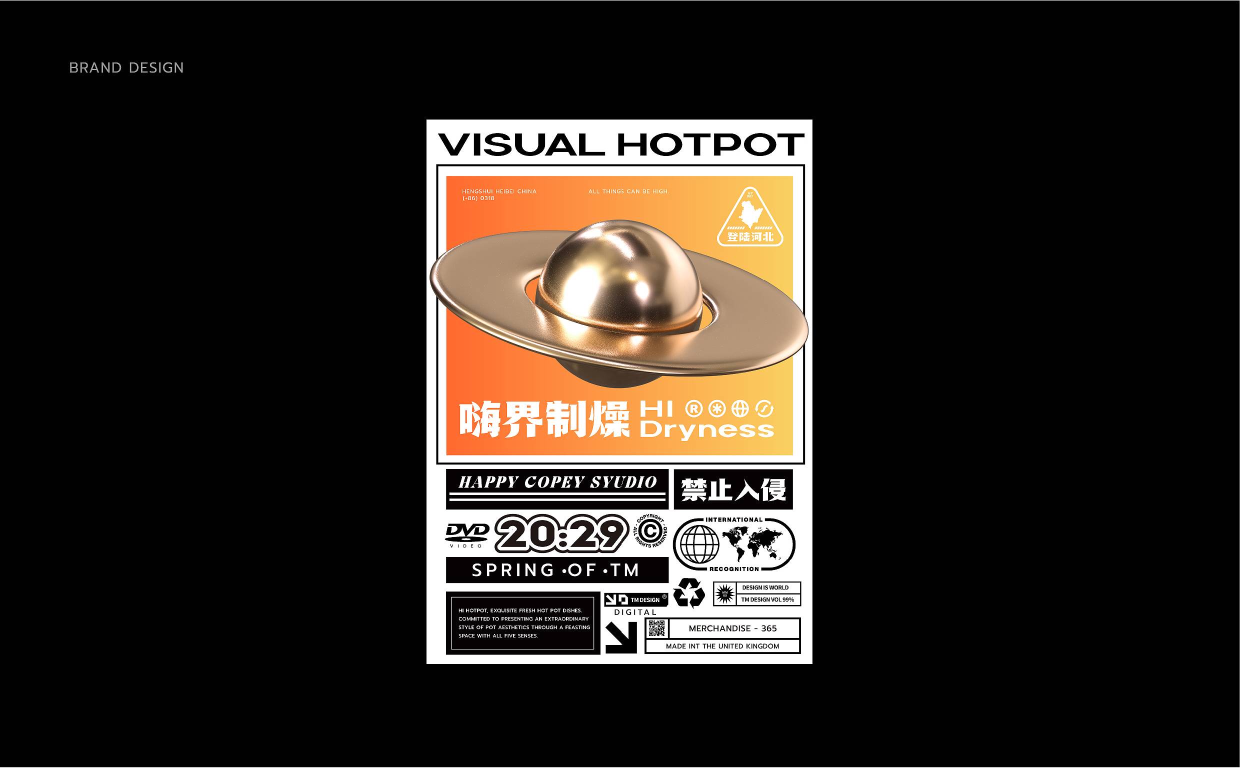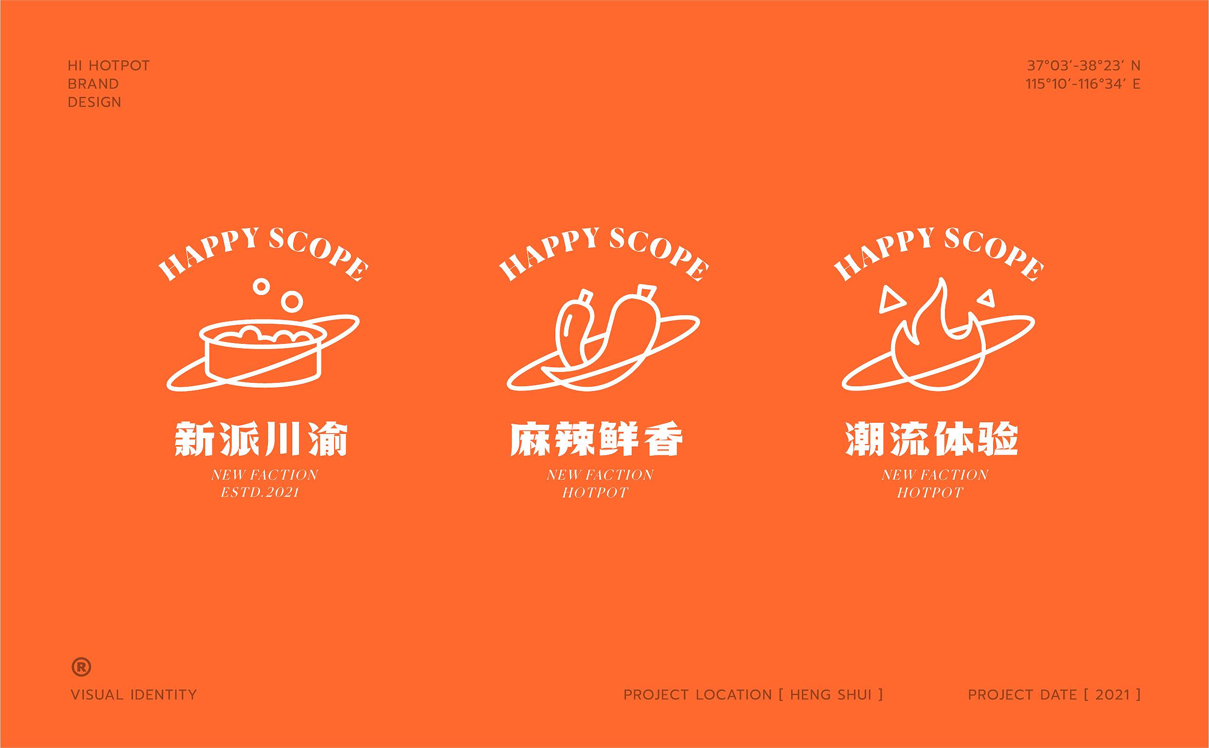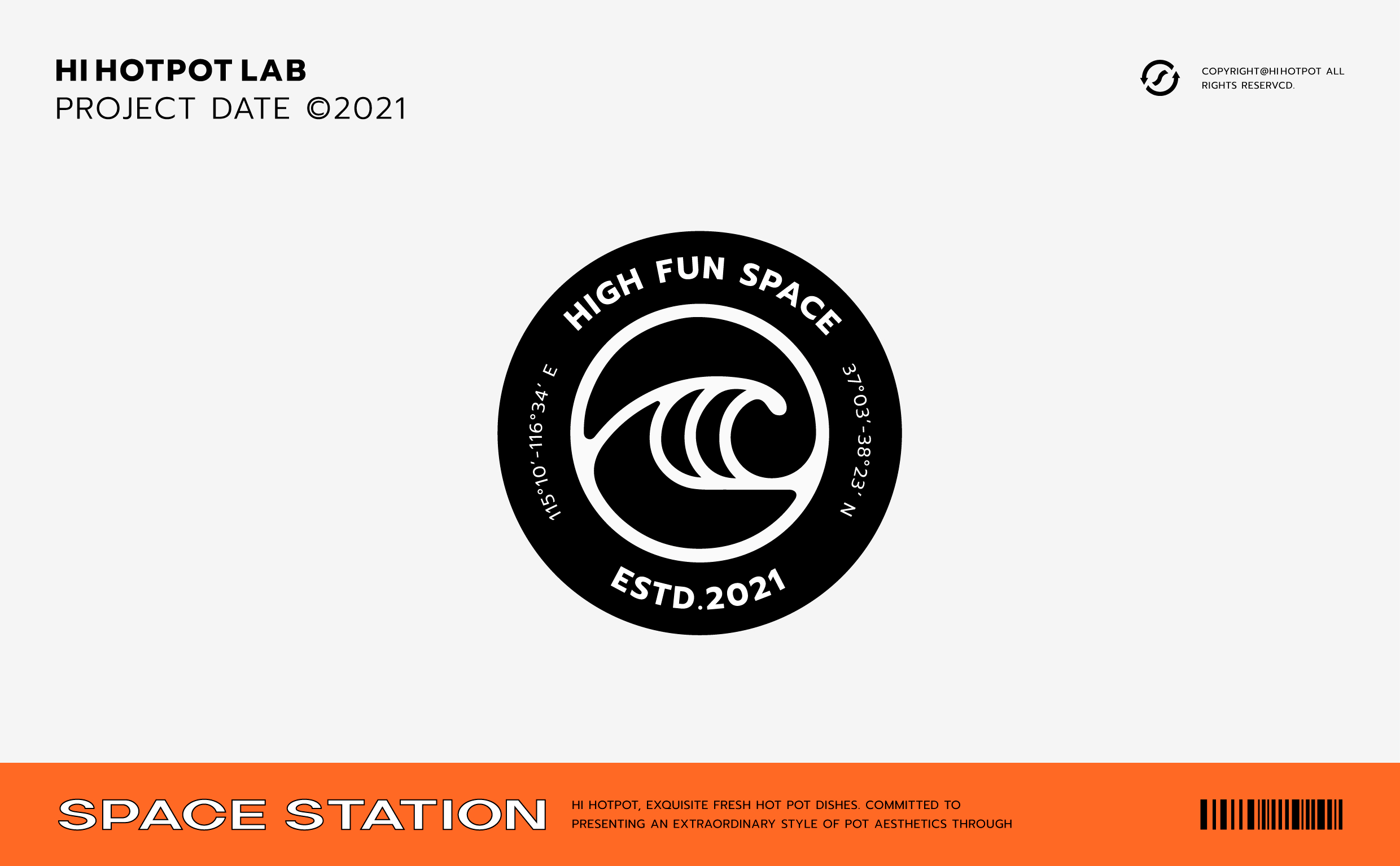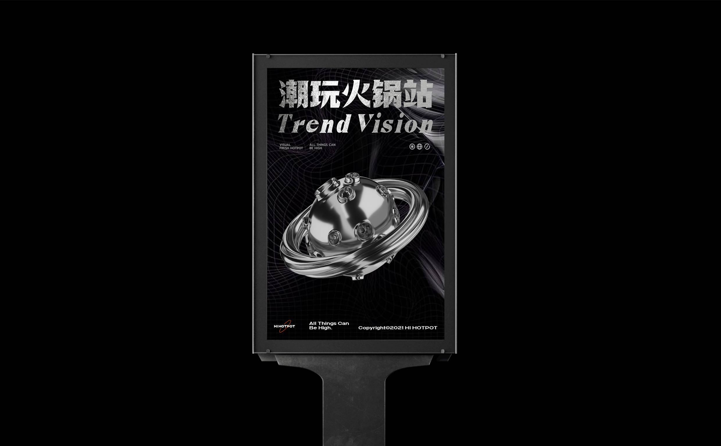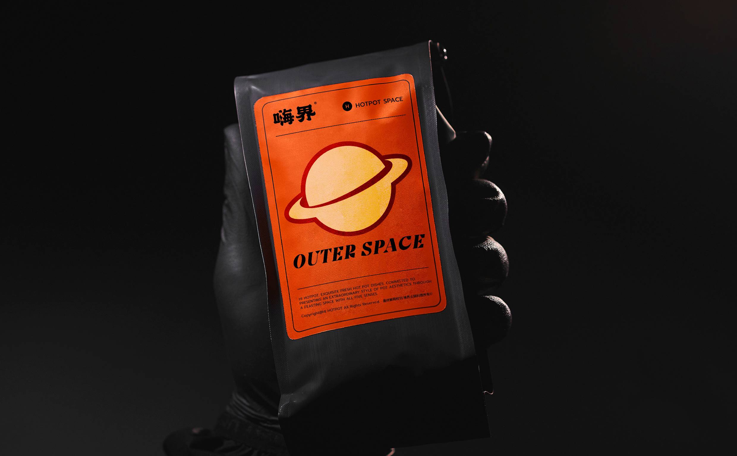 品牌以经典火锅造型为灵感,融入星球和潮流无界的概念,将其演化成品牌的超级符号:一个独特的火锅星球,未来而有趣。同时利用对称、正负形的设计,带来了视觉上的动态感,代表着潮流与传统餐饮的碰撞。简单独特的造型更具识别度,也更容易被消费者所记忆。
