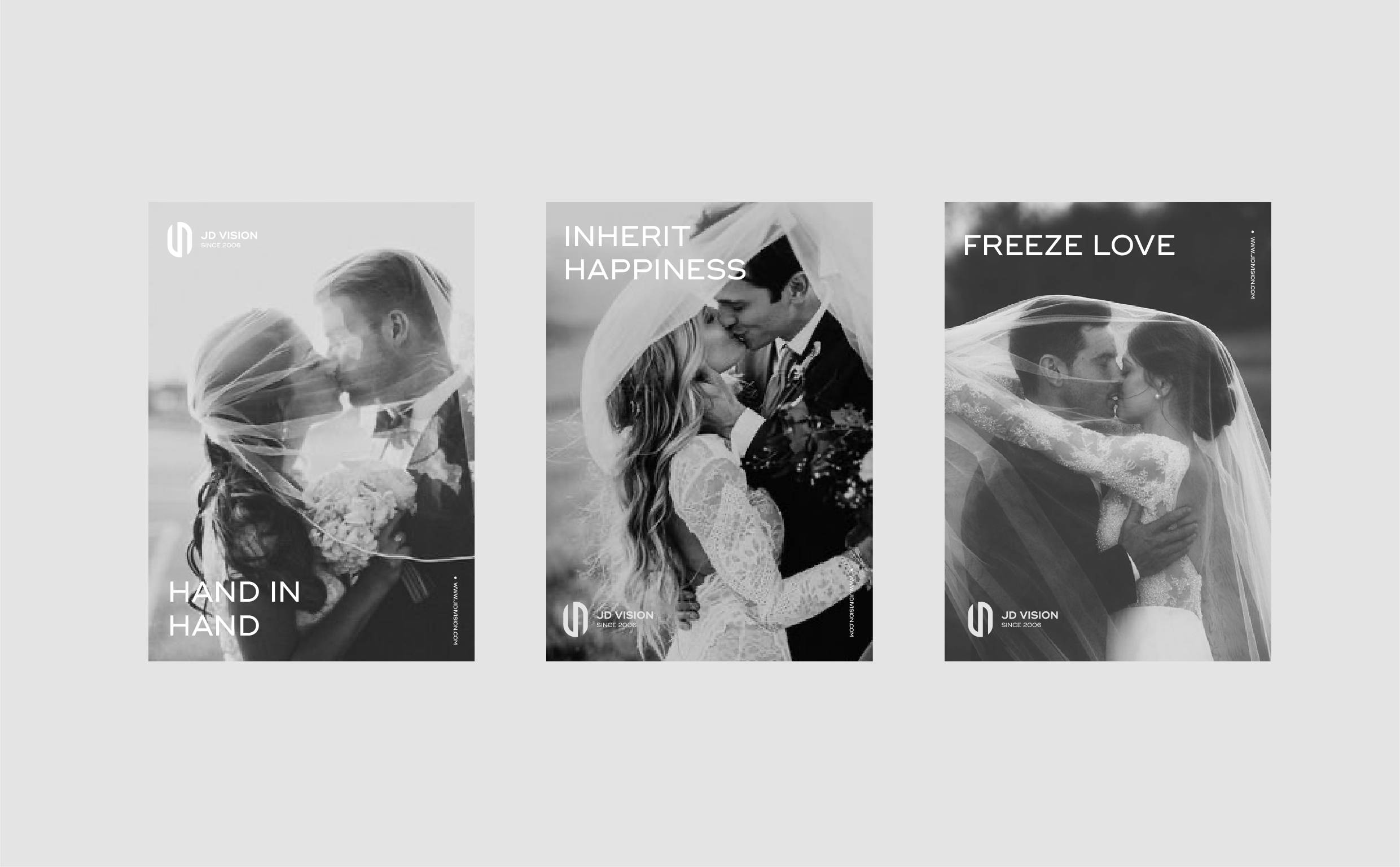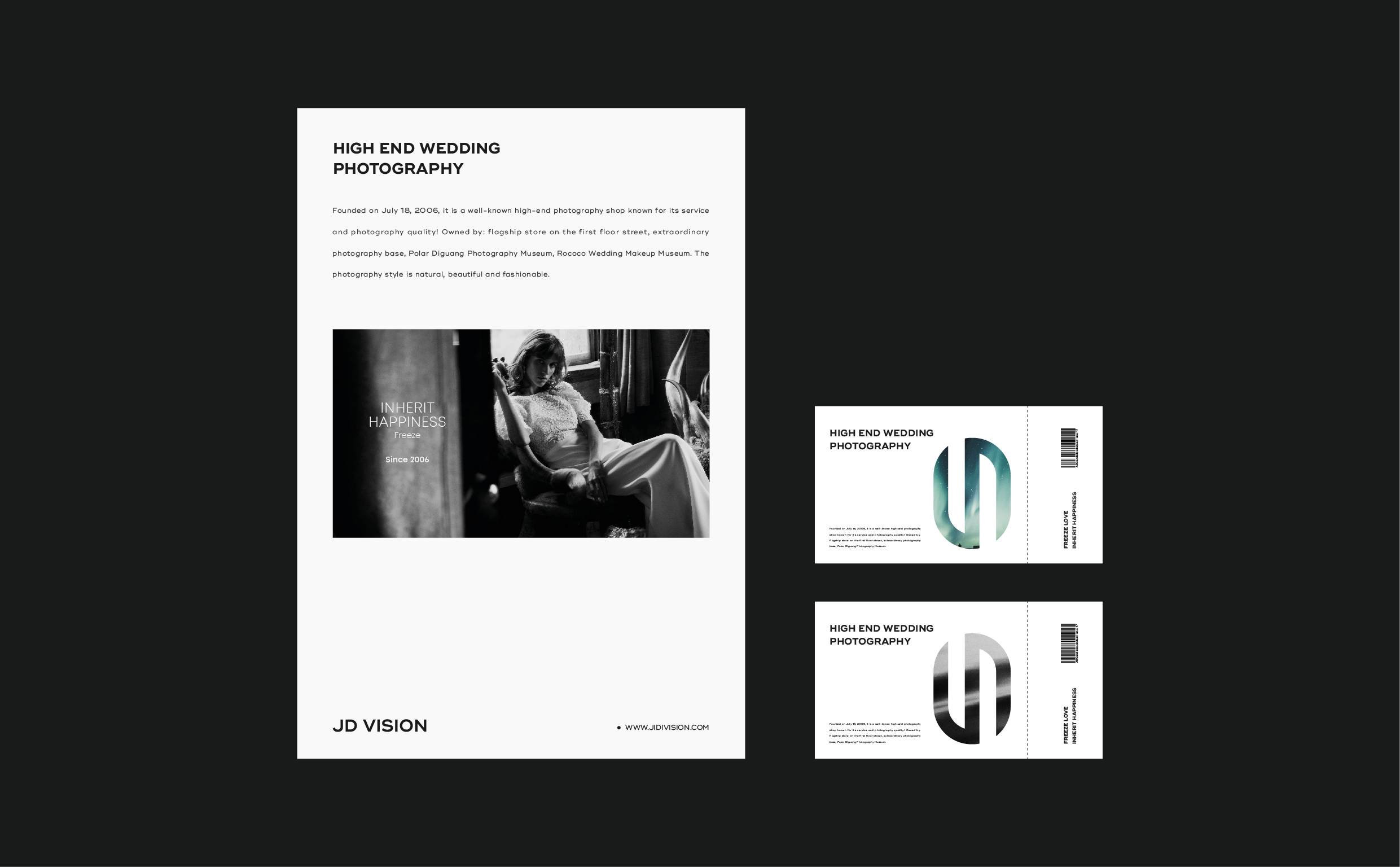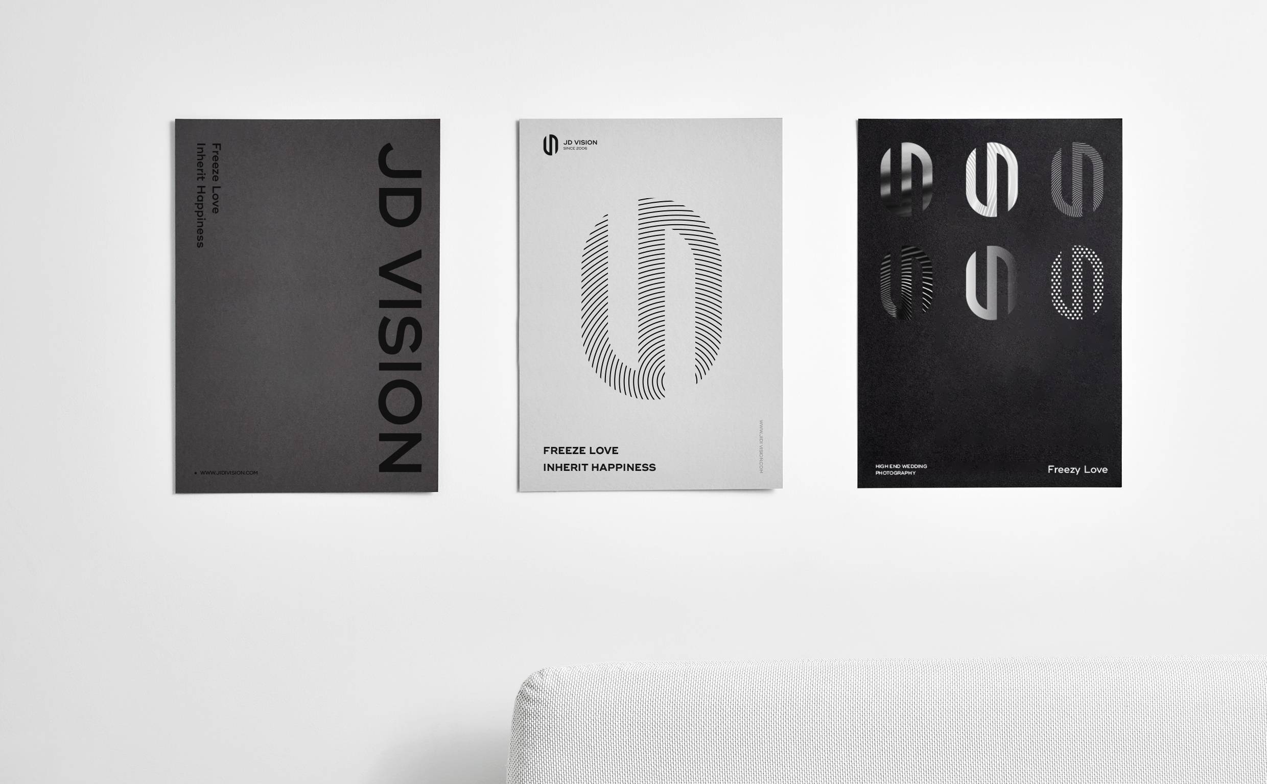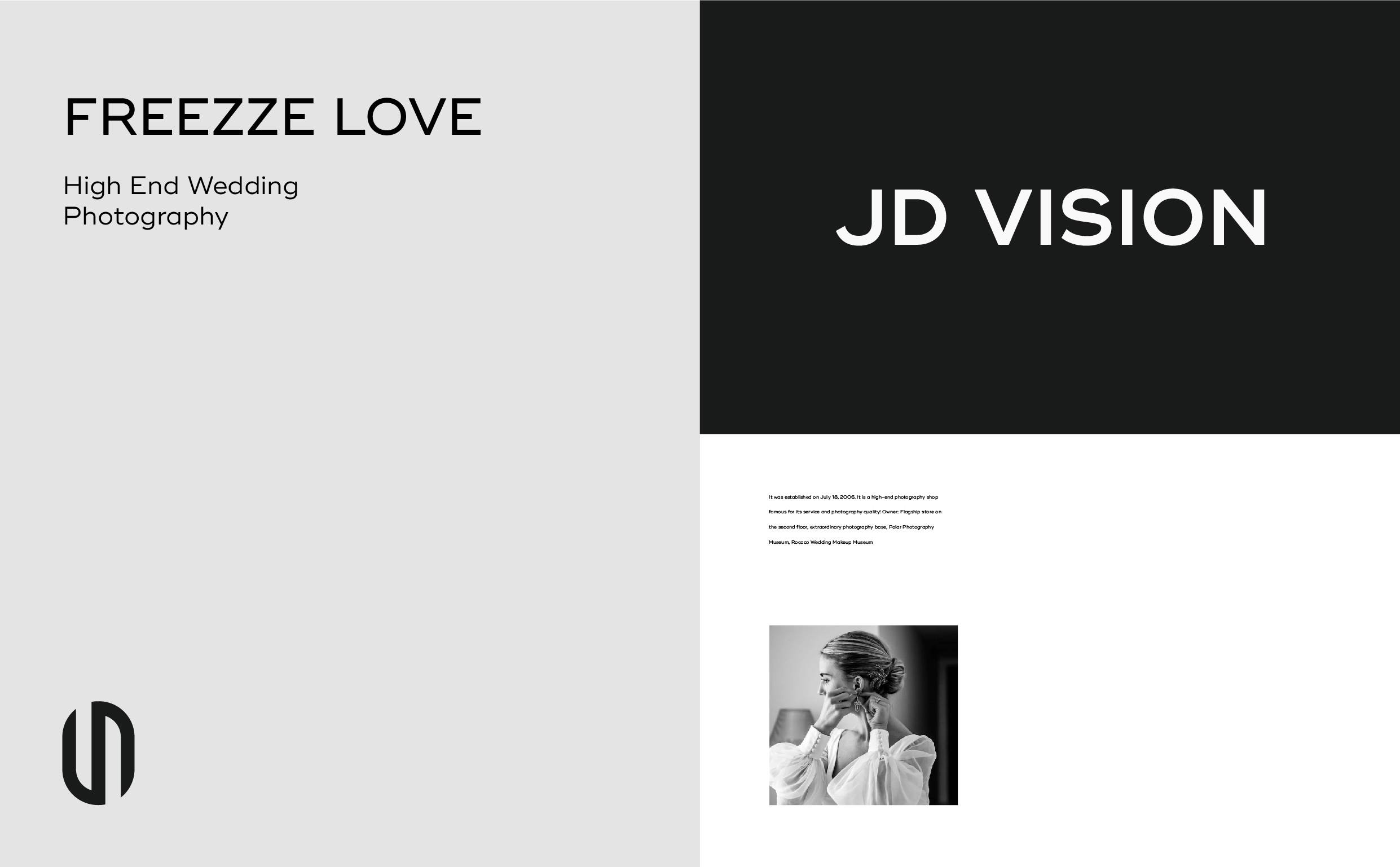 极地摄影全新形象图形取自品牌名称首字母“JD”,秉承极致严谨的态度将其塑造为极简、前沿、流线、不张扬、自有态度的造型。“J”与“D”的巧妙相连,寓意着喜结连理,利用字形以左右两端相反缺口的形式设计,如同一块爱的磁铁,将二人的心紧紧相连。整体图形几分圆滑且略带锋芒,代表着爱情的模样,代表着专业的摄影水平。