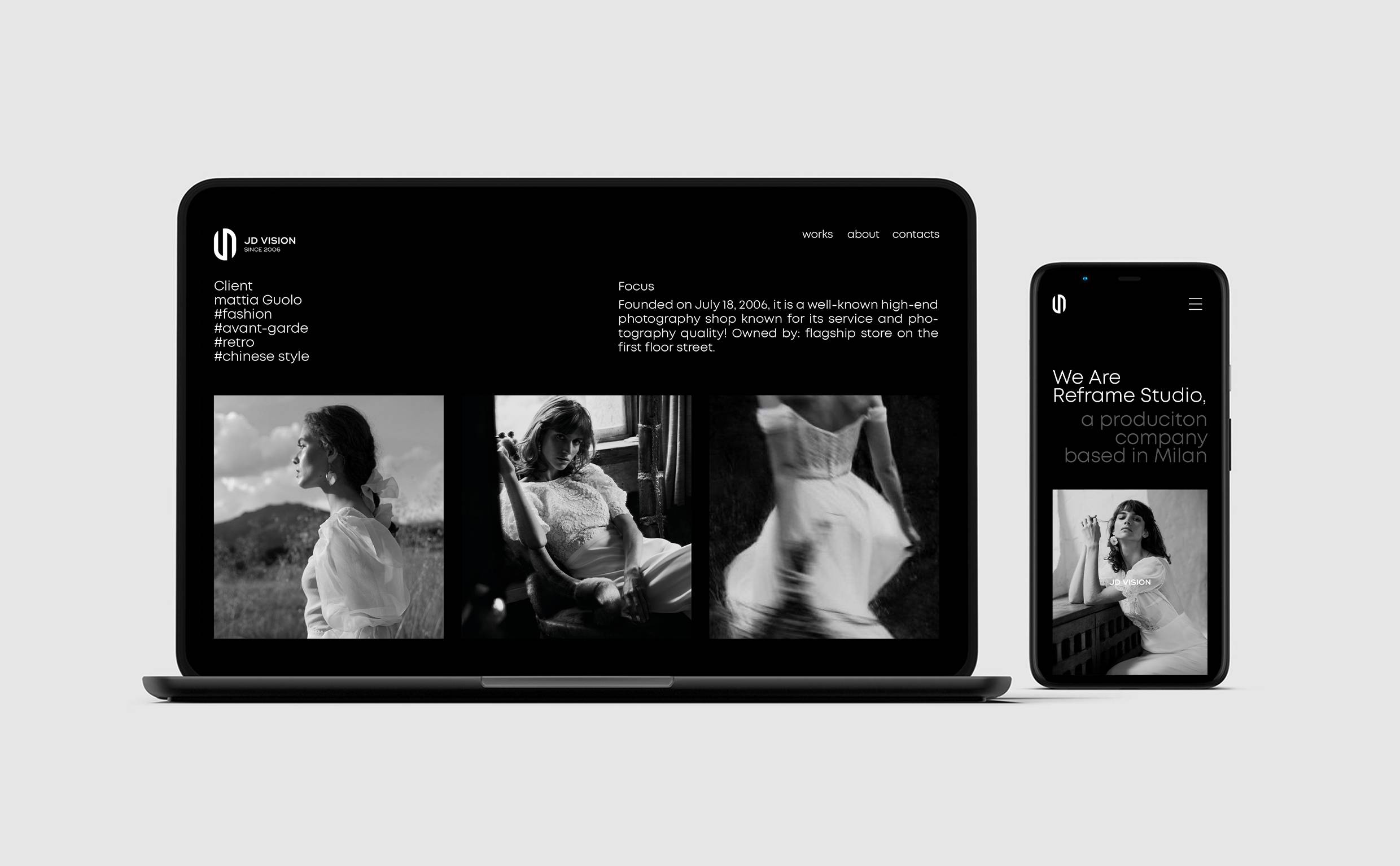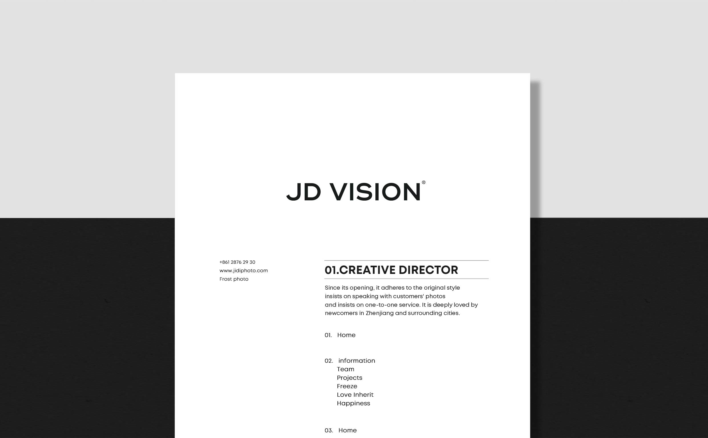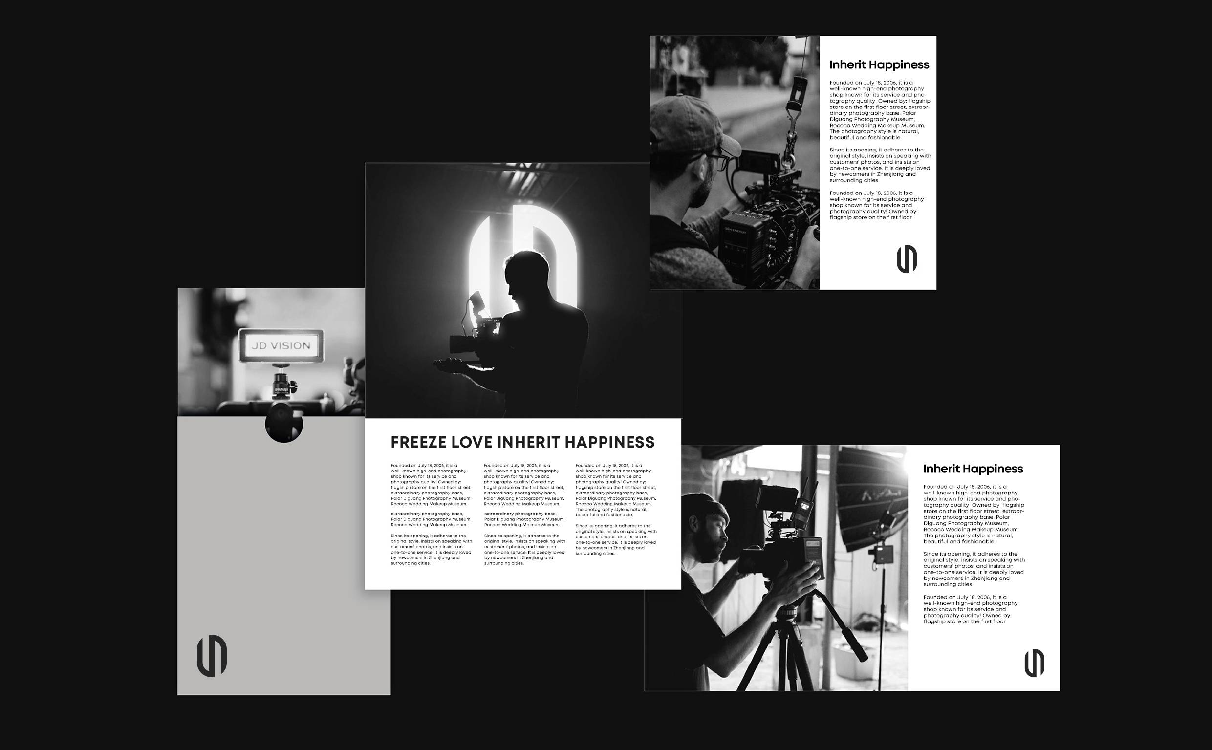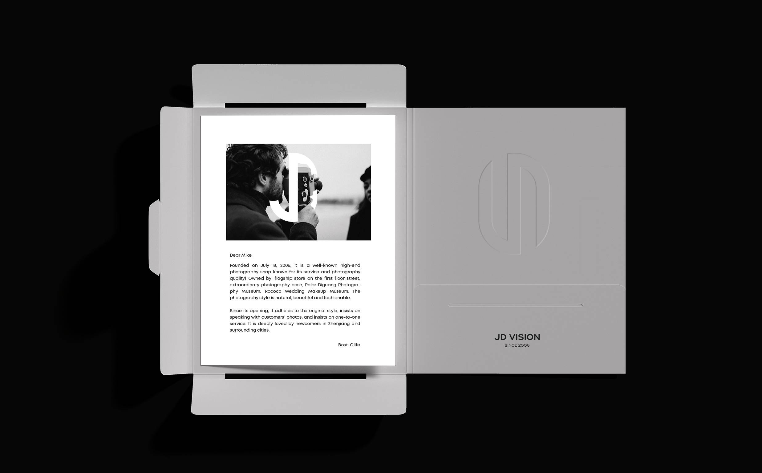 极地摄影全新形象图形取自品牌名称首字母“JD”,秉承极致严谨的态度将其塑造为极简、前沿、流线、不张扬、自有态度的造型。“J”与“D”的巧妙相连,寓意着喜结连理,利用字形以左右两端相反缺口的形式设计,如同一块爱的磁铁,将二人的心紧紧相连。整体图形几分圆滑且略带锋芒,代表着爱情的模样,代表着专业的摄影水平。