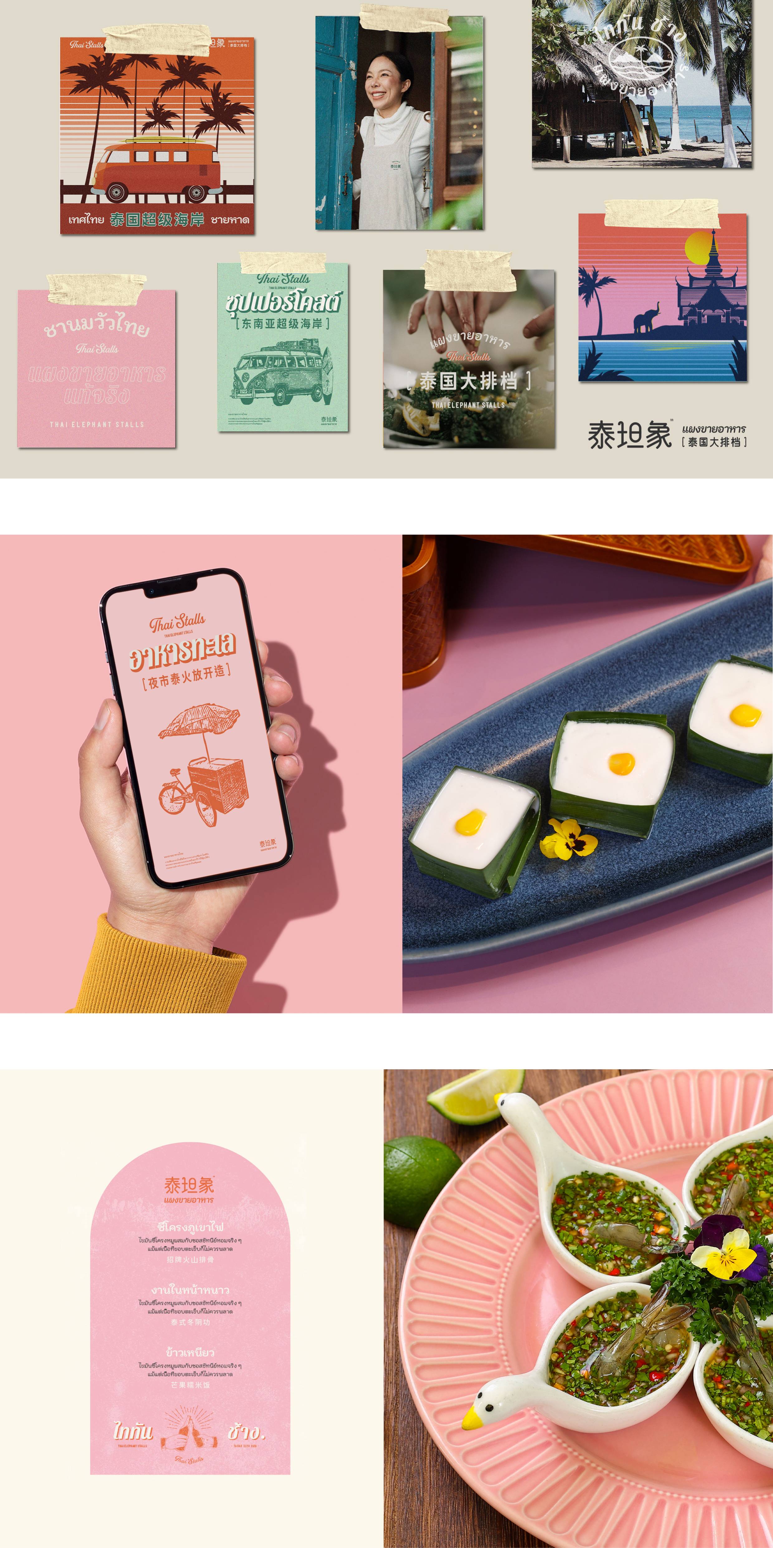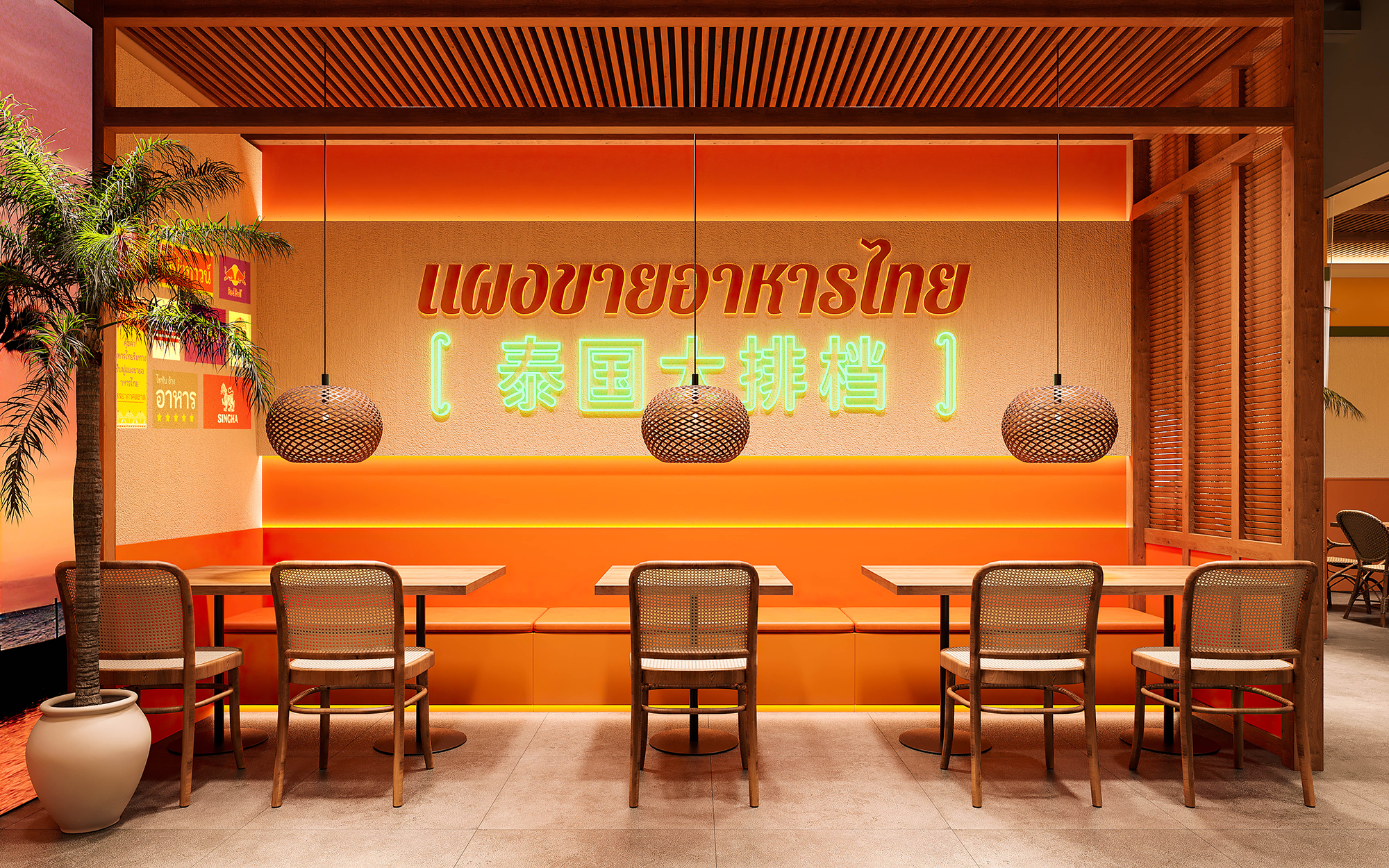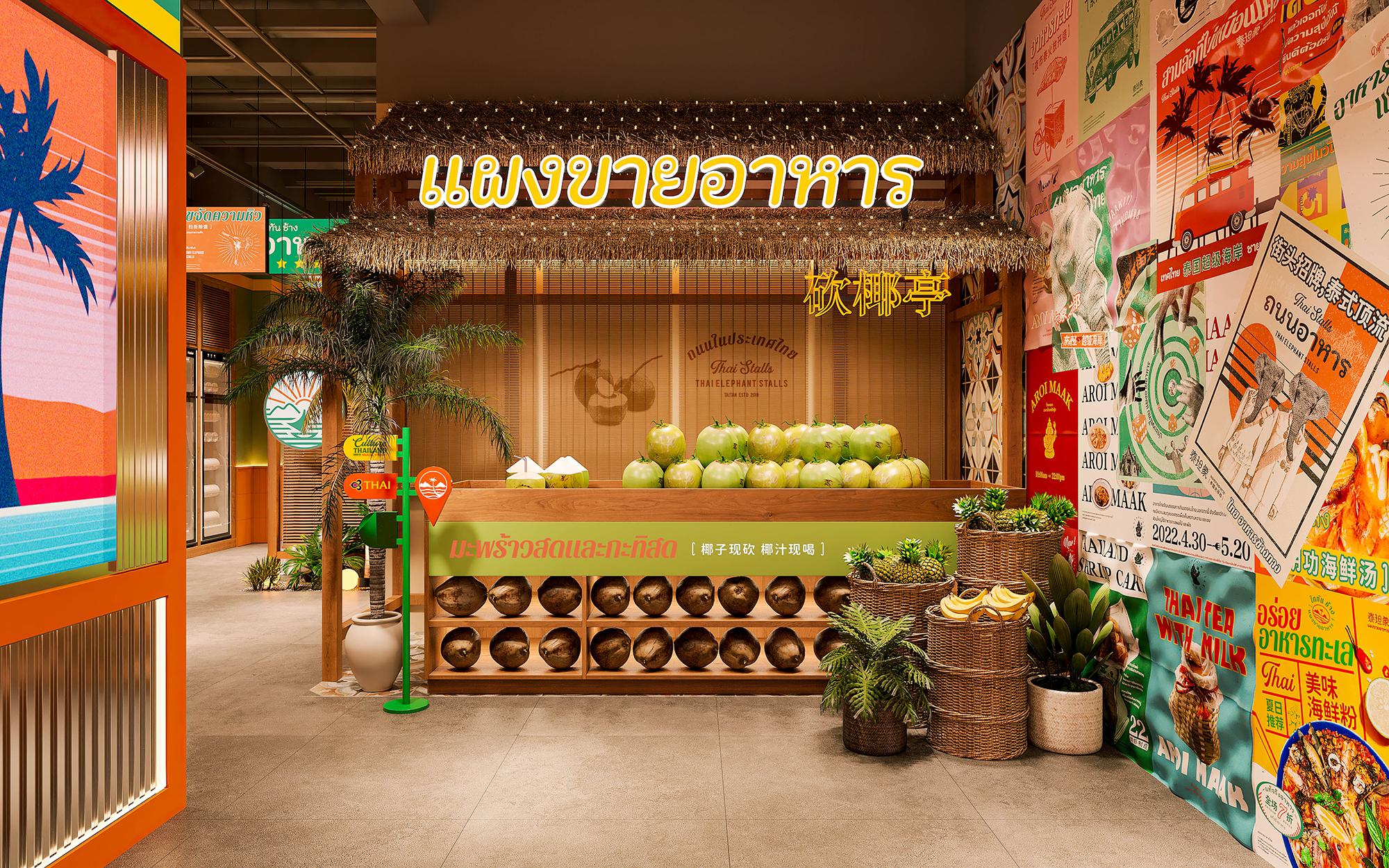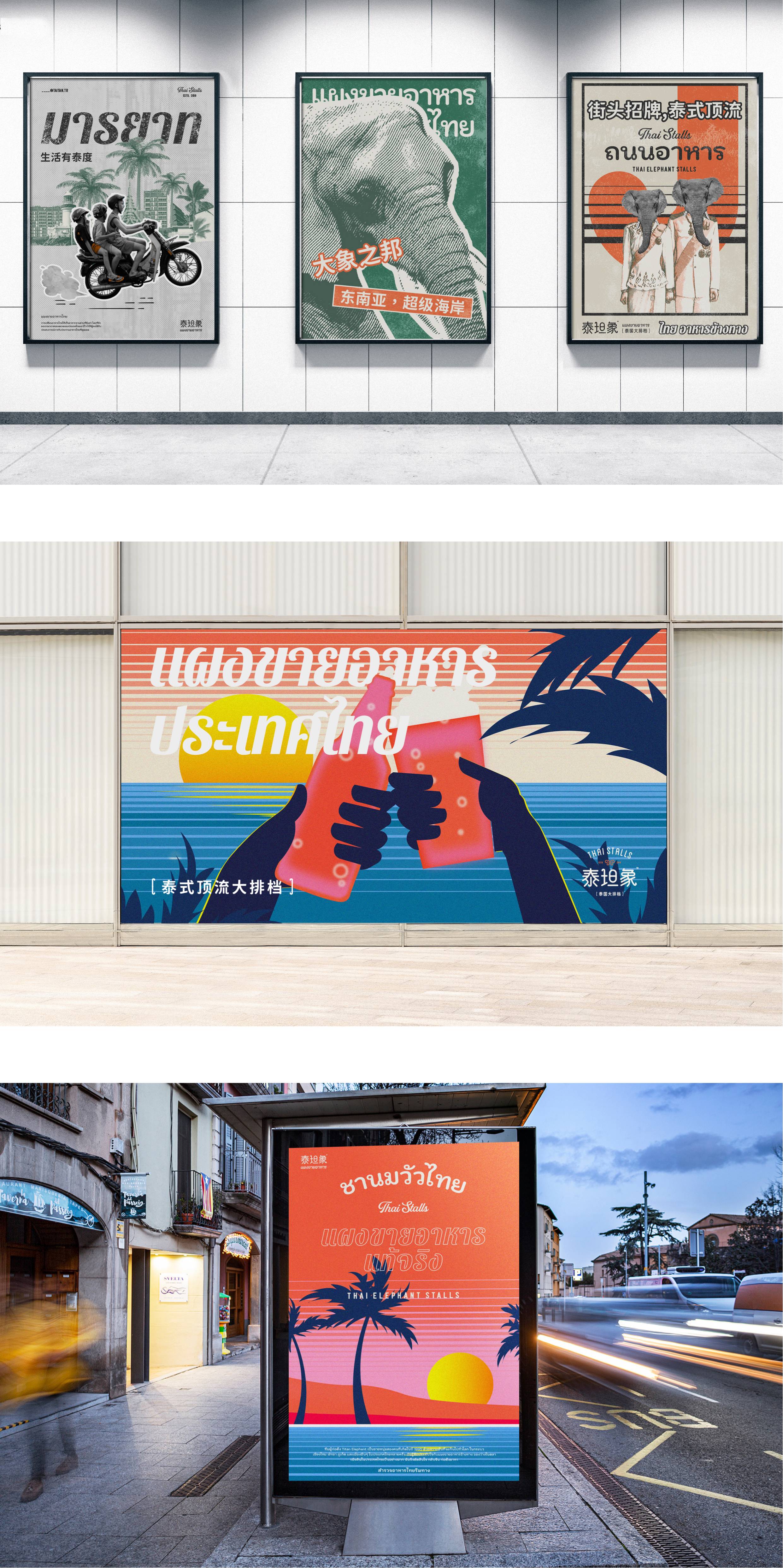 设计霓虹灯牌、泰⽂海报张贴等装饰,打造浓浓的东南亚风情,市井烟火气与品质感皆具,带你秒回泰国街头,探索老街故事。同时结合趣味文案,“泰”拉风的大排档、“泰”有趣、“泰”正经、生活有“泰”度等,塑造泰式新浪潮。