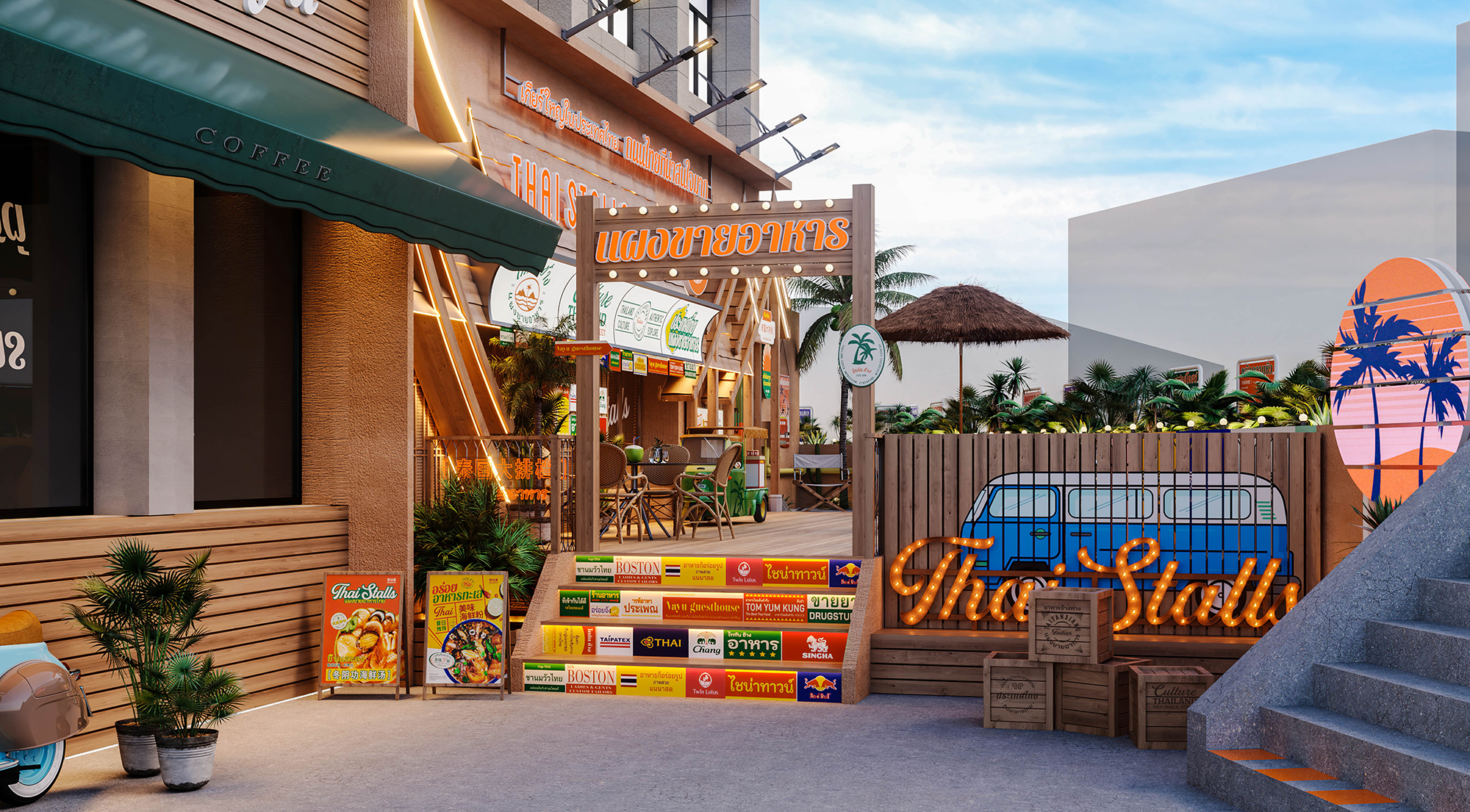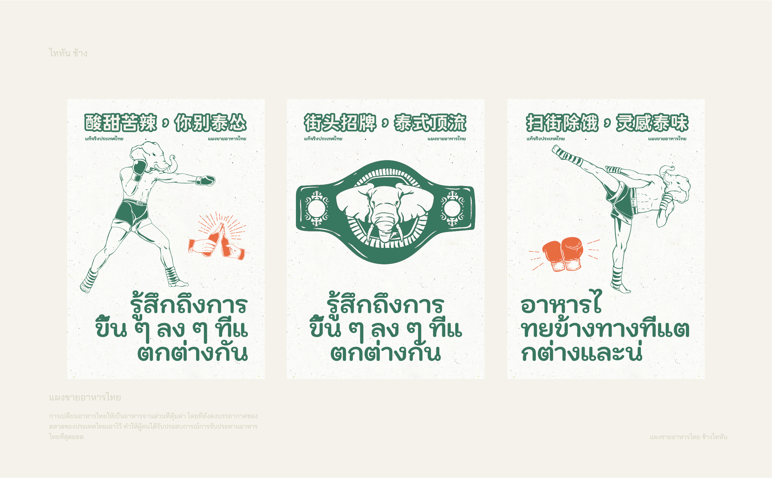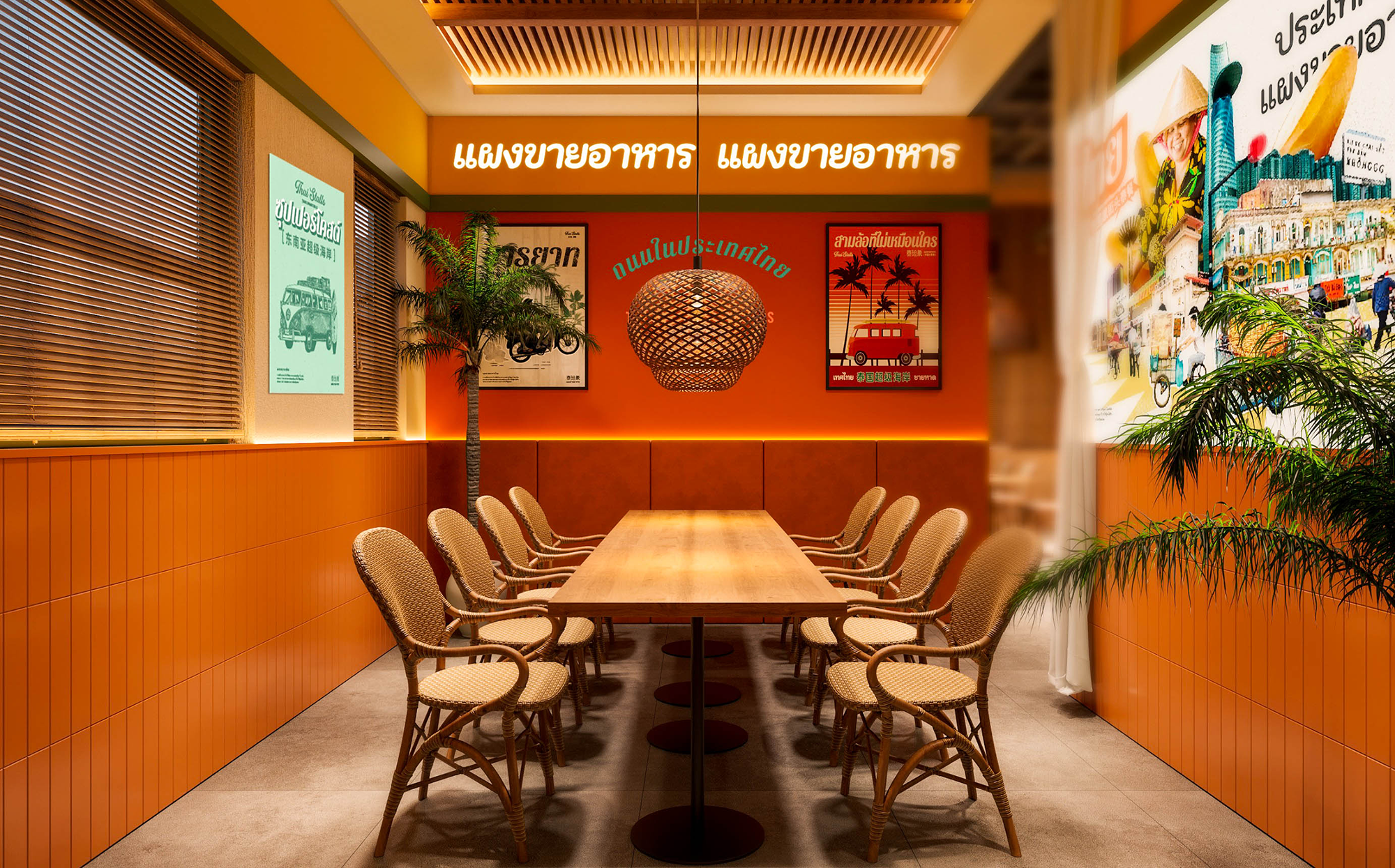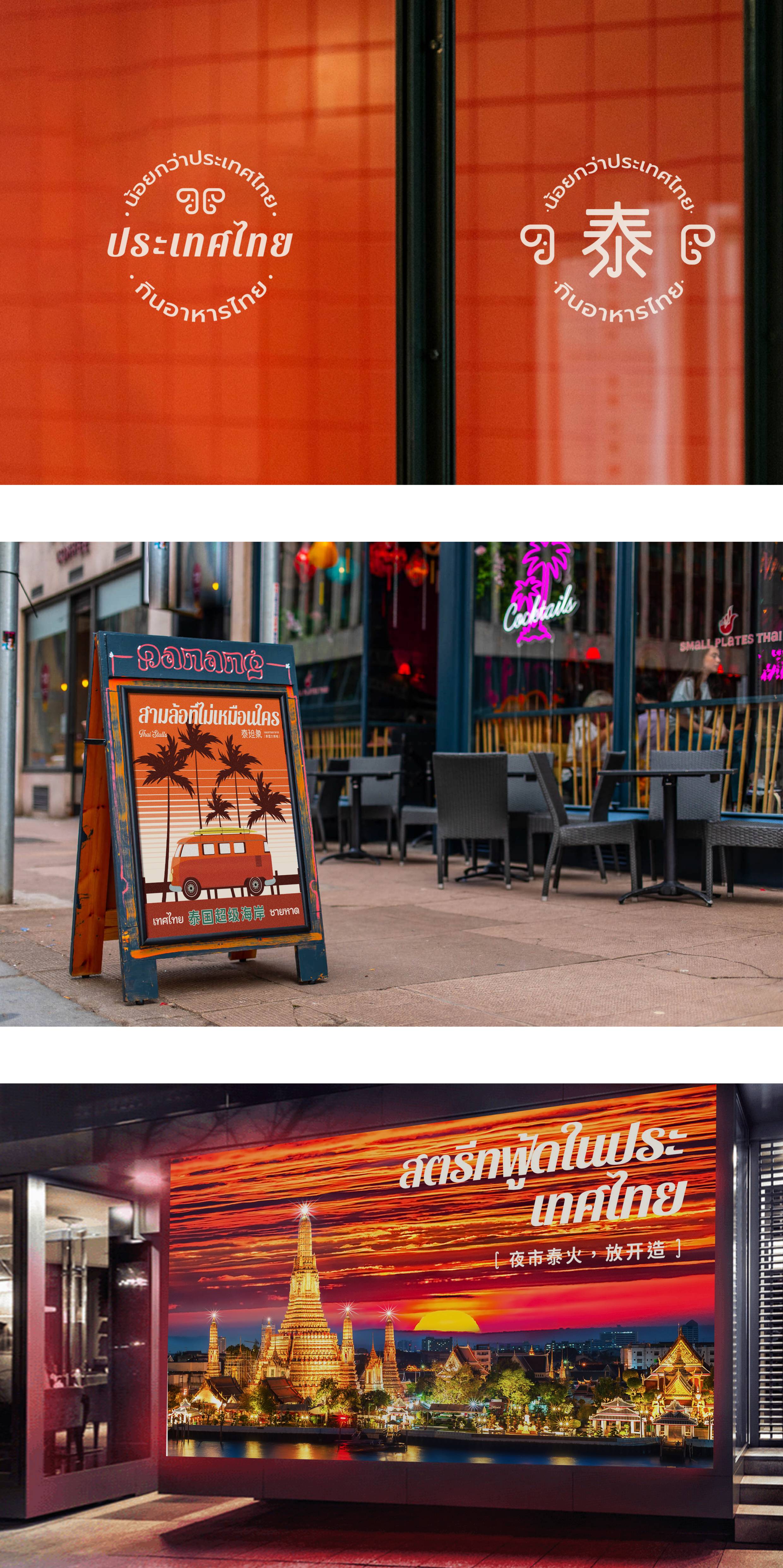 设计霓虹灯牌、泰⽂海报张贴等装饰,打造浓浓的东南亚风情,市井烟火气与品质感皆具,带你秒回泰国街头,探索老街故事。同时结合趣味文案,“泰”拉风的大排档、“泰”有趣、“泰”正经、生活有“泰”度等,塑造泰式新浪潮。