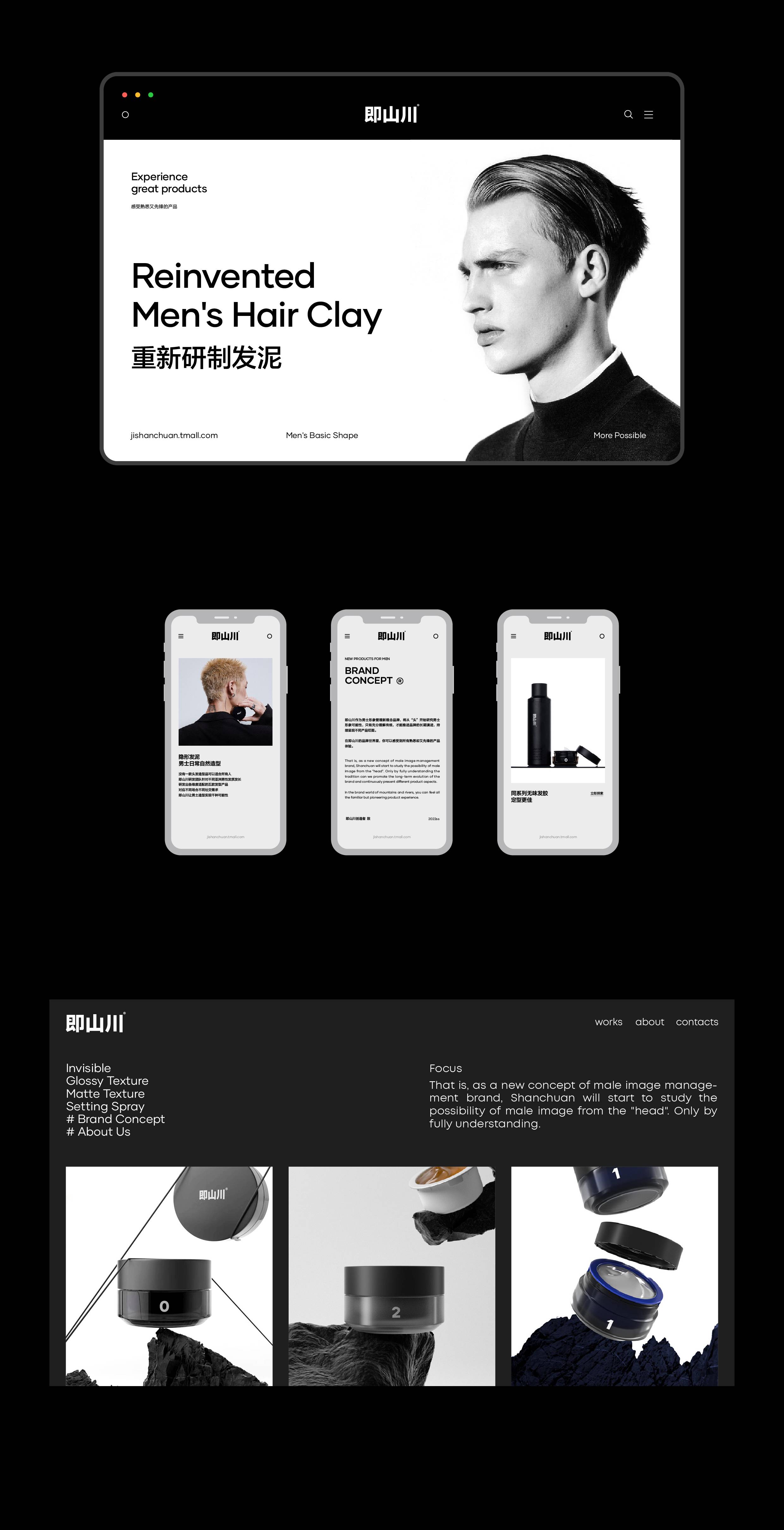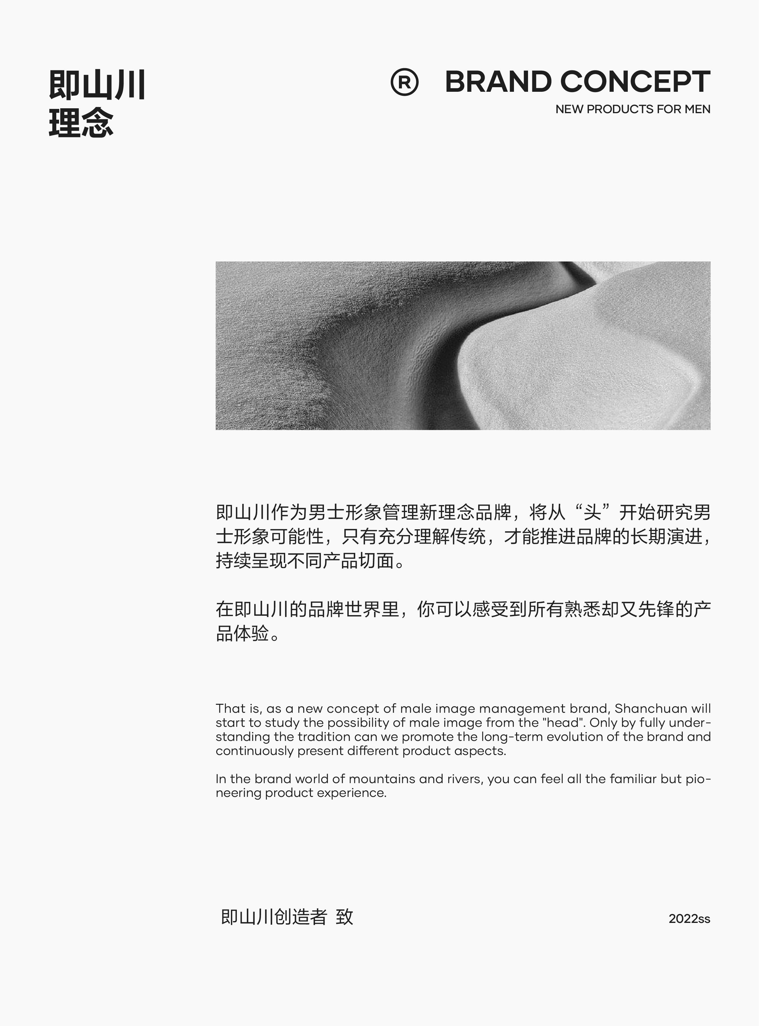 为了强化品牌中文名称,我们提取“山”作为符号,基于耐看、延展、适用 三个维度考量,对“山“简化、重组、聚焦,最终得到了三个方块,并让方形扮演多重身份,分别代表:聚焦·专业、基础·造型、进化·提升。