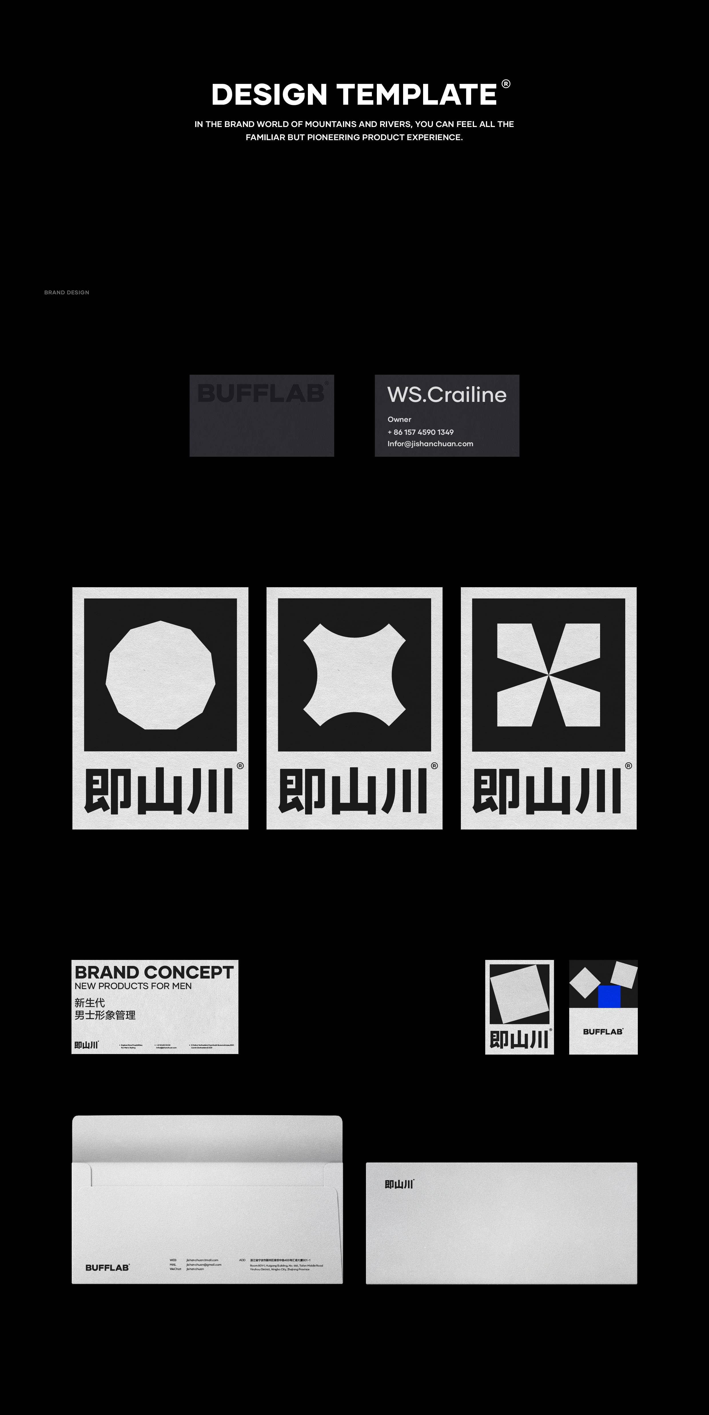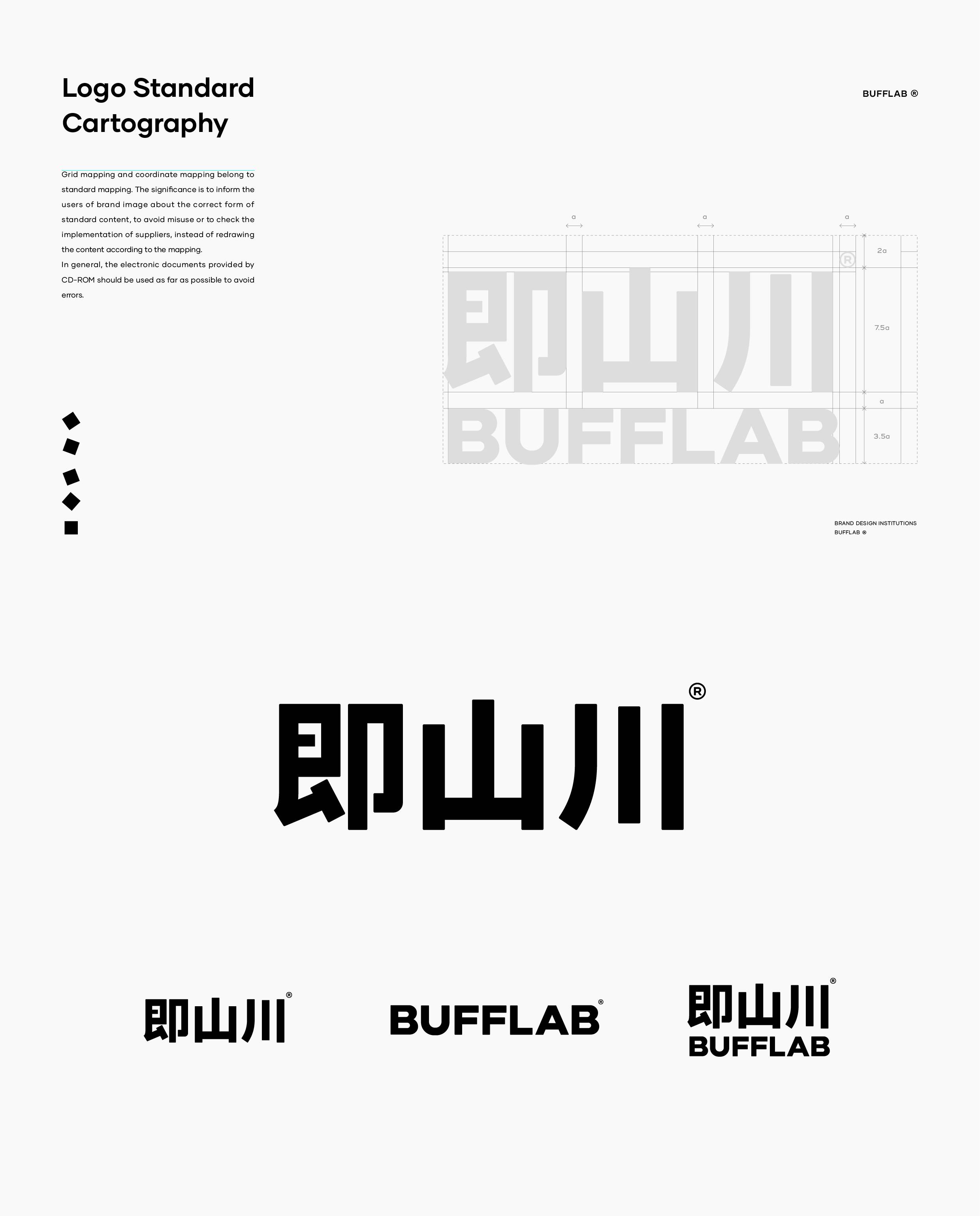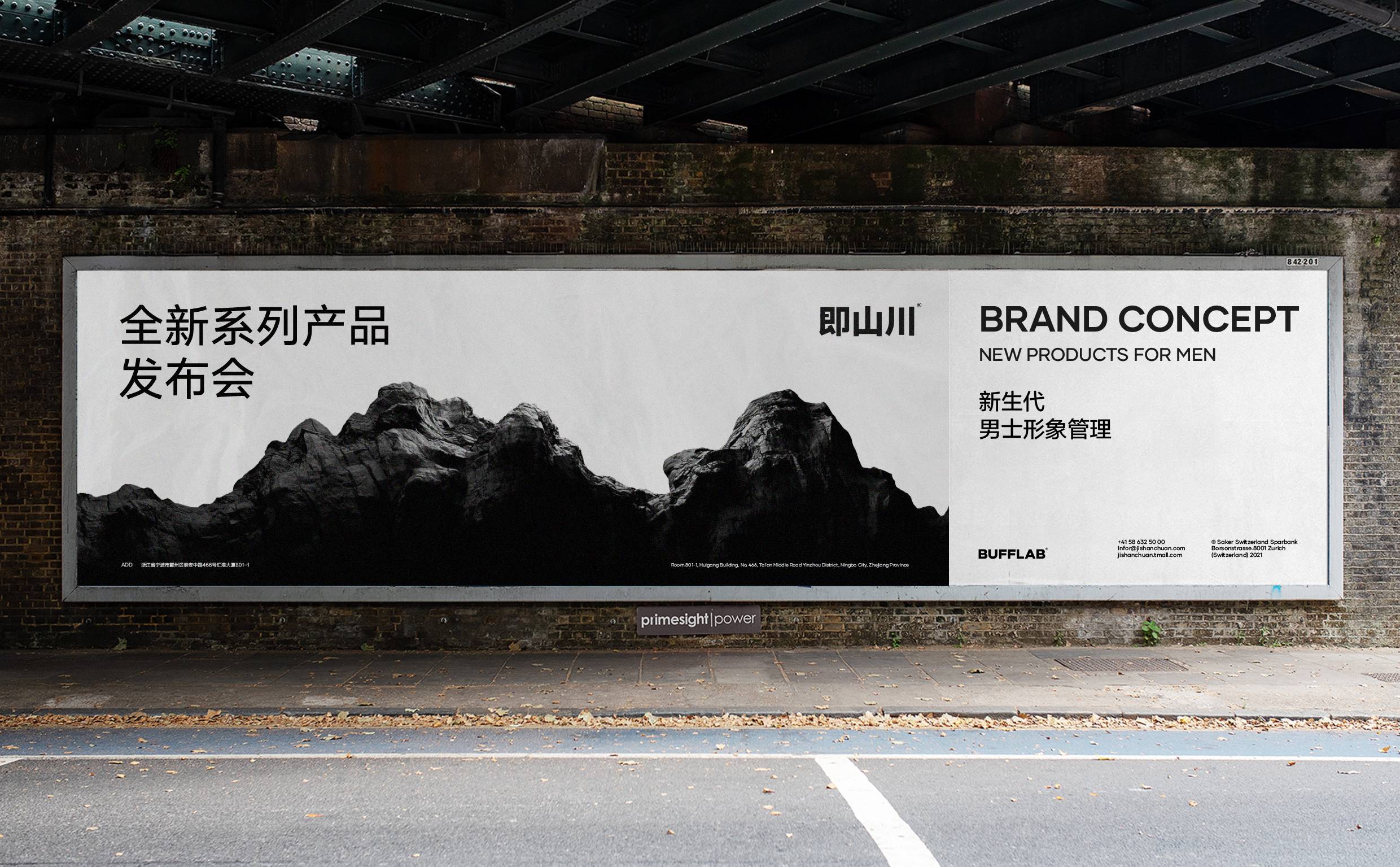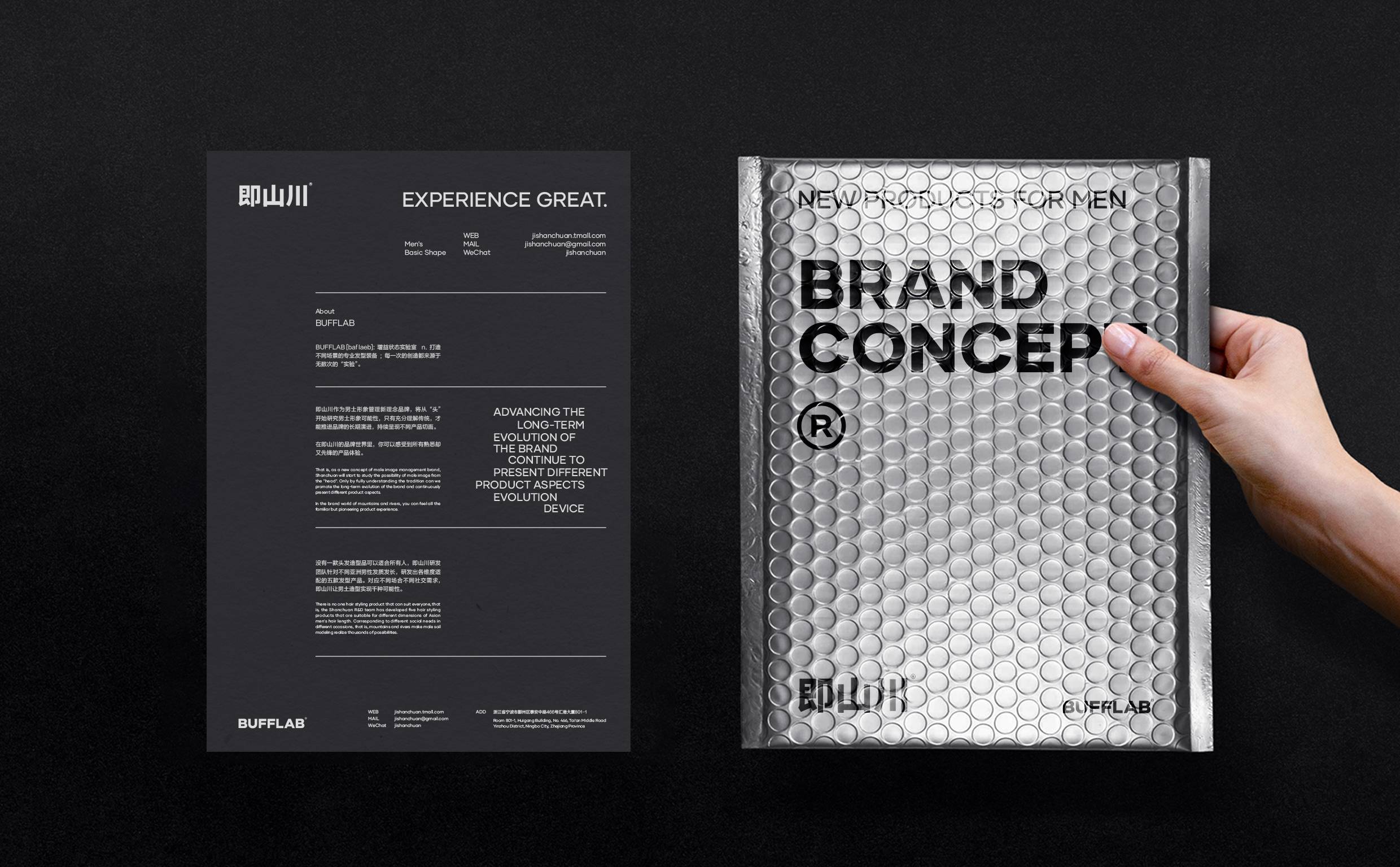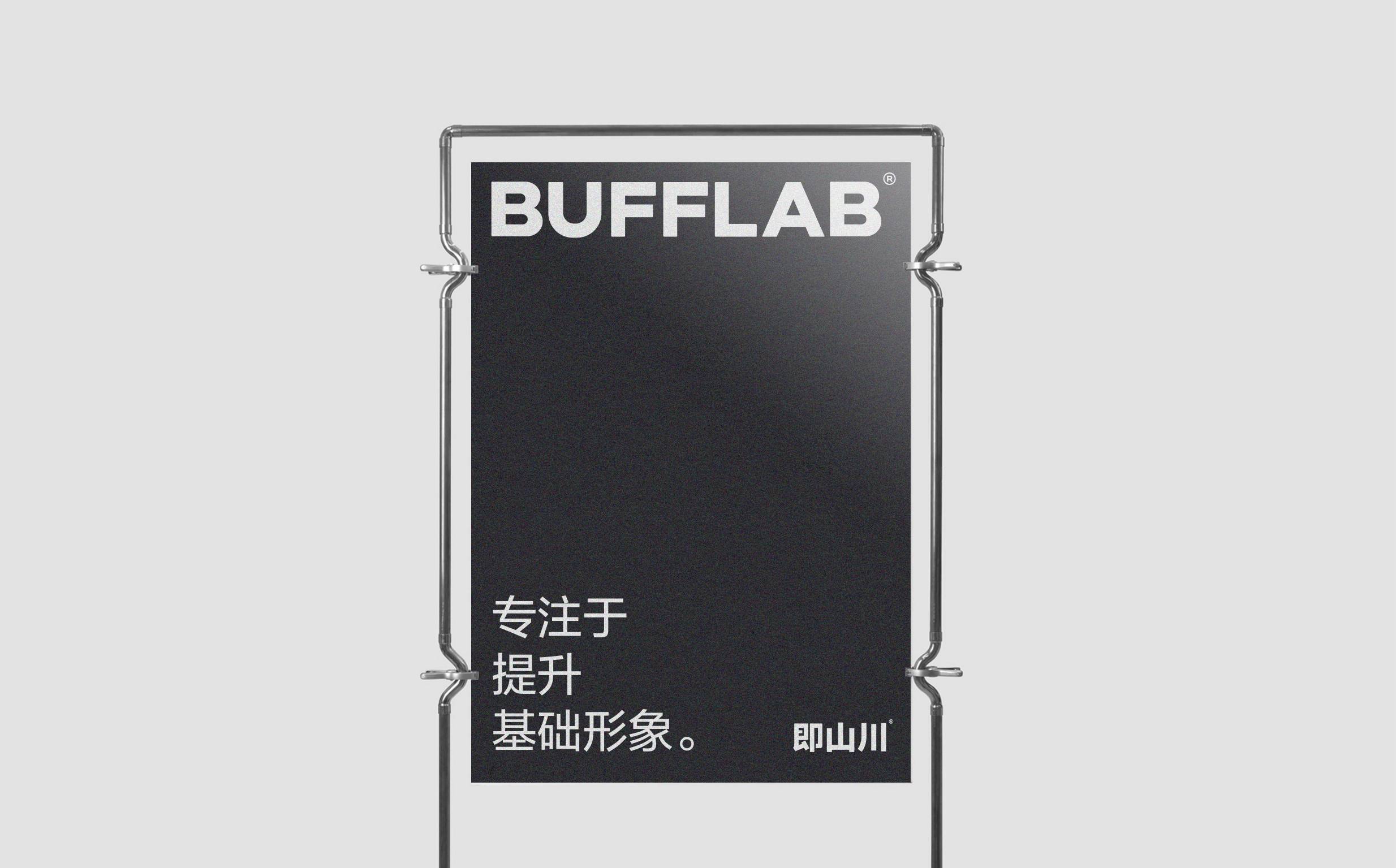 即山川,“不动如山,顺势如川“,山是稳重的品格,是不扁不塌的造型;川是潮流的个人形象,是依据不同场景变化的造型。即山川,原以英文名BUFFLAB为品牌核心标志,而作为新兴品牌,面对国内消费者,我们认为应尽量以中文为核心,辅以英文提升品牌形象,这样用户更易识别也更易传播。