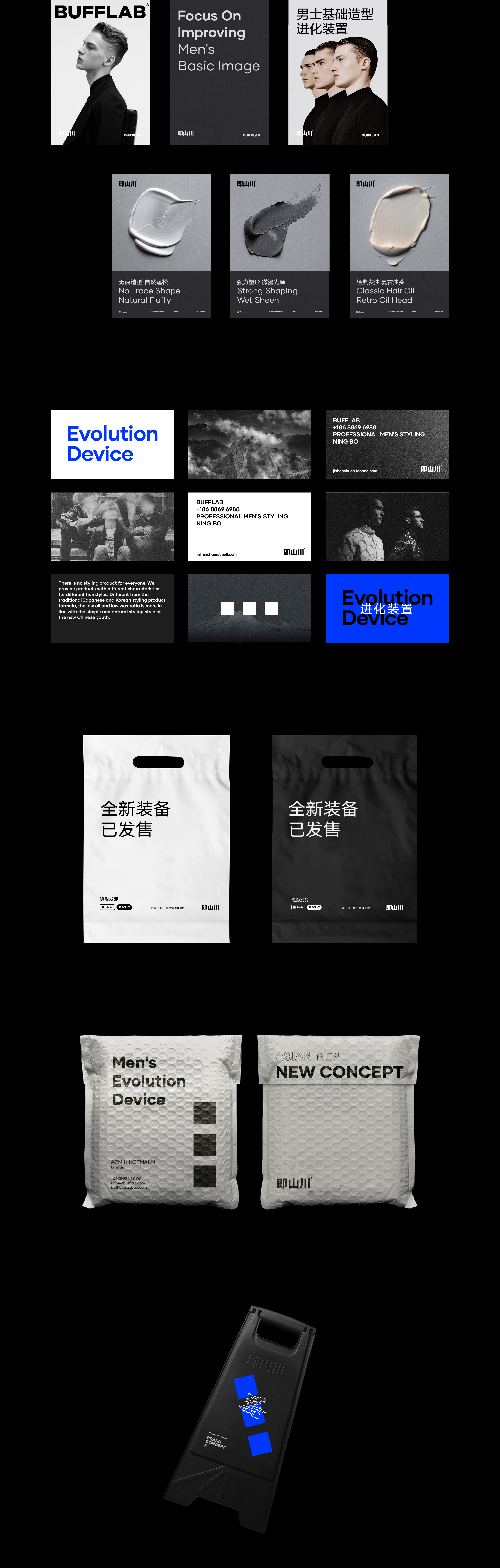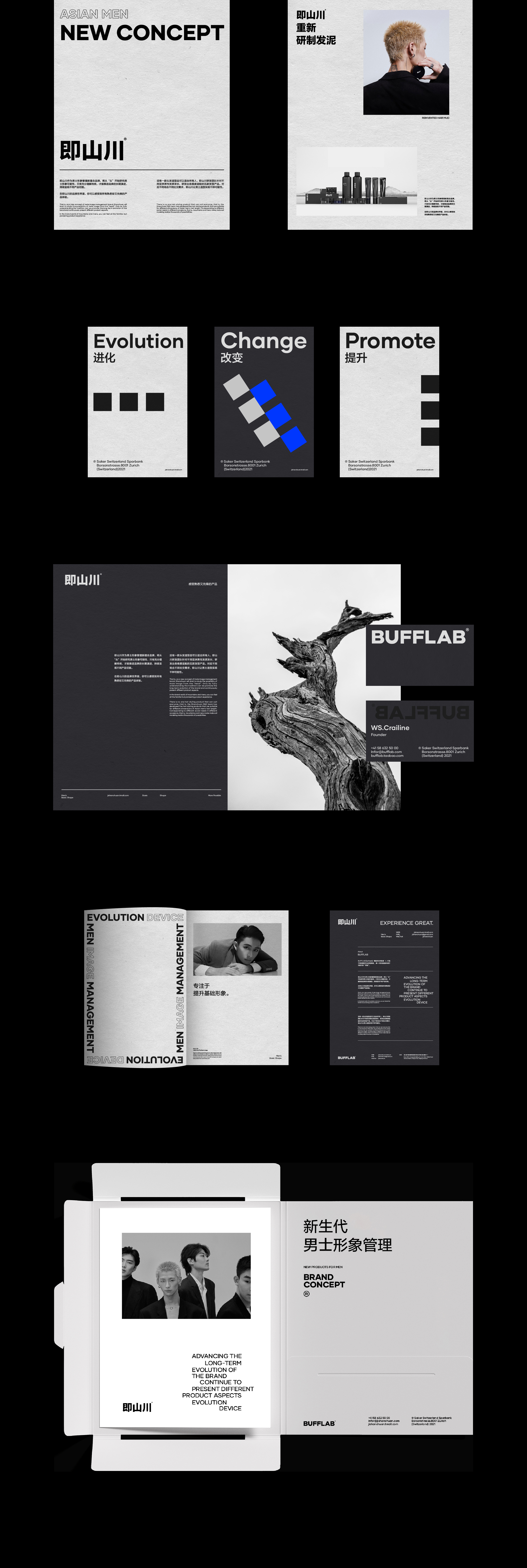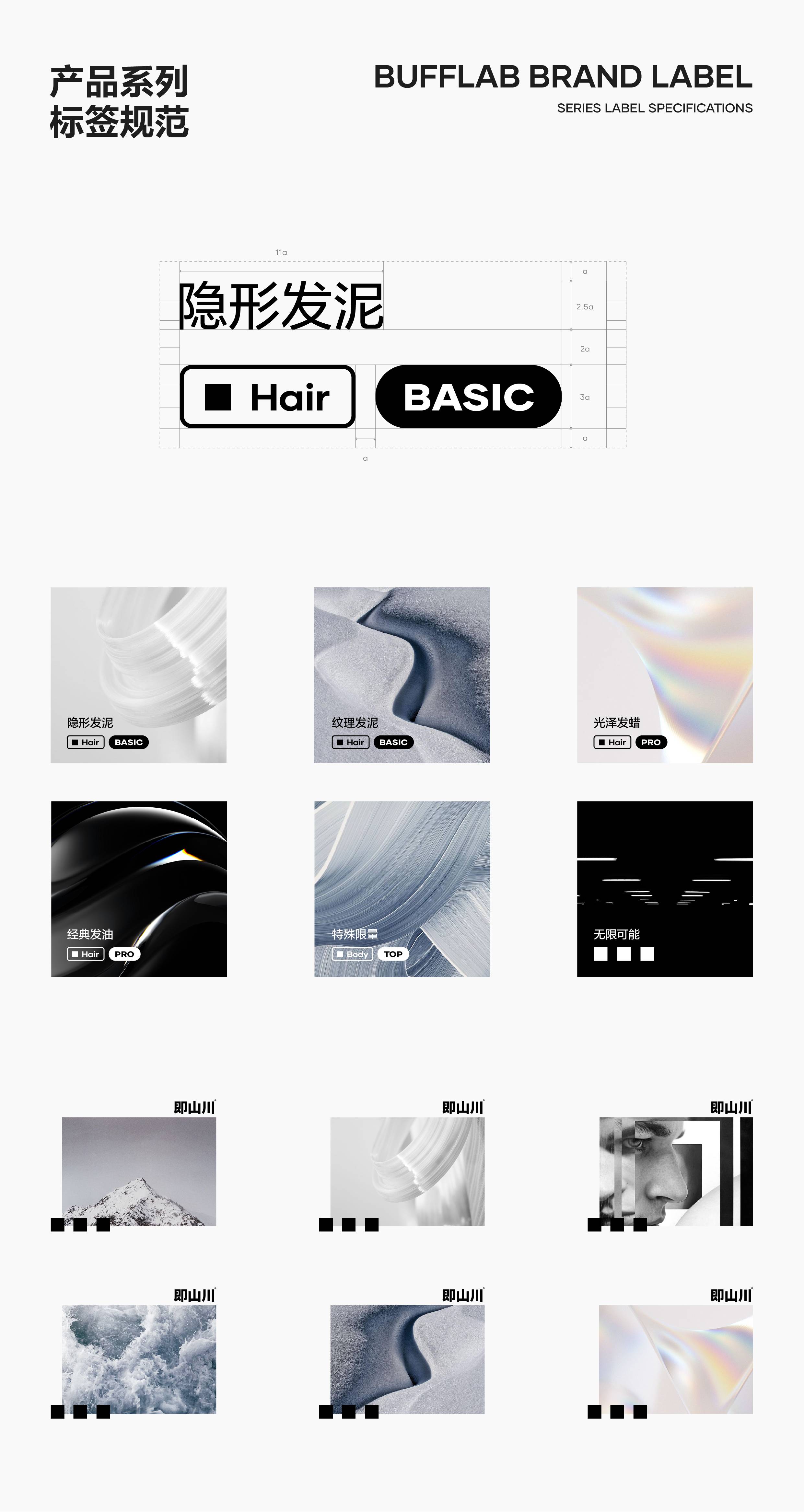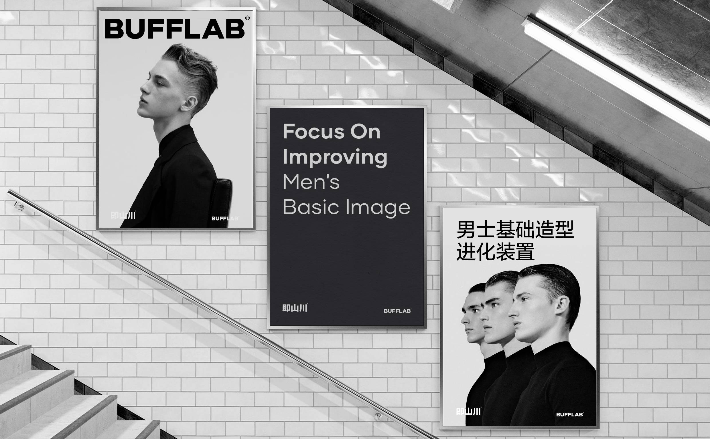 考虑到BUFFLAB即山川聚焦于中高端男士造型这个细分领域的消费客群,我们希望在品牌气质的塑造上是年轻的且具有男子气概的,因此选择了简约现代的等线粗体,在保持耐看和识别度的同时,传达品牌纯粹、专业的态度。并优化英文标志,采用统一的细节处理方式。