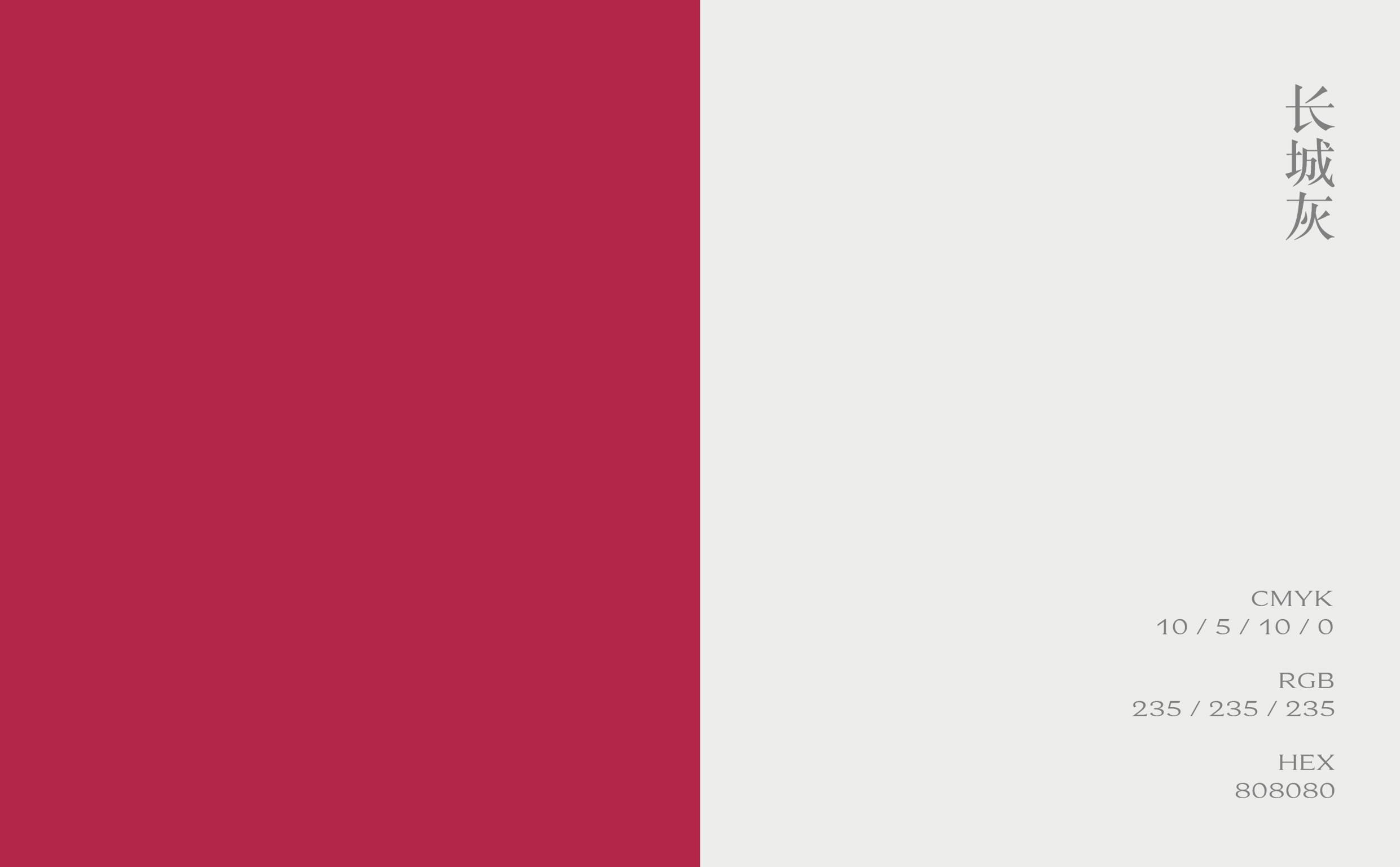 选取华夏红、长城灰作为品牌主色,沉稳而大气,具有中华深厚的底蕴感。华夏红是古典而庄重的,没有正红的张扬,有种内敛美;长城灰则平稳、优雅,给人大气的视觉观感。