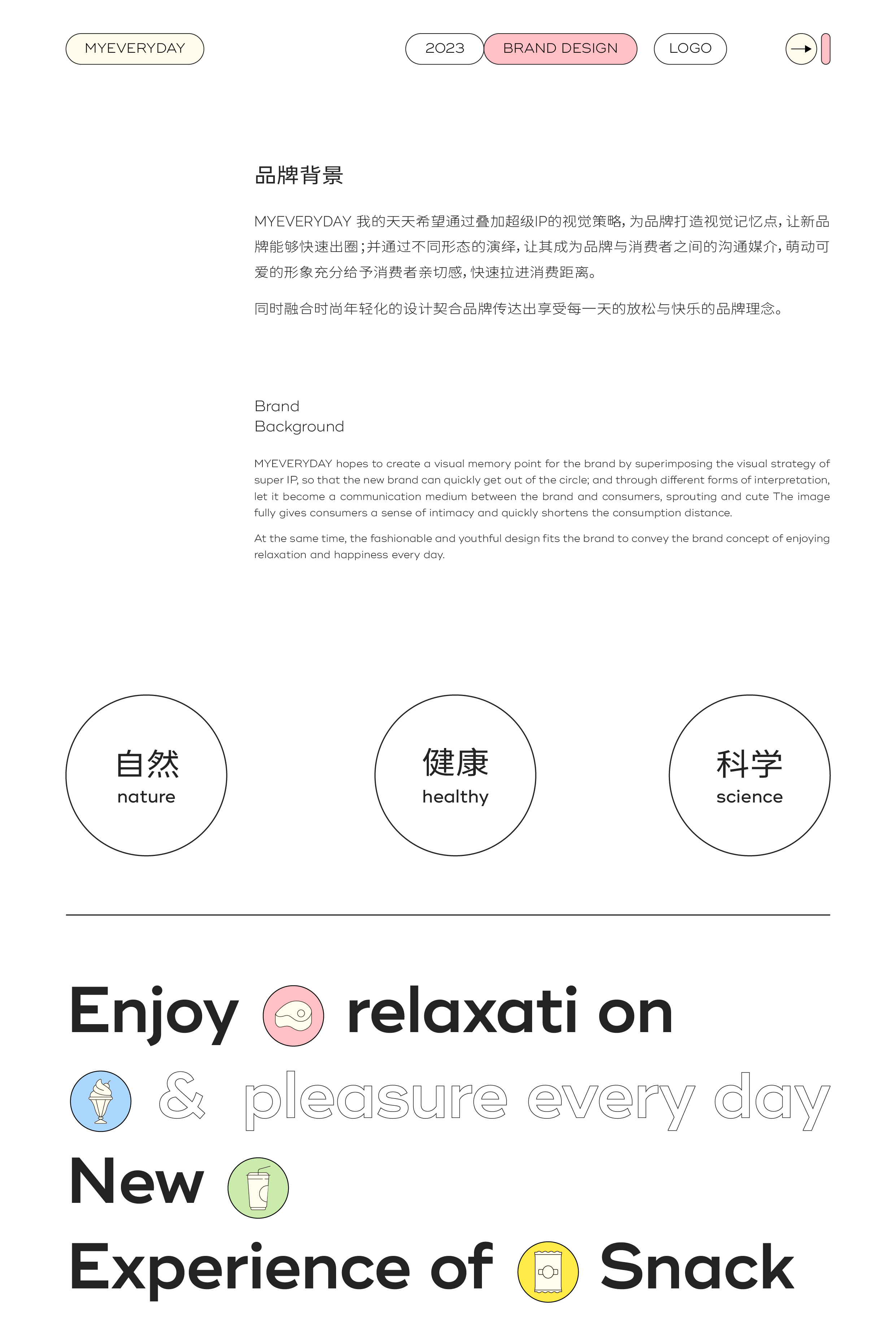 MYEVERYDAY 我的天天始创于2023年,以“创意健康零食饮品”为核心产品开发,传递“好吃、好喝、好玩的每一天”的品牌理念,致力于打造更具创意力、年轻力的健康休憩零食饮品,并探索更多可能。