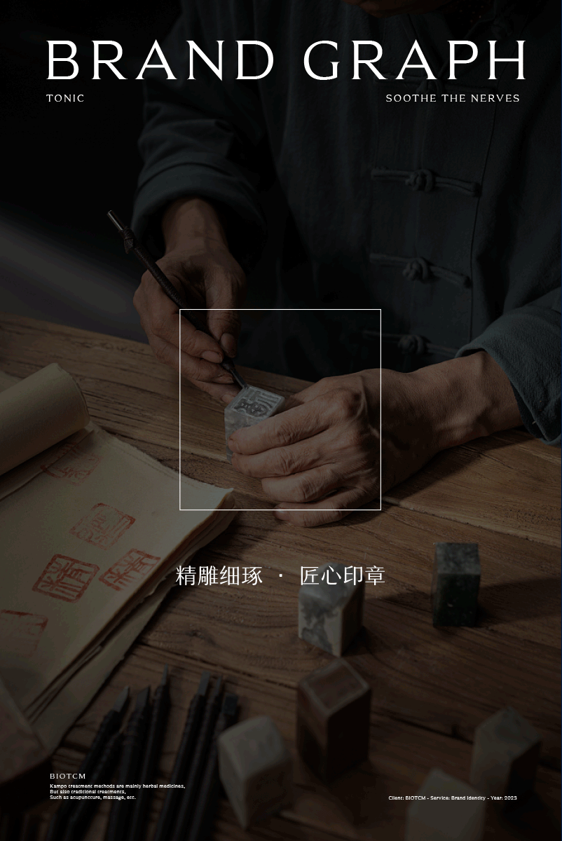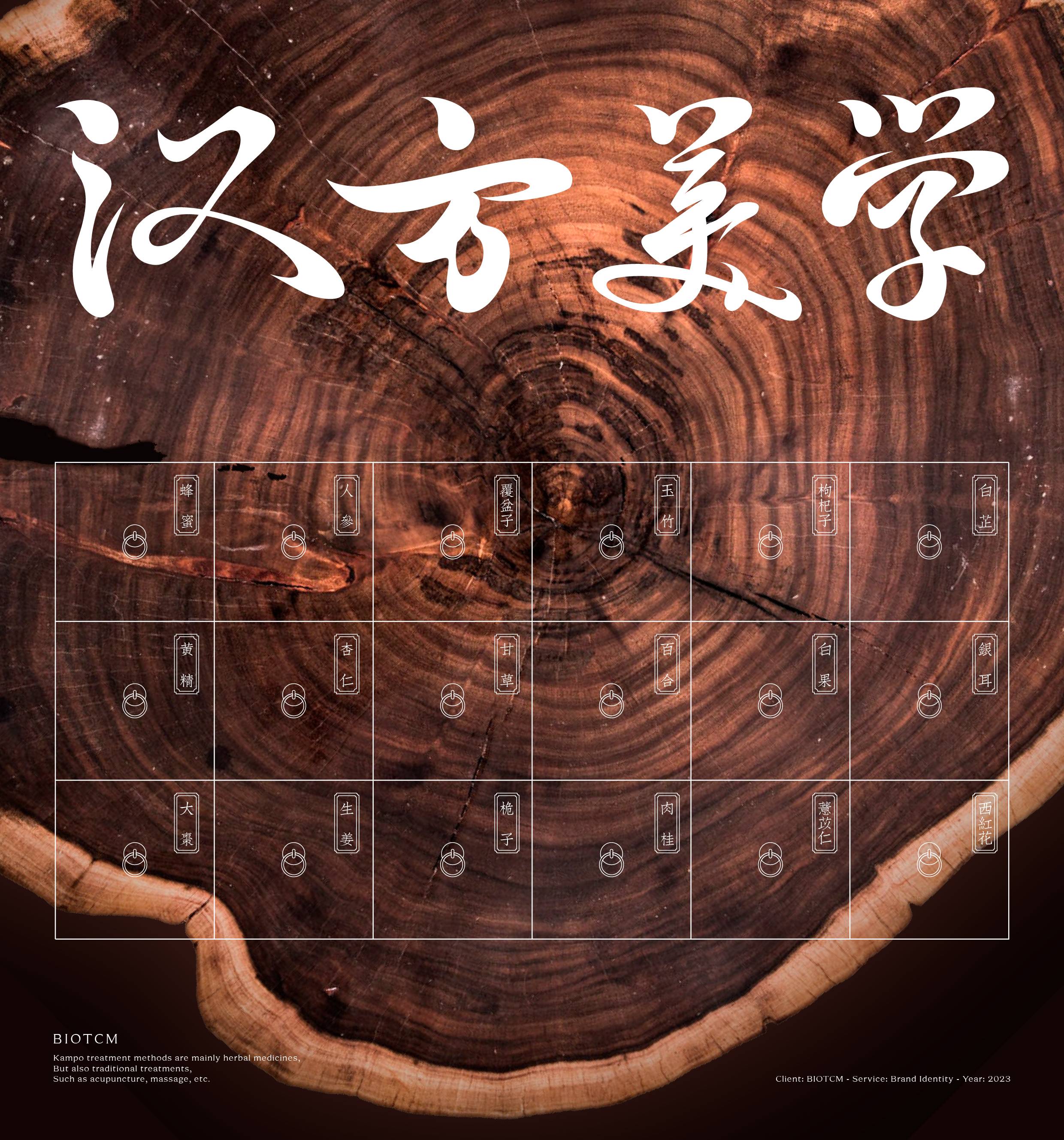 “方”代表了古法配方,也是品牌的自有基因,我们以此为灵感展开符号设计。整个符号方正精巧,粗看似古时的中药柜,又似印章,细看中间的图形构成一个“方”字,将中药文化与品牌巧妙融合于一体。