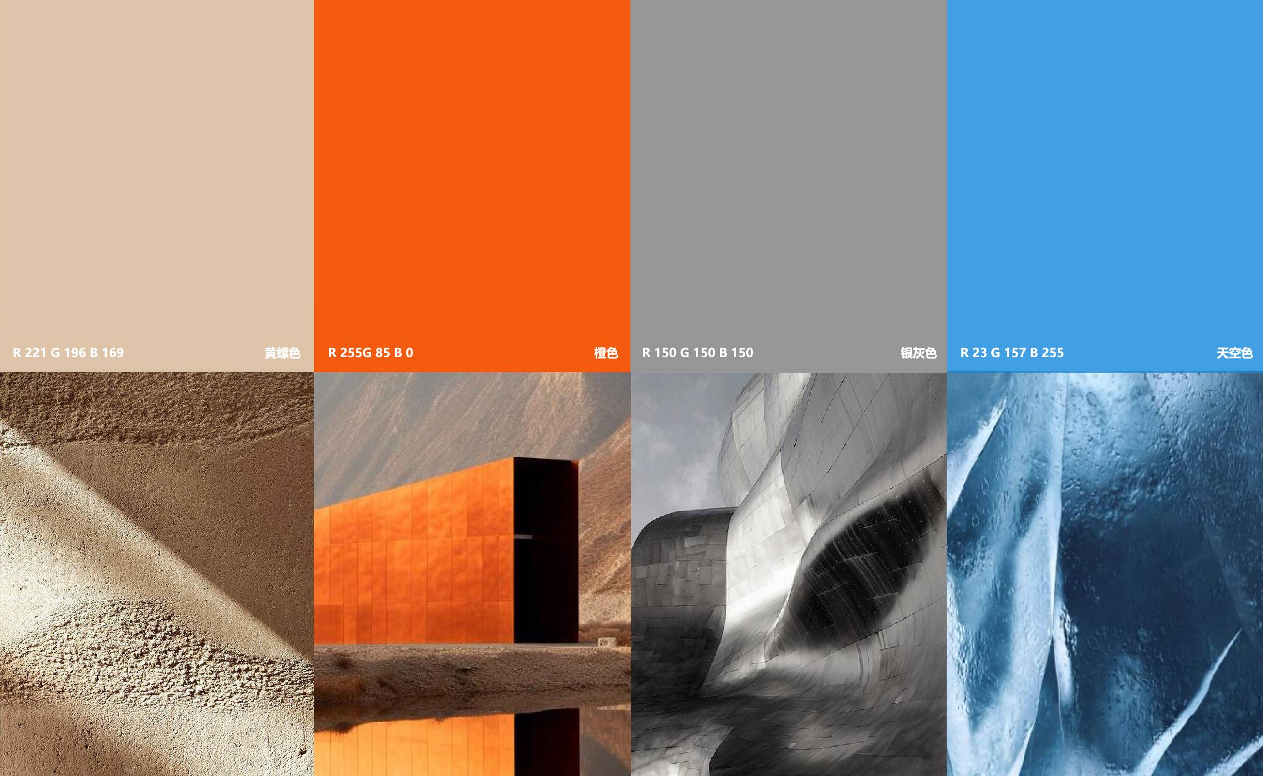 整体以银灰作为视觉主调,奠定冷峻、沉稳的空间基底,塑造极简硬朗的工业风格。而浅原木色形成柔和温暖的视觉过渡,中和银灰色的冷硬感,营造舒适惬意的就餐氛围。辅以品牌橙色与蓝色,冷暖色彩碰撞,为空间增添灵动感,并形成视觉焦点。