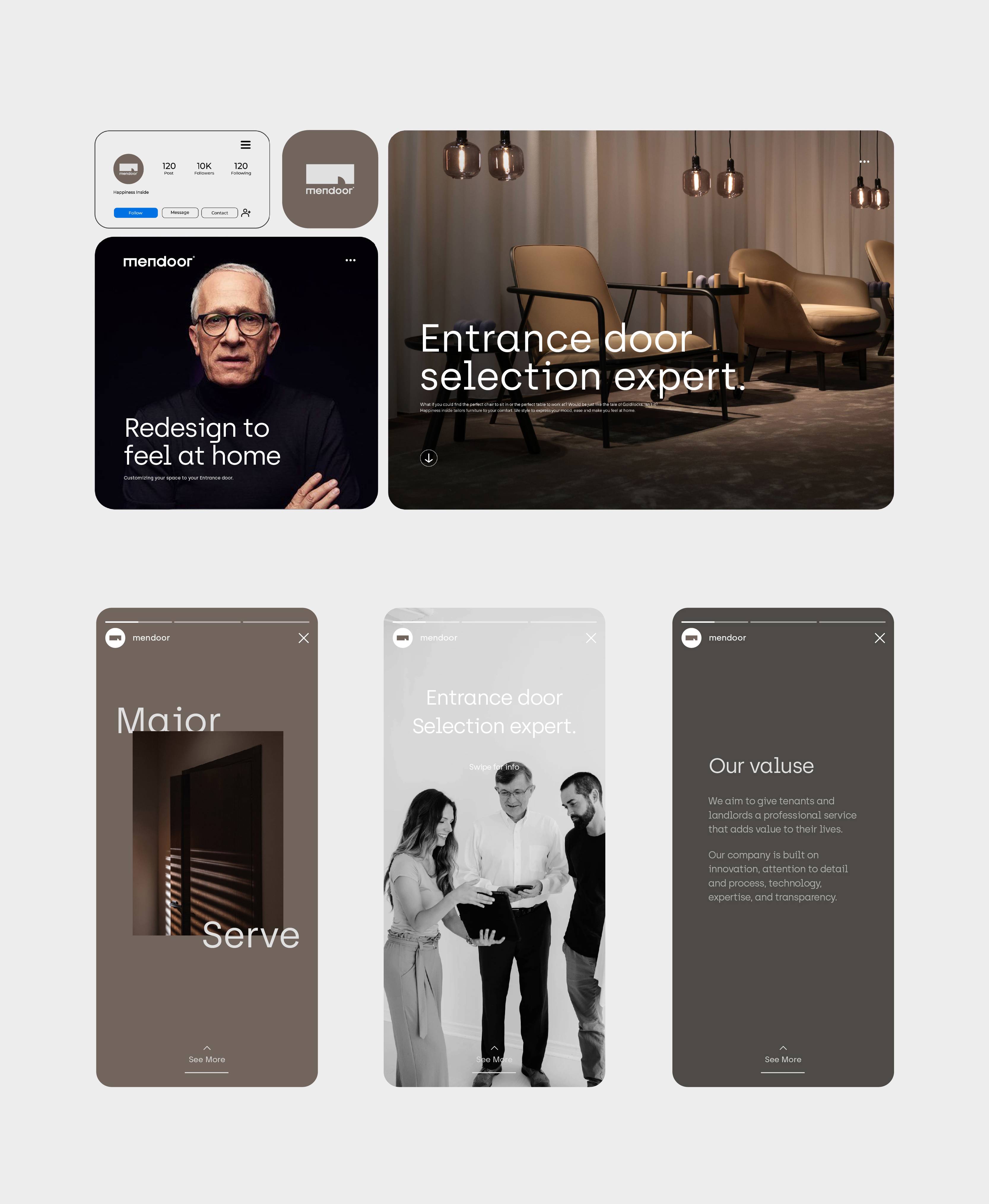 最终,以最纯粹的方正结构与精妙细节,将mendoor“顶尖制造”的理性实力与“创造美好空间入口”的感性价值,高度凝练为一个兼具辨识度与格调的视觉符号。