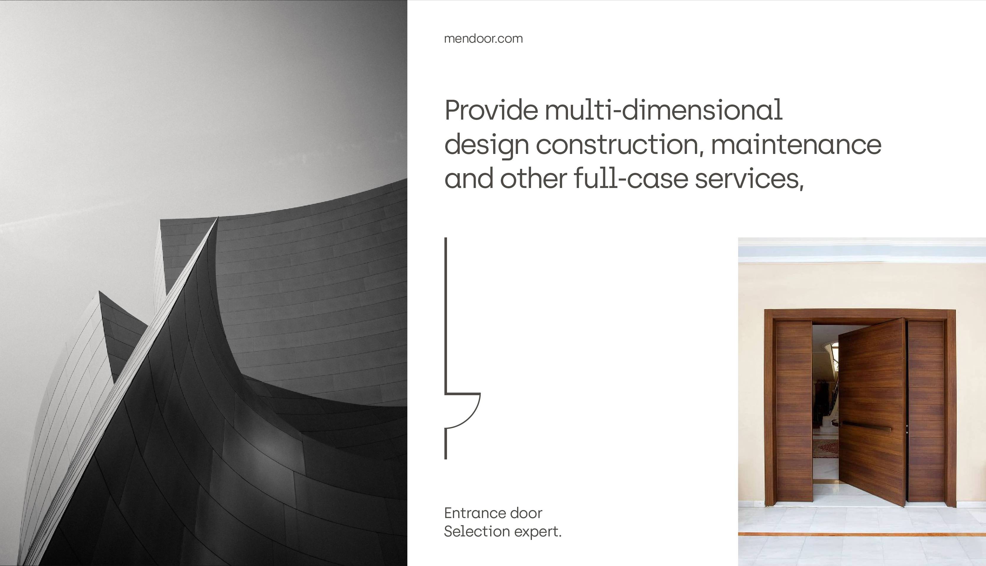 mendoor是一家将全球顶尖设计理念、前沿技术、精密制造工艺充分融合的产品引进到中国的进户门系统整合供应商。在提供入户门、智能电动门、车库门及花园门等产品的同时,还配套有设计、施工、维护等全流程服务。