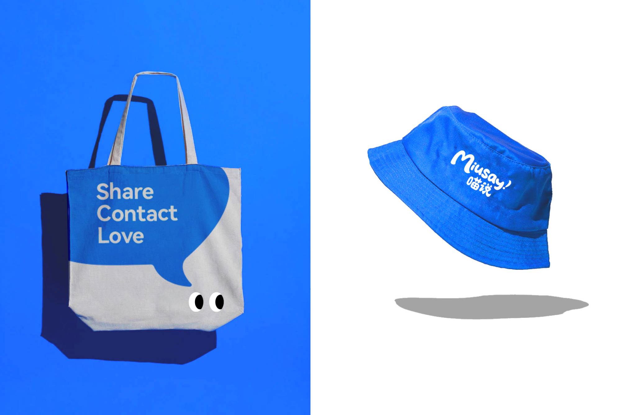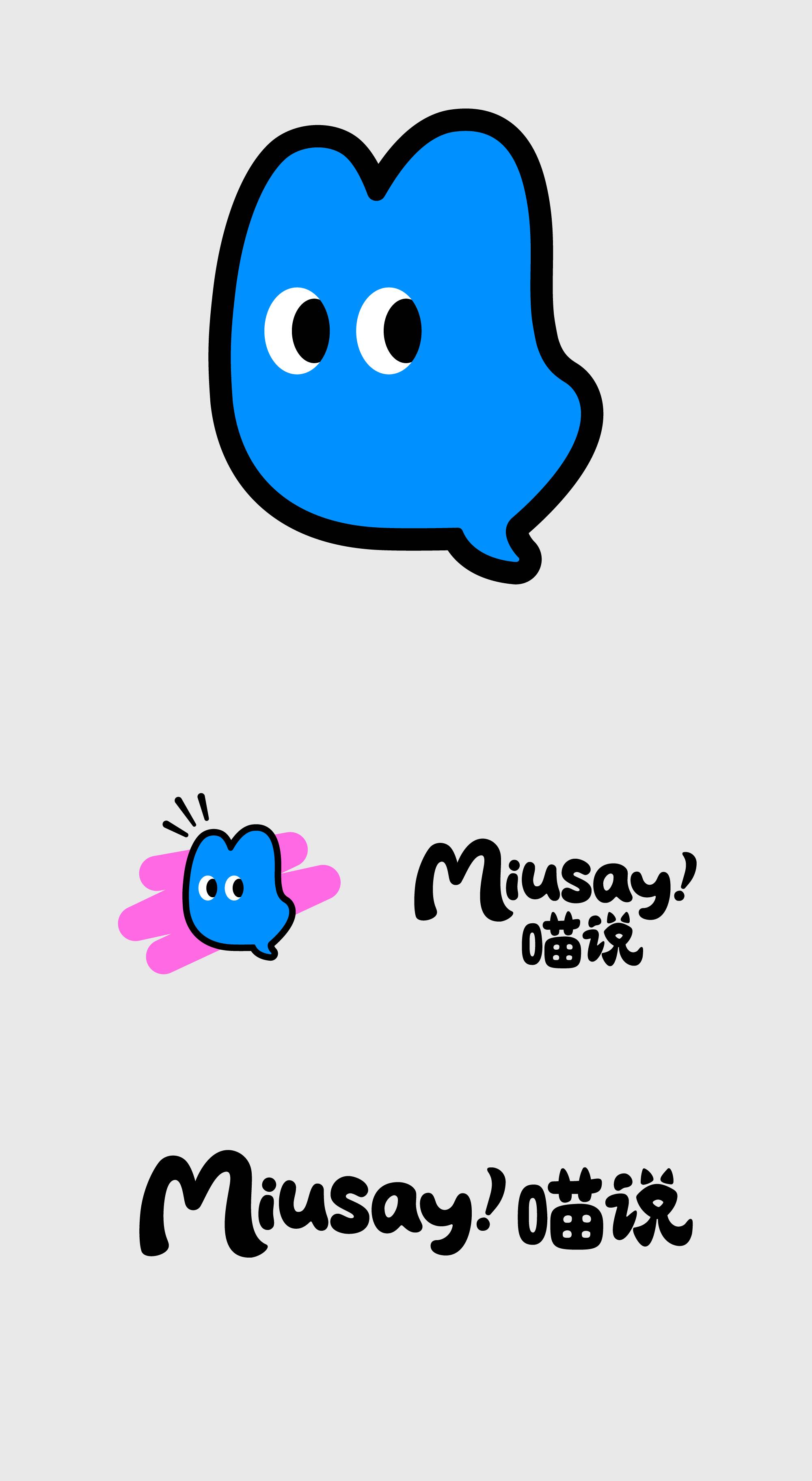 品牌名「喵说」中的「说」天然关联「对话」场景,而气泡对话框是现代社交语境中最典型的「对话符号」。通过将抽象的「沟通」概念转化为具象的气泡图形,实现了品牌名称的视觉语义强化—— 用户看到气泡即可联想到「猫咪通过声音(喵)与主人交流」的核心场景,形成「视觉-语言」的双重记忆点。