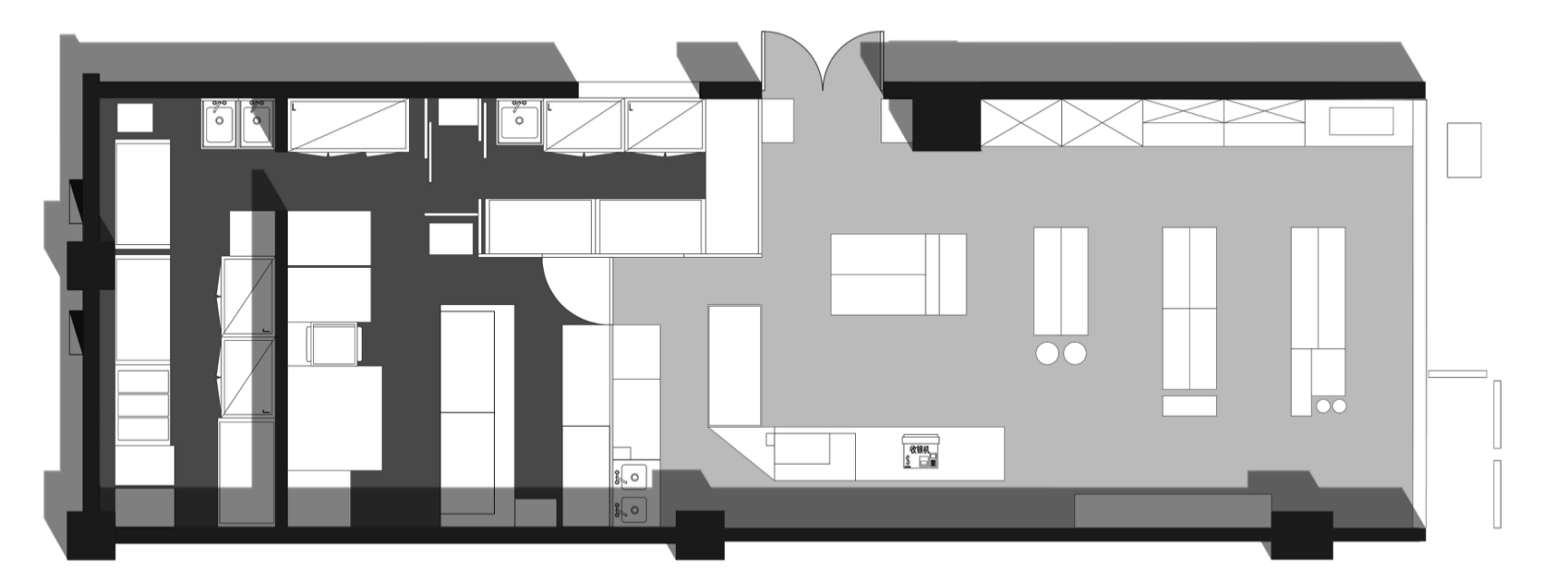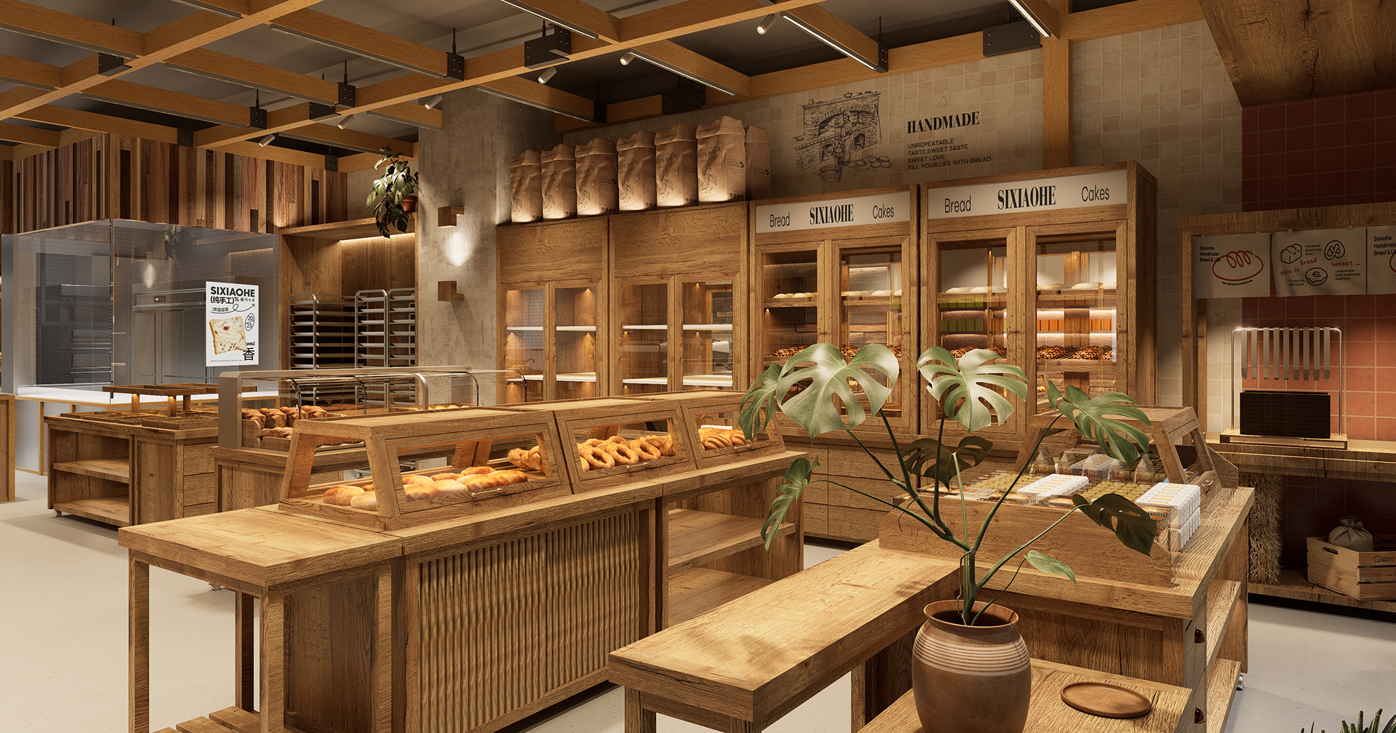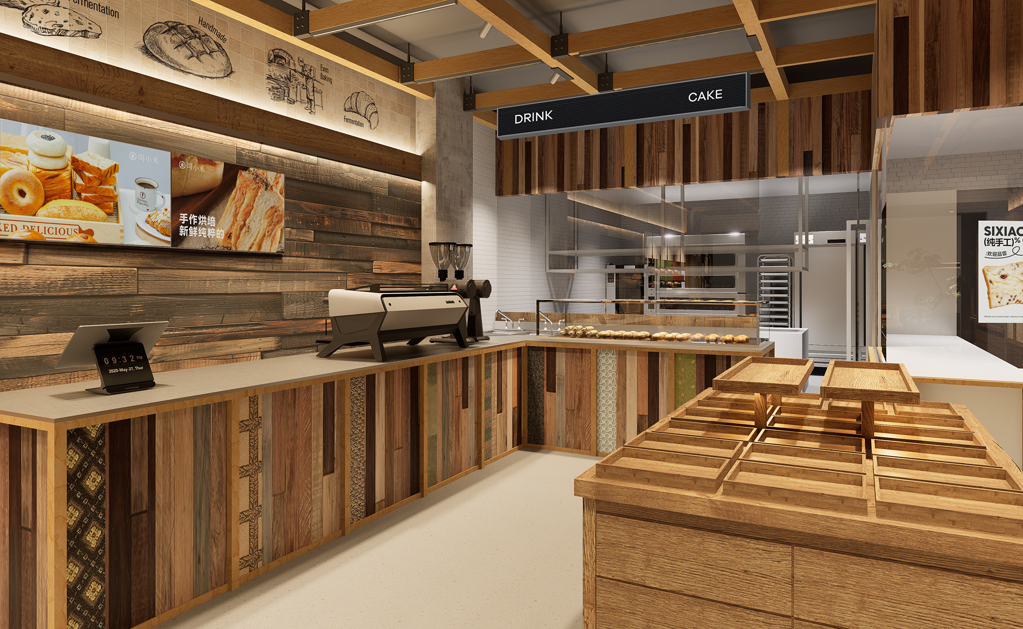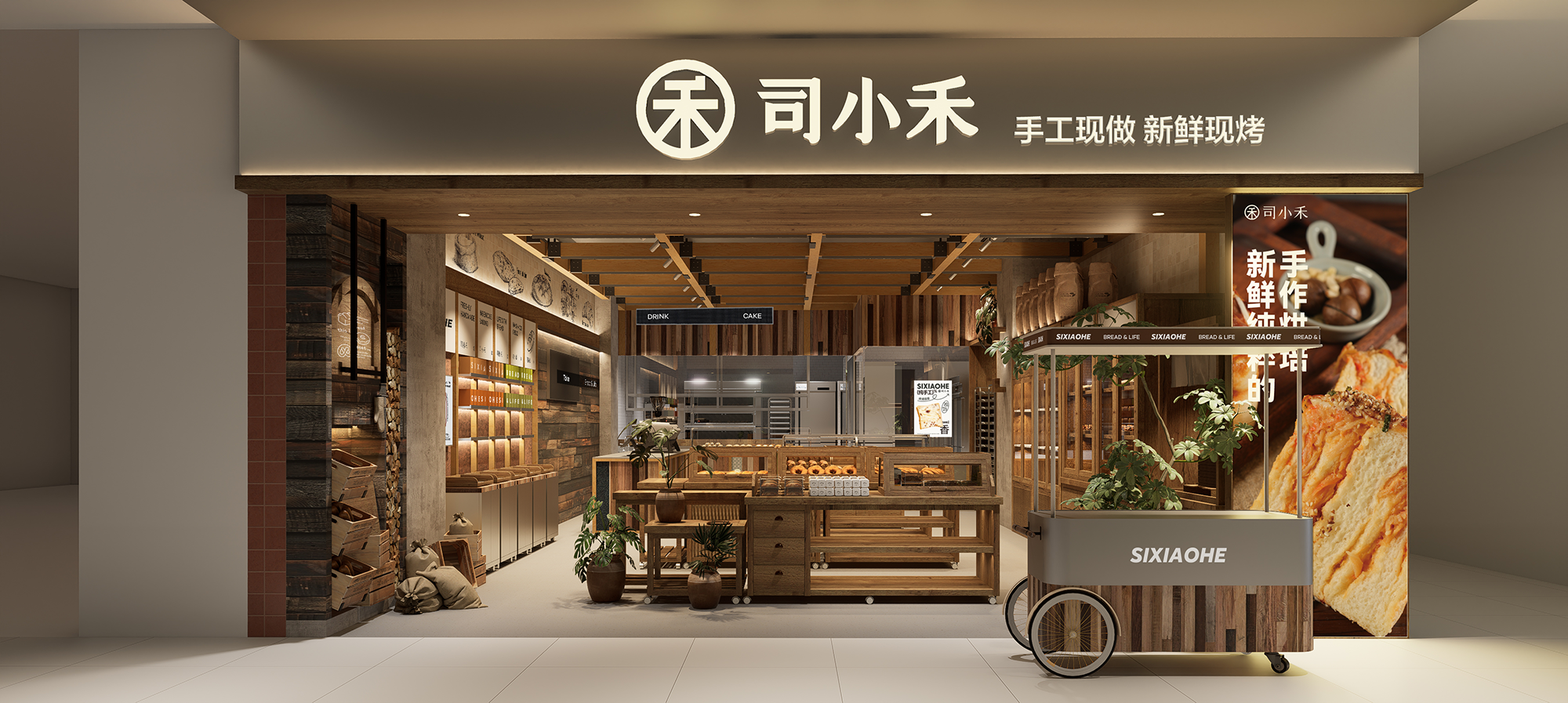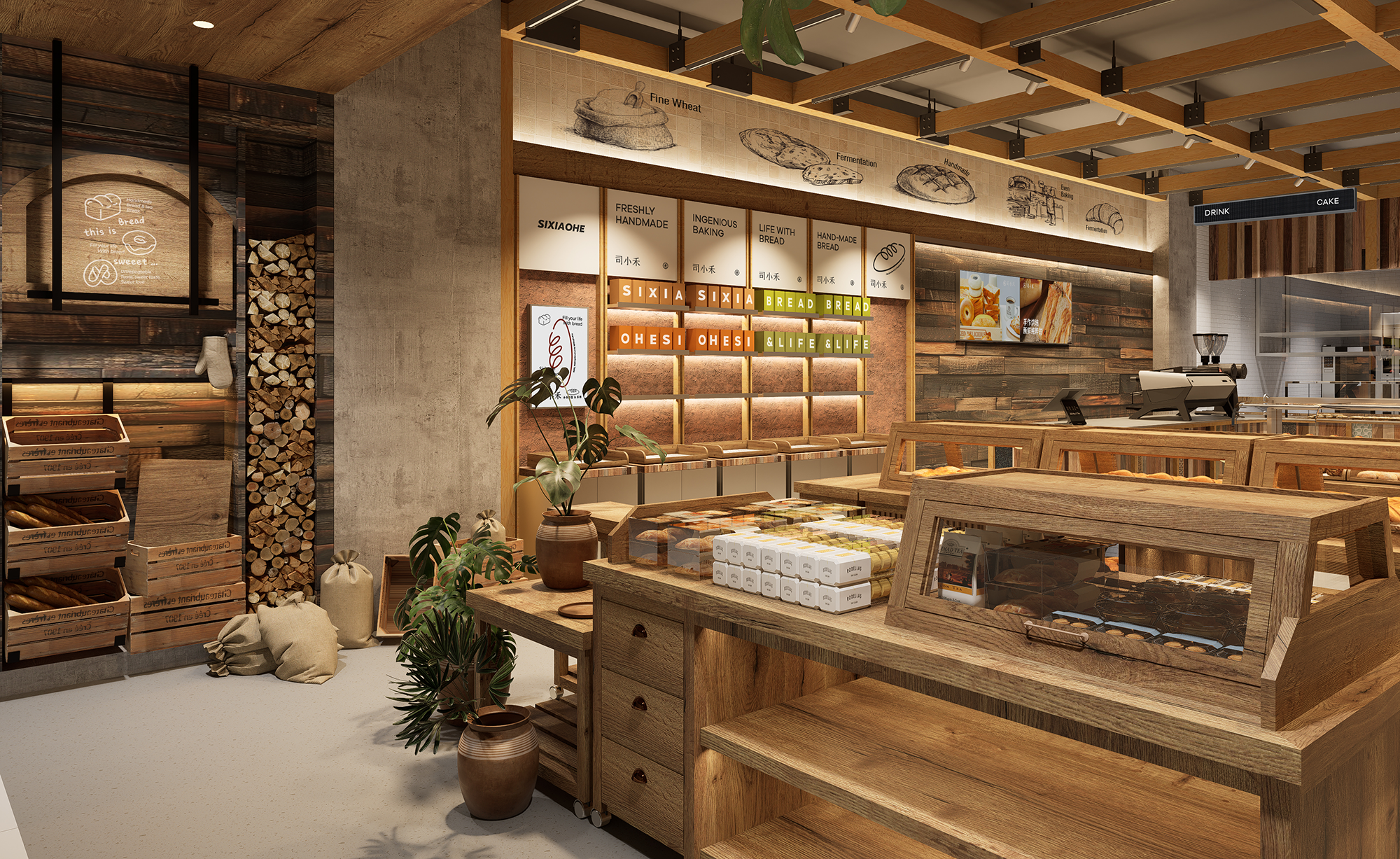 开放式入口设计消弭内外隔阂,让烘烤的麦香从烤房自然溢出,弥漫到空间各个角落,形成“未入其店,先感其温”的引力场,从而吸引商场来往的人。