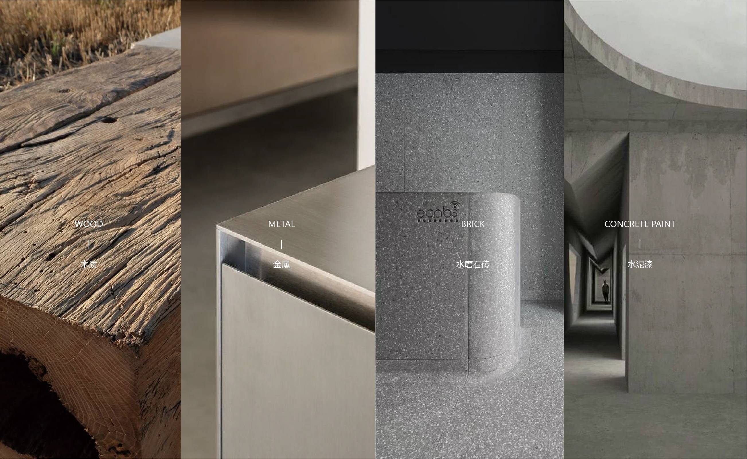 Main Materials: Old Wood Boards, Cement Paint, Grey Floor Tiles, Cork Boards, Square Bricks
