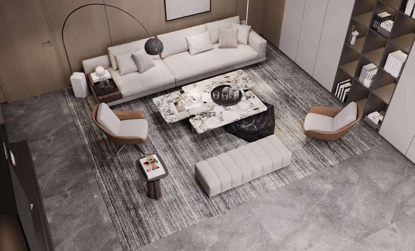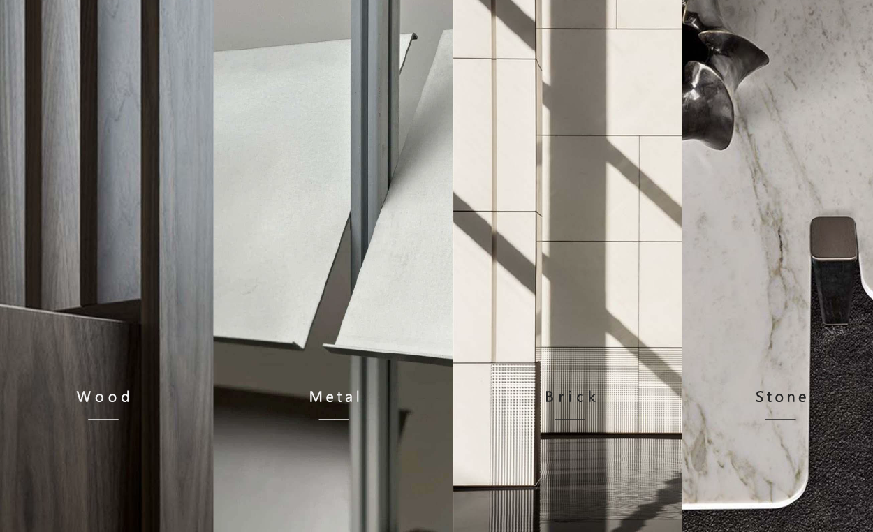 主要材质:木饰面、艺术漆、金属、石材、砖