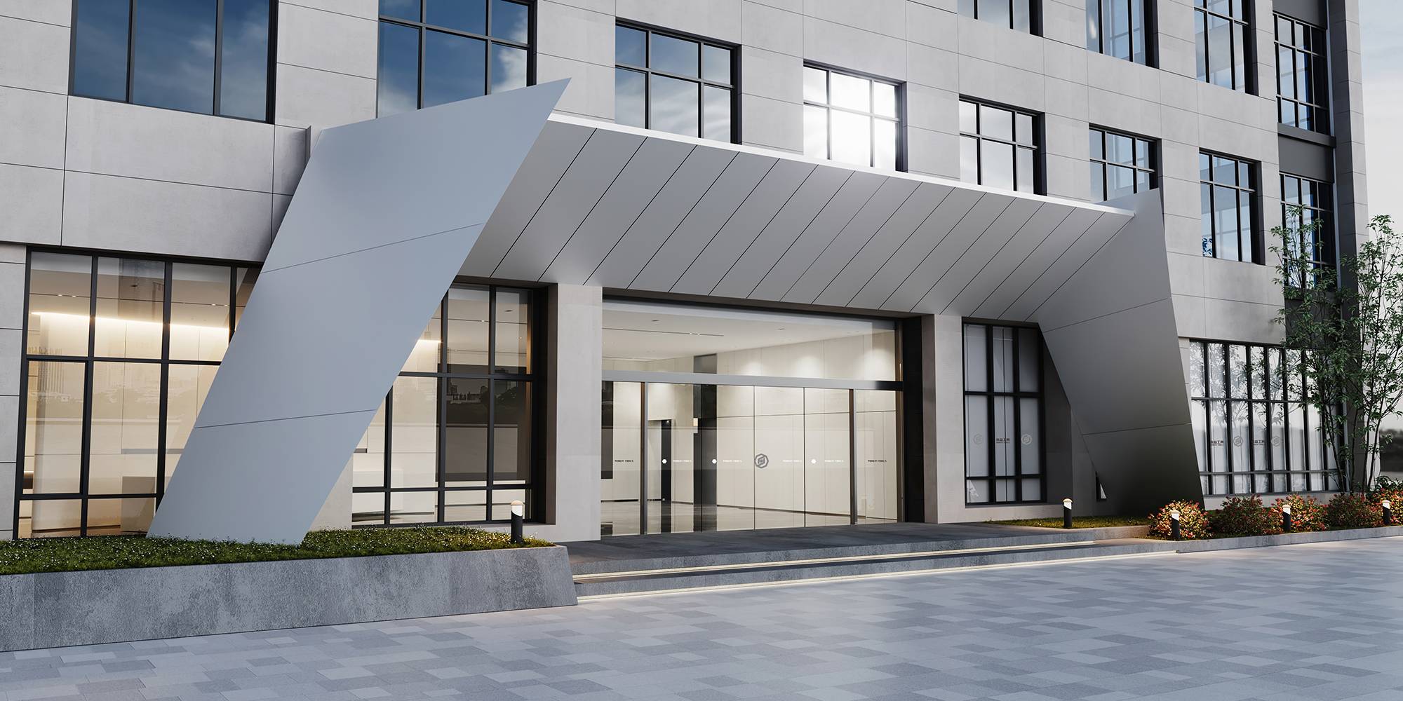 以极简利落的线条构建棱角分明的外立面,灰白色铝板散发低调的光泽感,打造未来而科技的视觉感受。同时利用玻璃连接起室内外空间,融景于内,打造无边界的开放氛围。