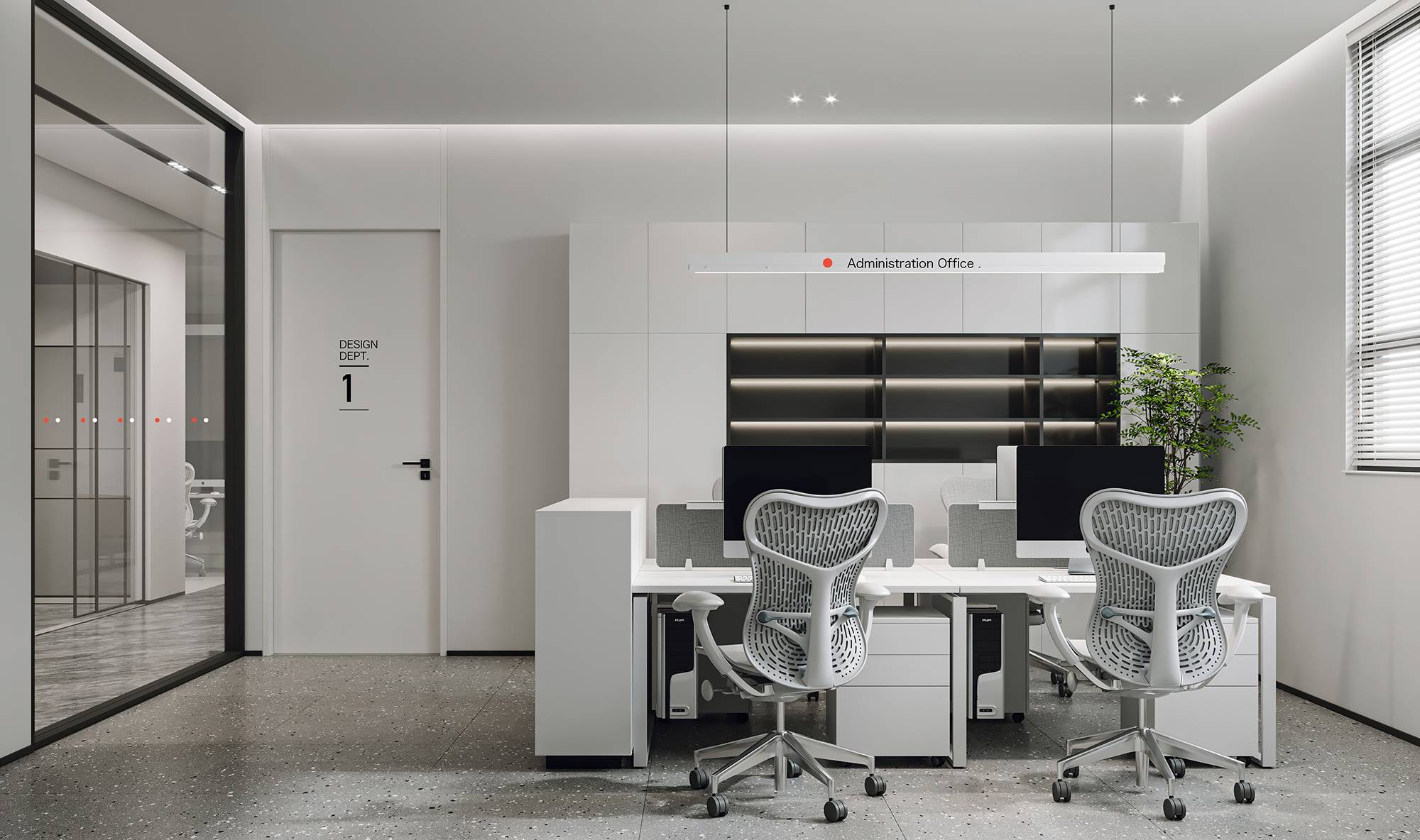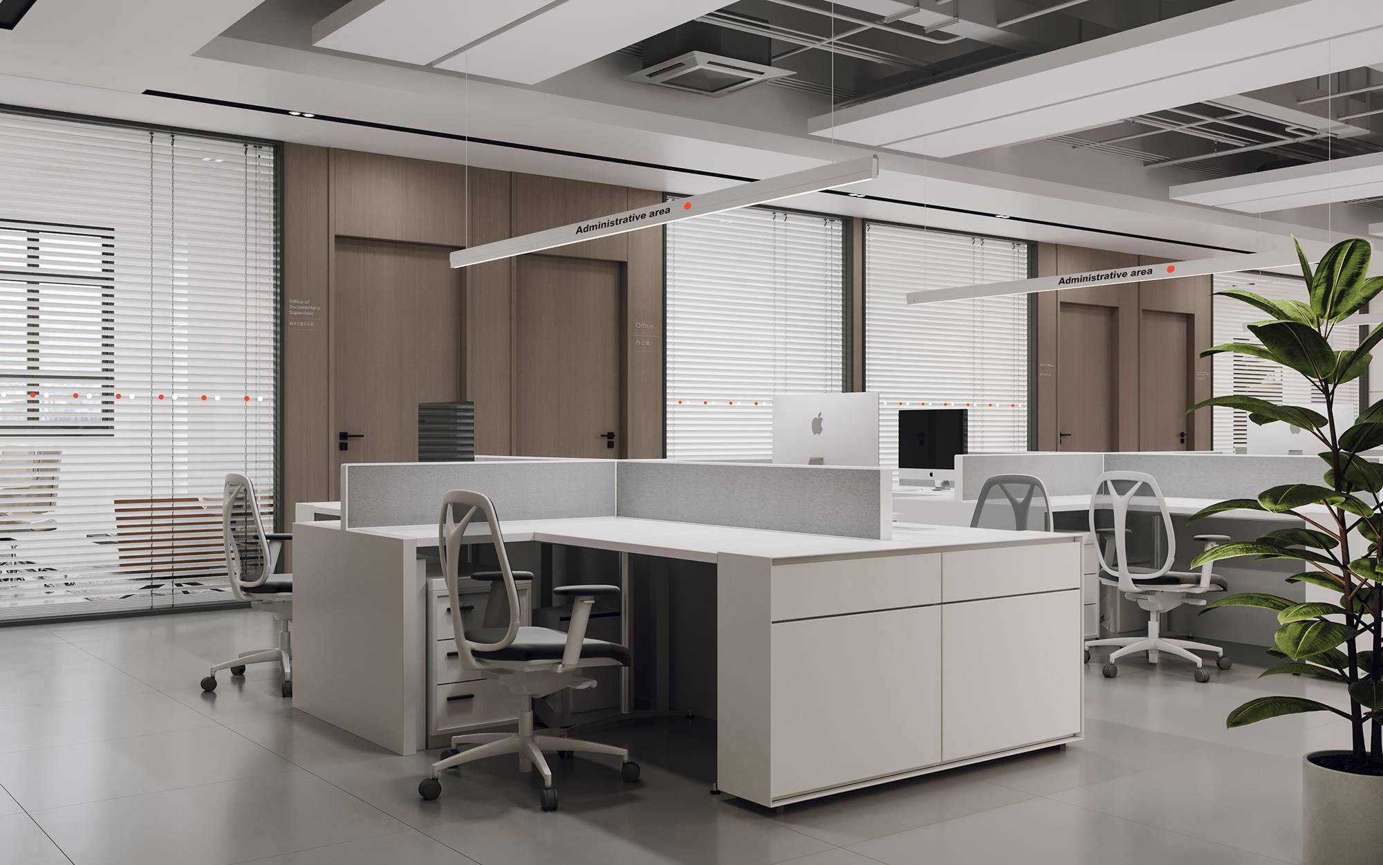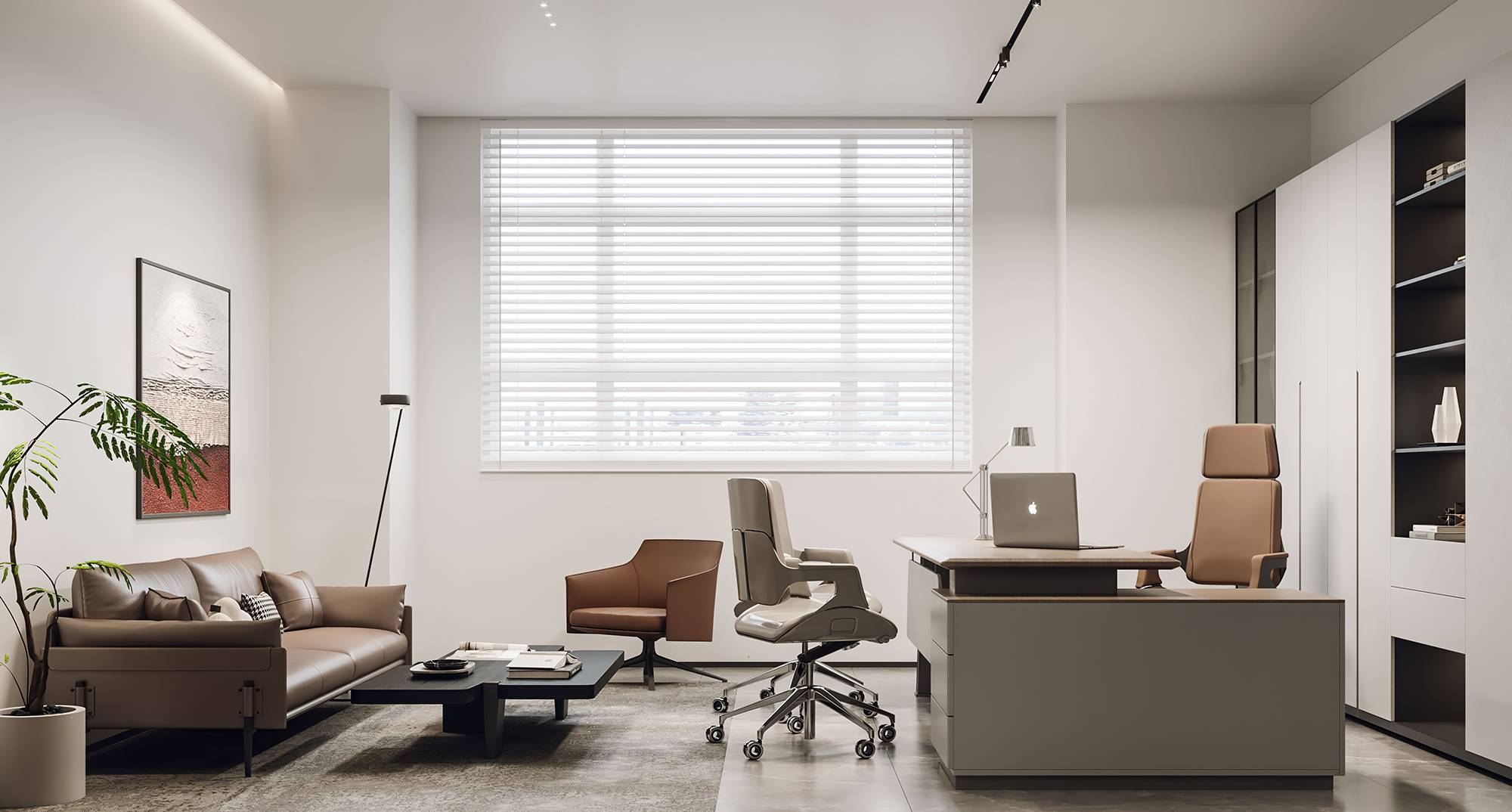 另设有商务接待区,以简洁舒适的风格形成休闲轻松的交谈氛围,让社交互动能够更和谐、愉悦,进一步增加人与人的紧密性,从而提升工作质量。过道处,温暖的光线与充满生机的绿植,共同营造一个闲适的落座区,以提供短暂的休憩。