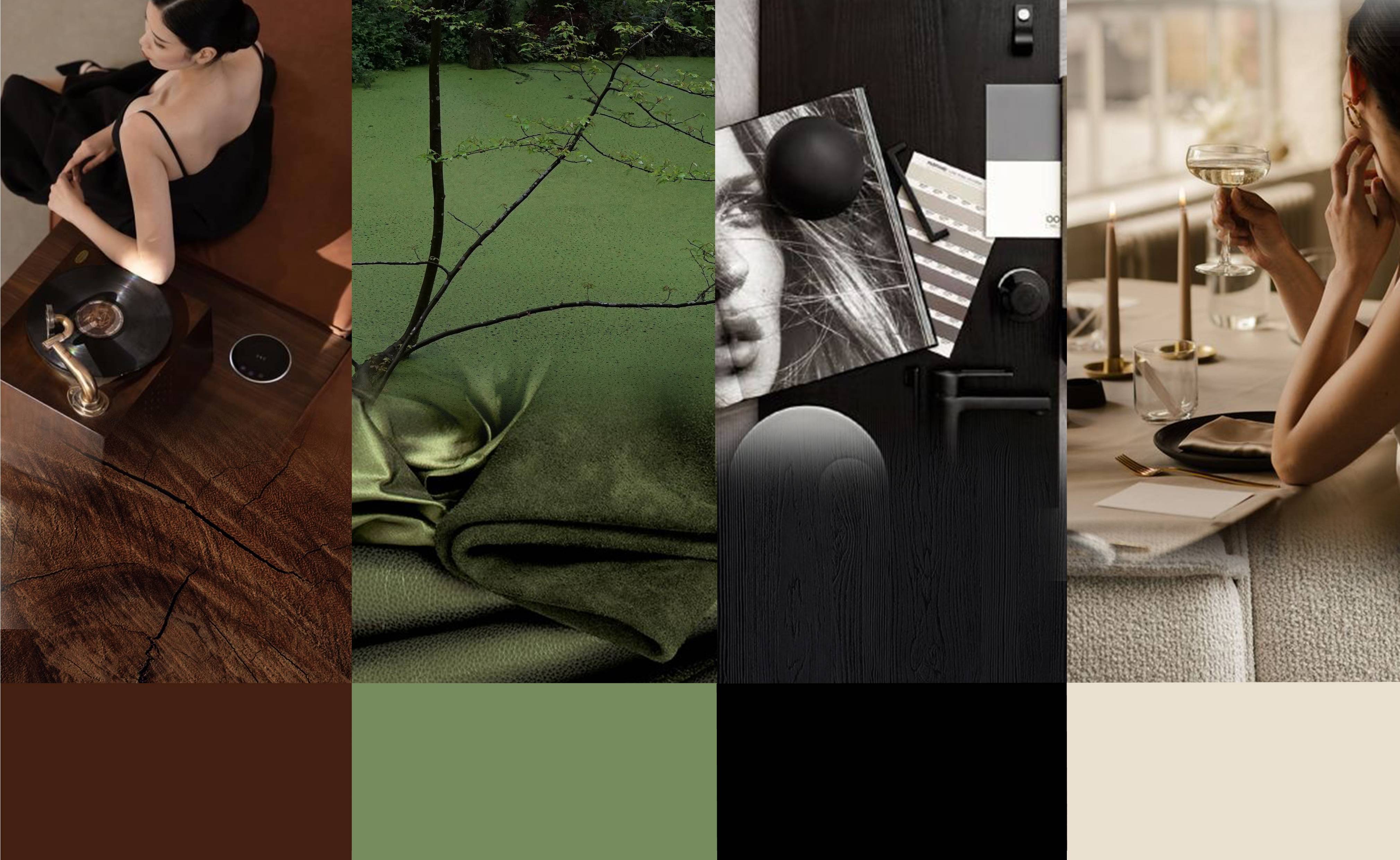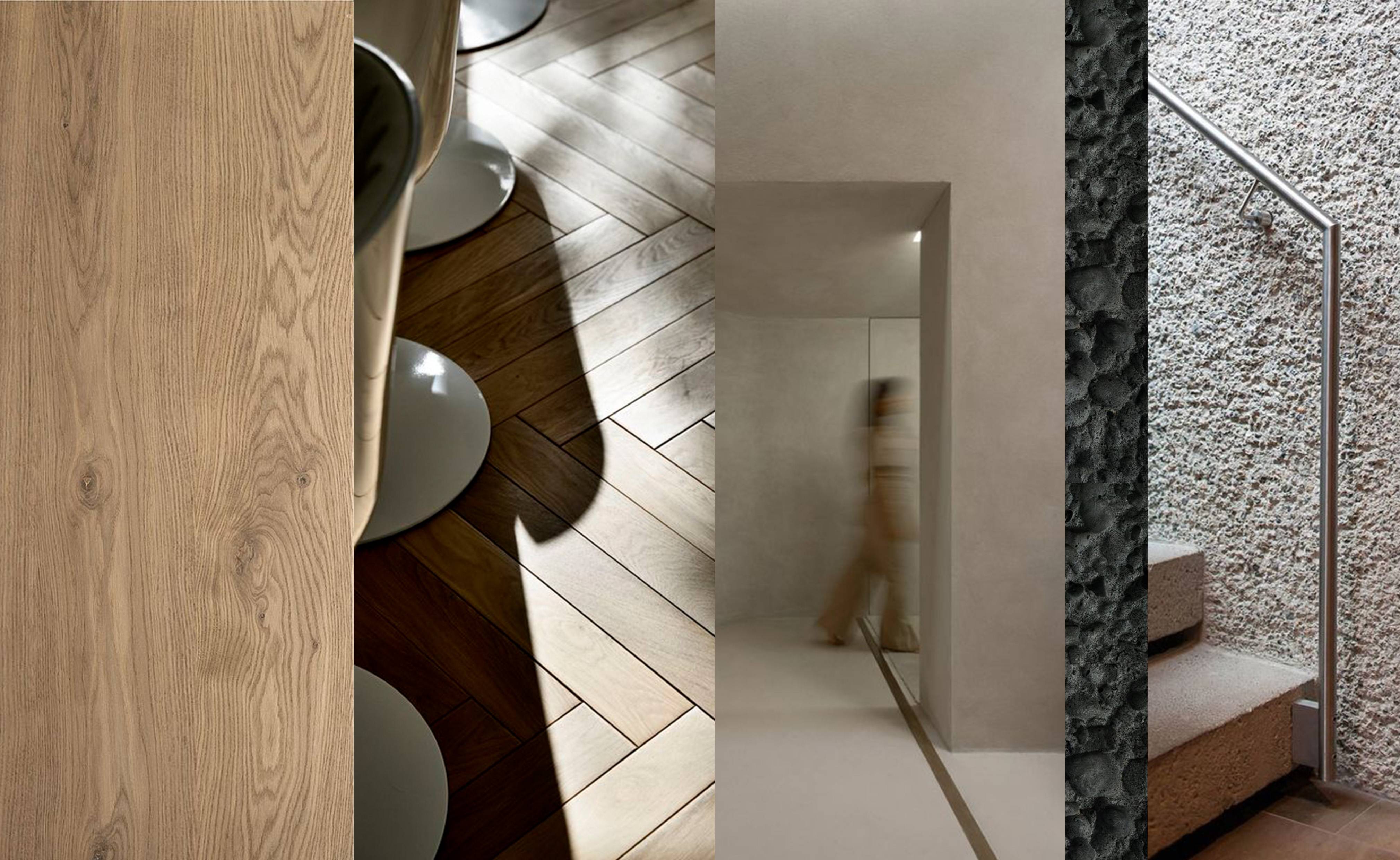 Main Materials: Wood Veneer, Metal, Paint, Glass, Wall Fabric, Brick and Stone, Hill Stone
