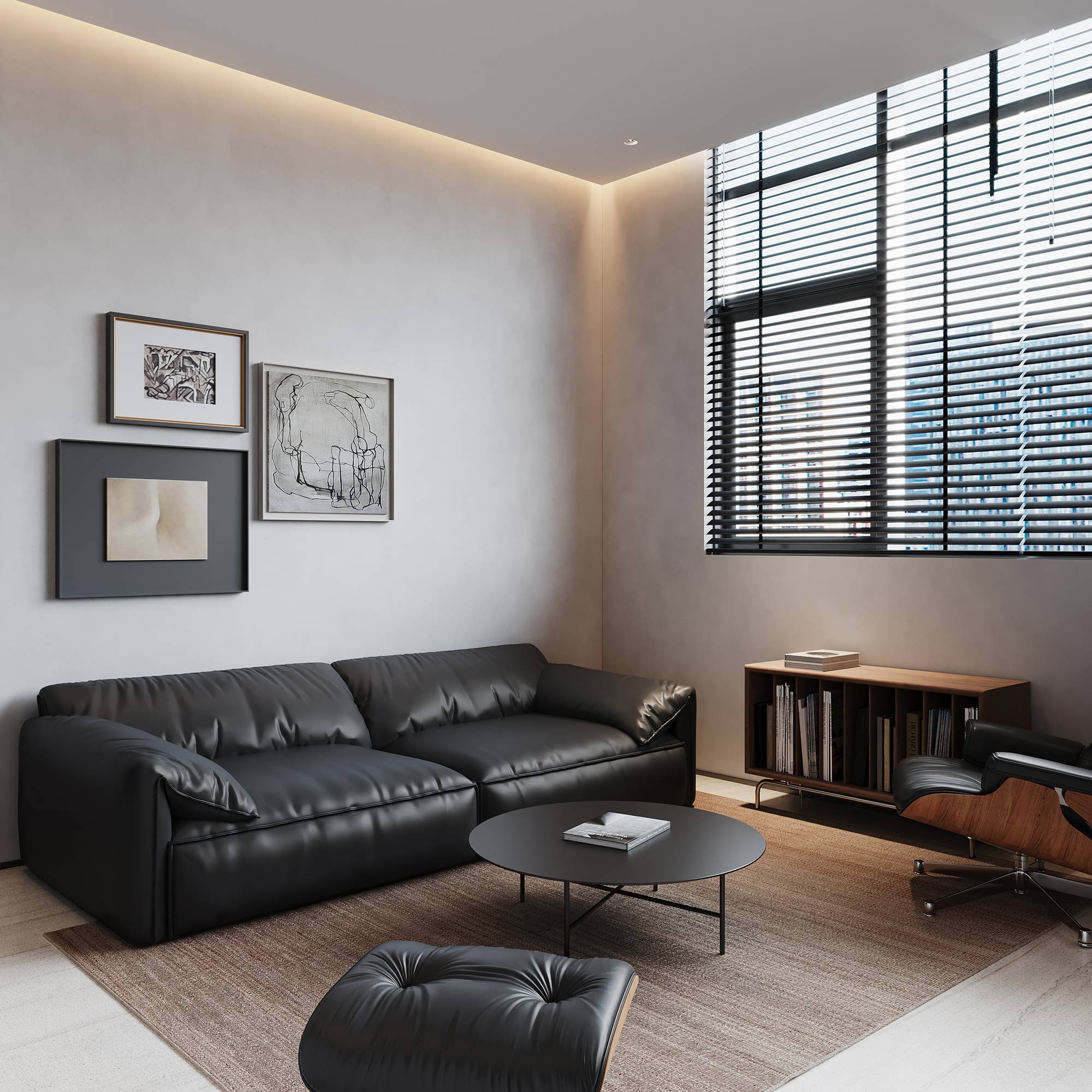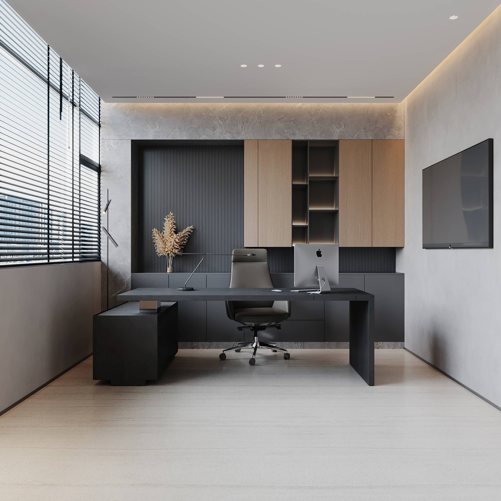 总经理办公室内,以现代摩登审美打造理性克制的空间,温润木材与气质石材的融合其中,平和内敛的空间情绪随之流淌。舒适沙发组合、实用置物架、艺术装饰画,共同将家的氛围搬入空间内,打造一个闲适有格调的洽谈角。