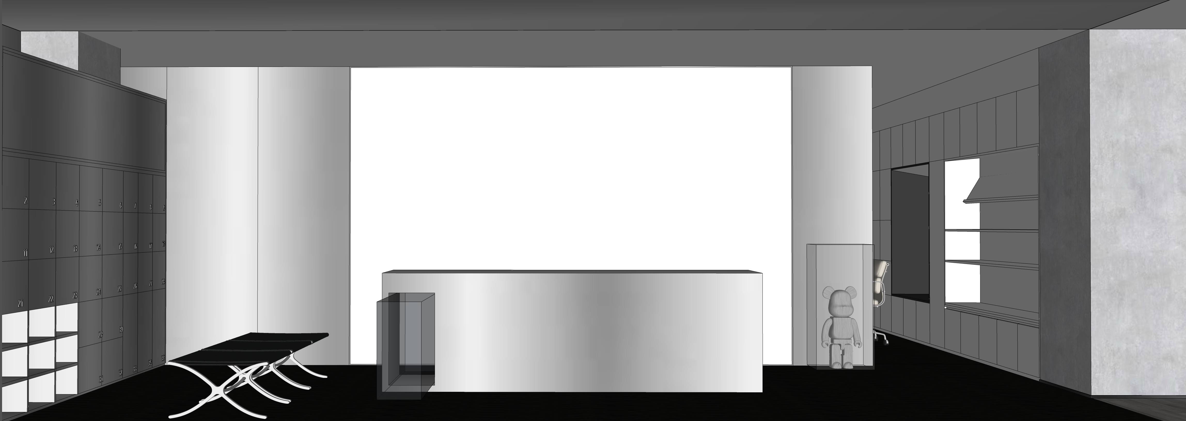 前台区域我们以品牌色“黑”为主题,打造暗调空间。装点品牌灯箱、软膜与LED屏,让明与暗互相冲突,让暗更暗,让明更突出,从而彰显品牌调性。顶部区域则采用不锈钢水波纹,流动的视觉更有设计的态度,同时赋予空间更丰富的层次感。