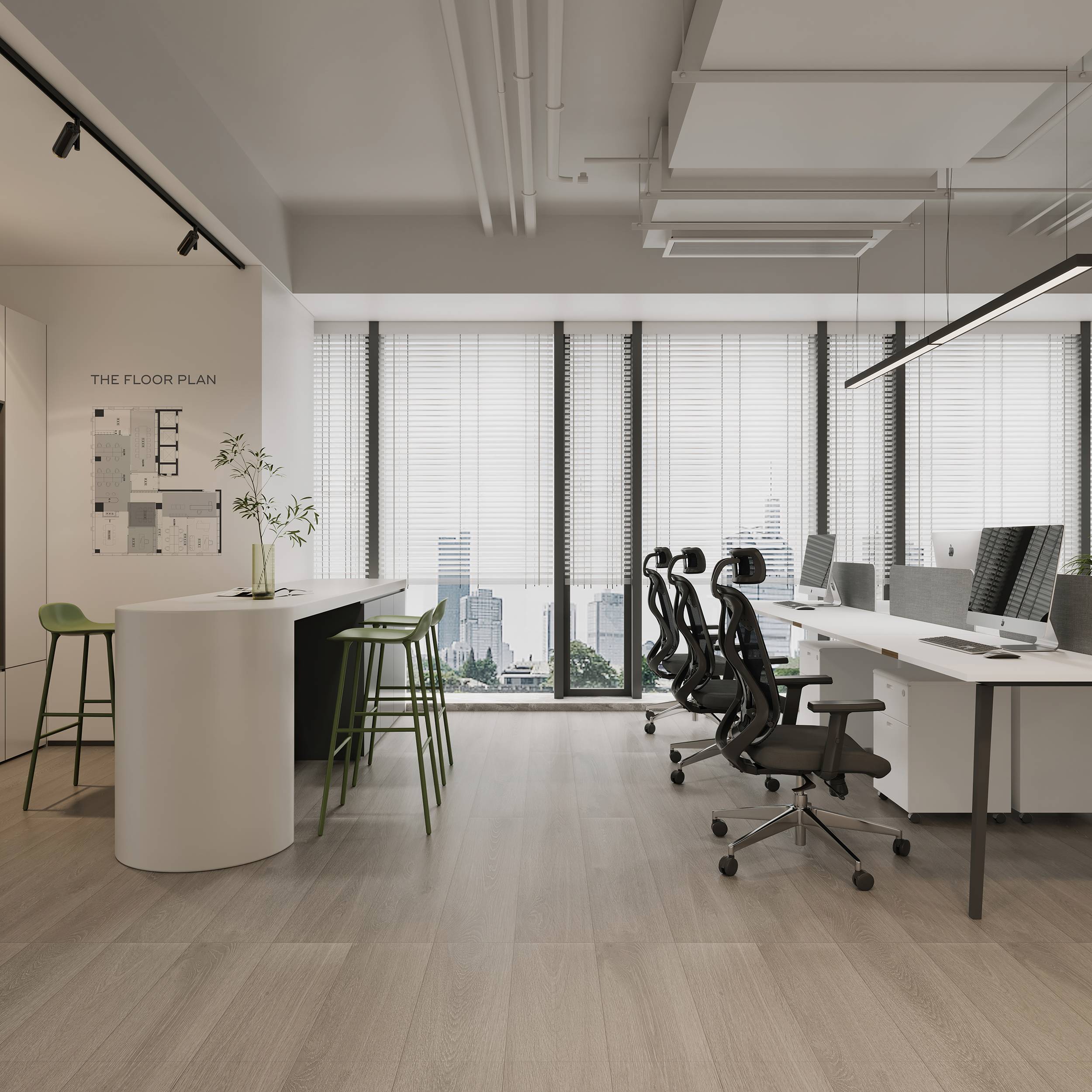 办公室的设计追求最基本的空间需求,保留着利落的线条和简约的结构,整体呈现干净明亮感,没有繁复的装饰,以此保证更高效的工作状态。在区域内设计吧台,可以在繁忙的工作之外稍作休憩,打造一个“工作+休闲”的友好办公环境。