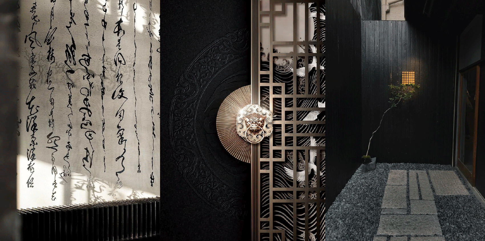 石、青瓦与现代时尚质感的金属、玻璃材质进行碰撞,通过粗框的老旧木质进行过渡,可感知浓郁的东方气息扑面而来,进而使观者浸染其中,沉醉其间。