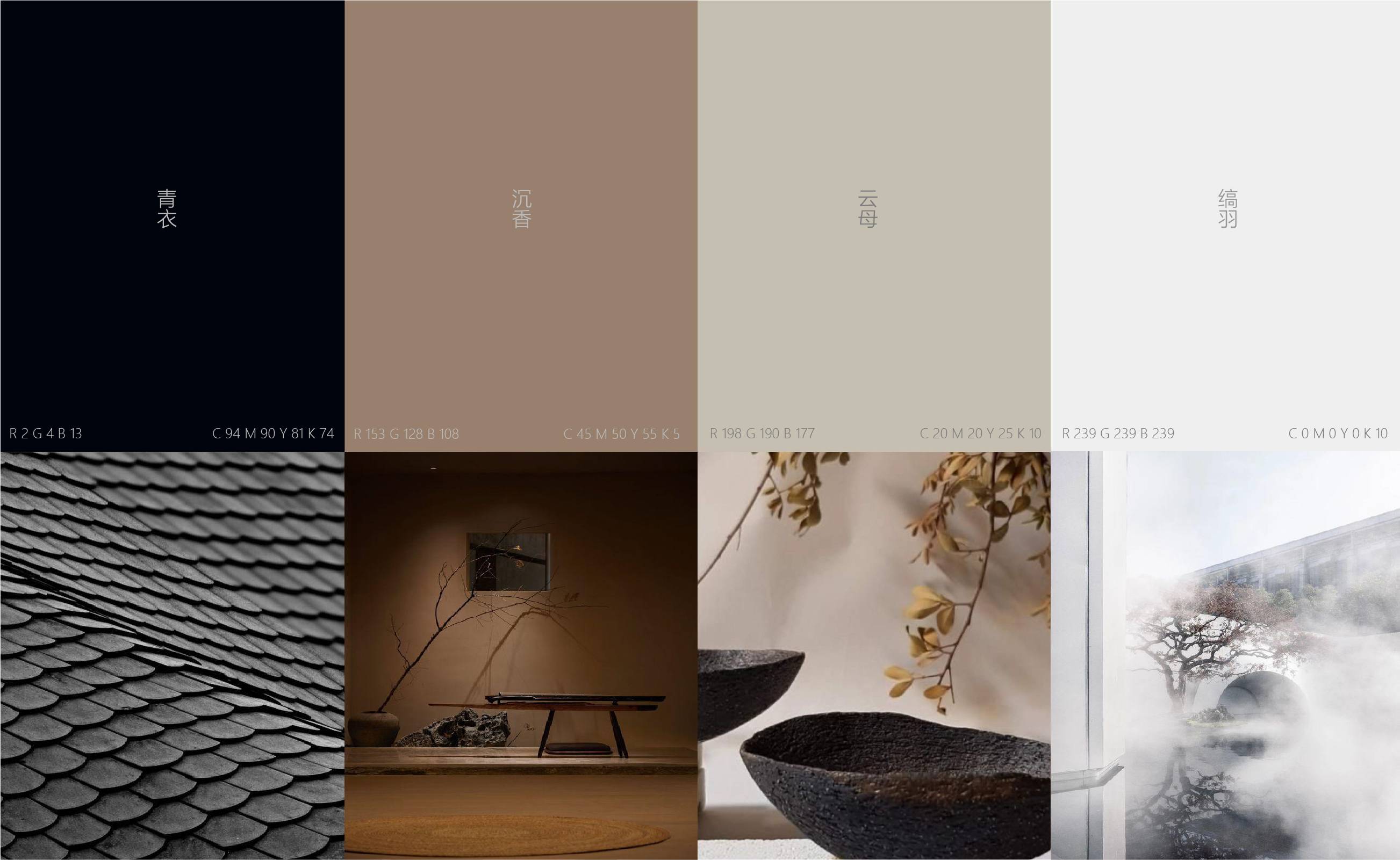 在色彩上,我们以黑色与咖色作为主色,赋予空间含蓄沉稳的格调,同时辅以灰与白这类柔和的色彩,弱化暗调带来的严肃感,由色彩之间的明暗过渡,为空间营造东方雅致的意境美。