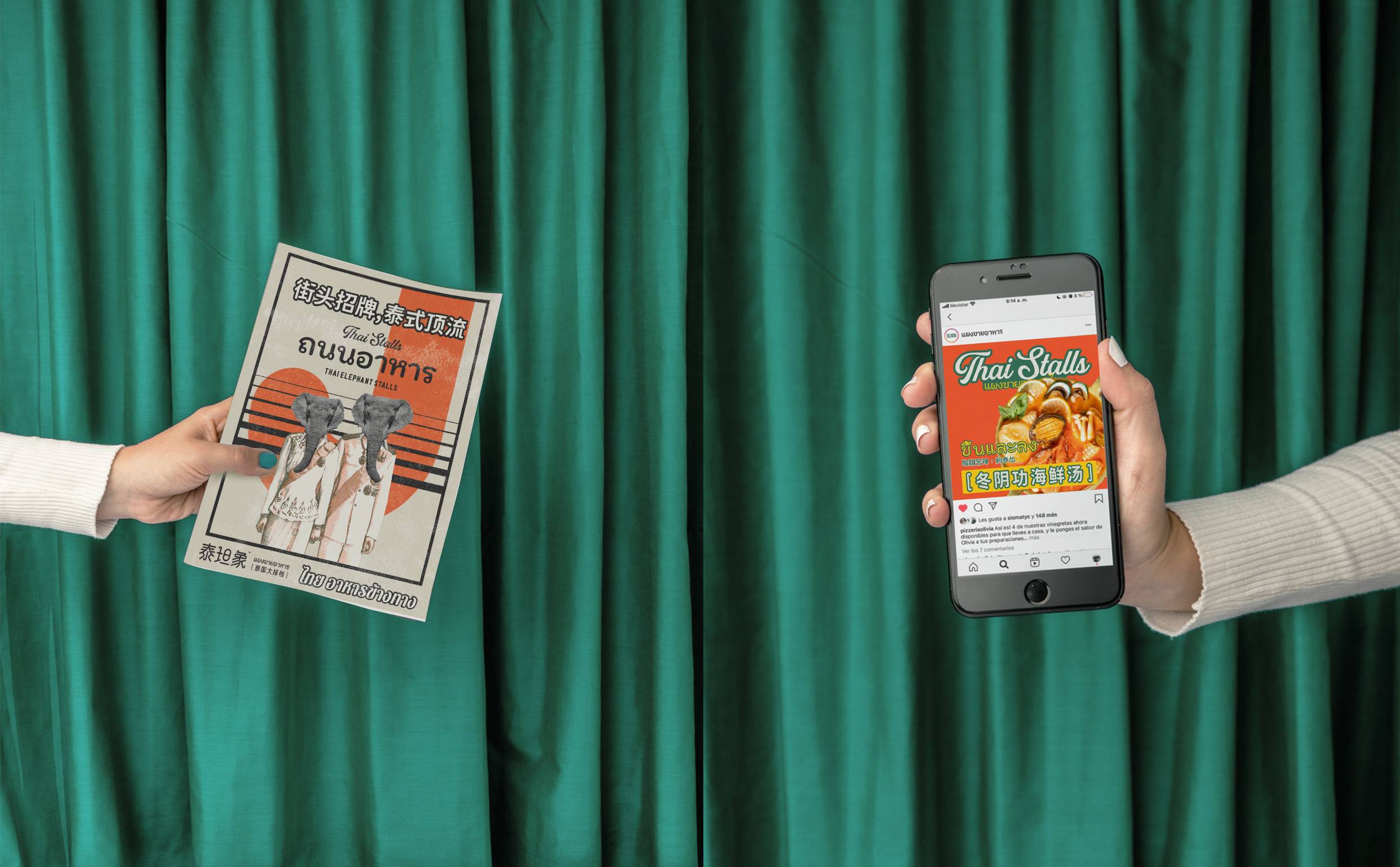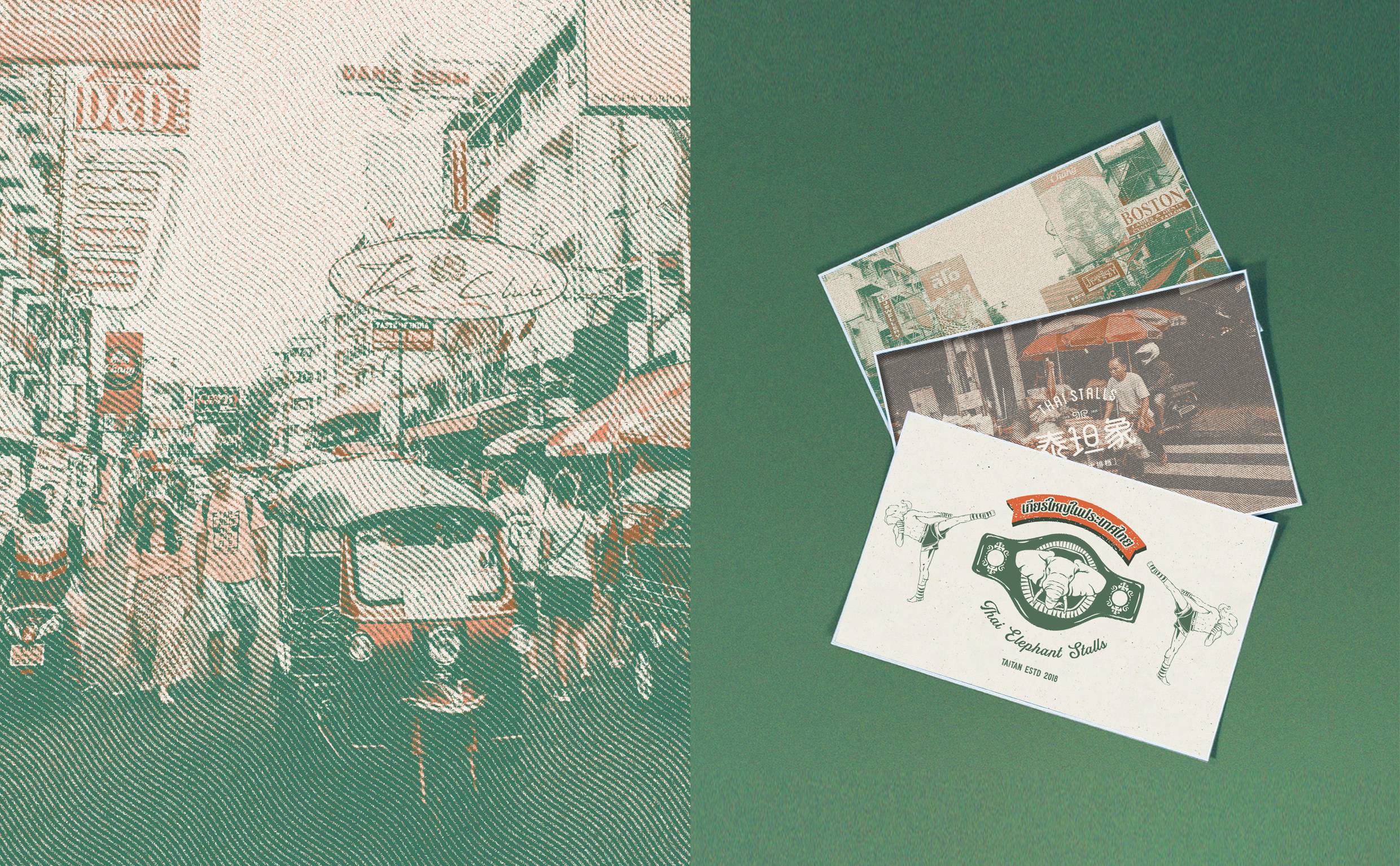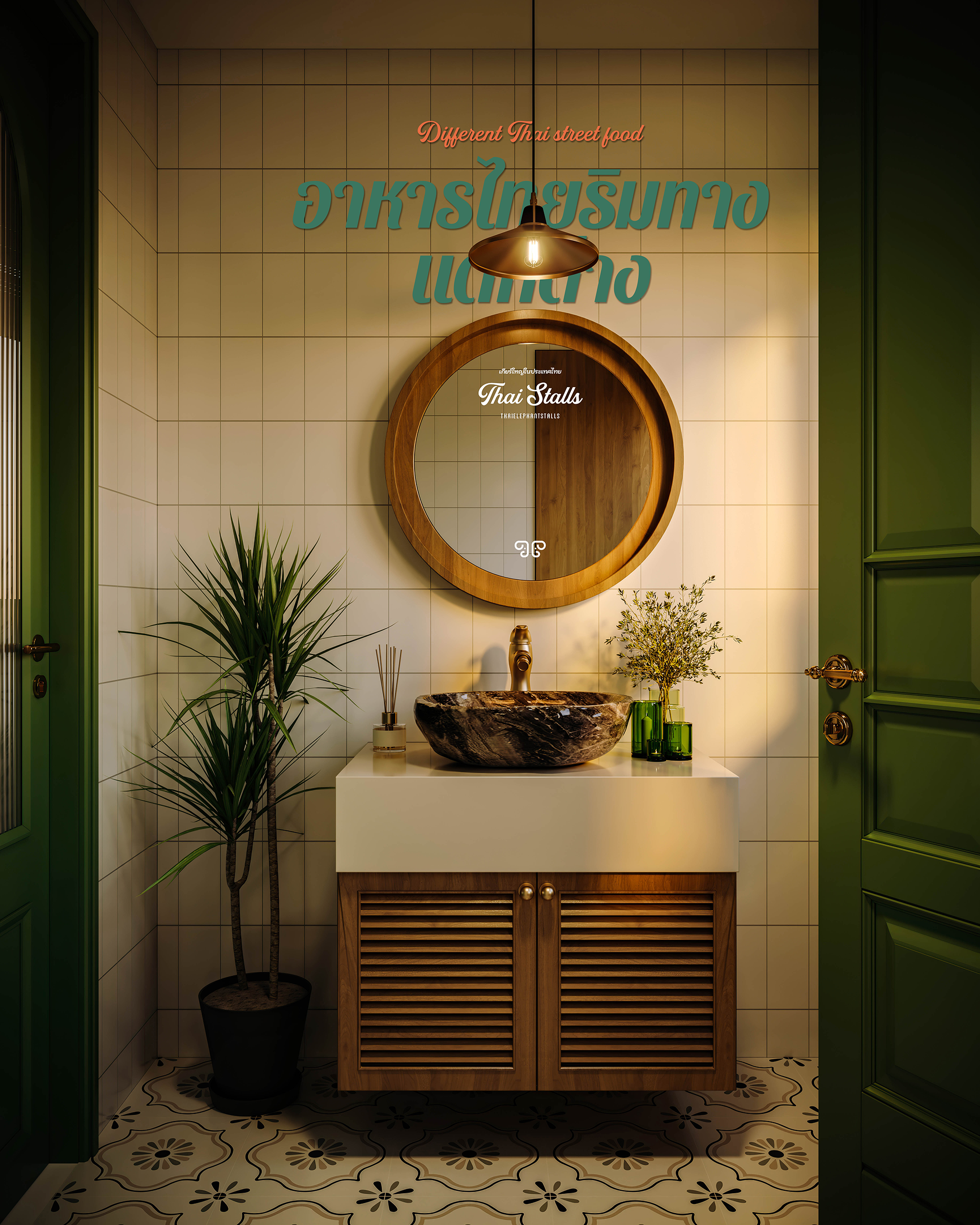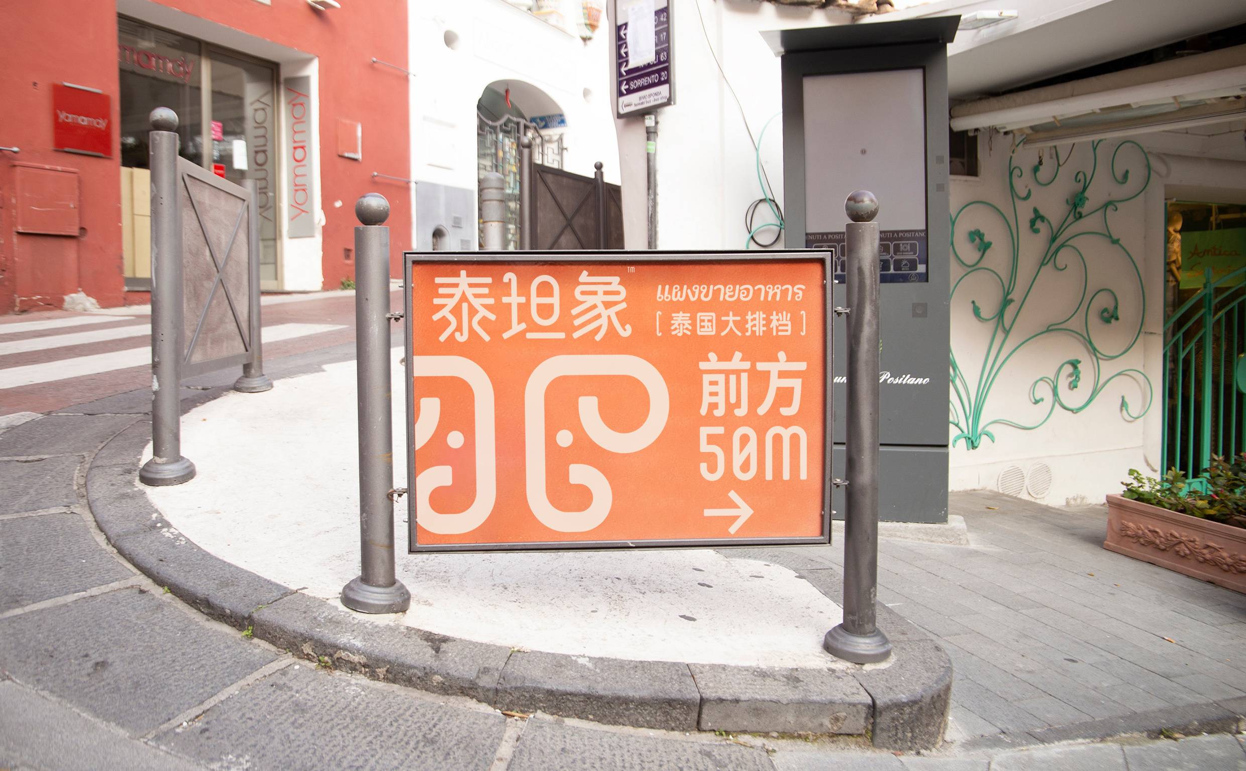 木材是门头设计的主要要素,结合泰式房屋结构元素,打造舒适自然的泰式风情。露天设置外摆,搭配绿色突突车以及特色招牌、海报,热闹但不拘谨的泰国街头瞬间展露在眼前。