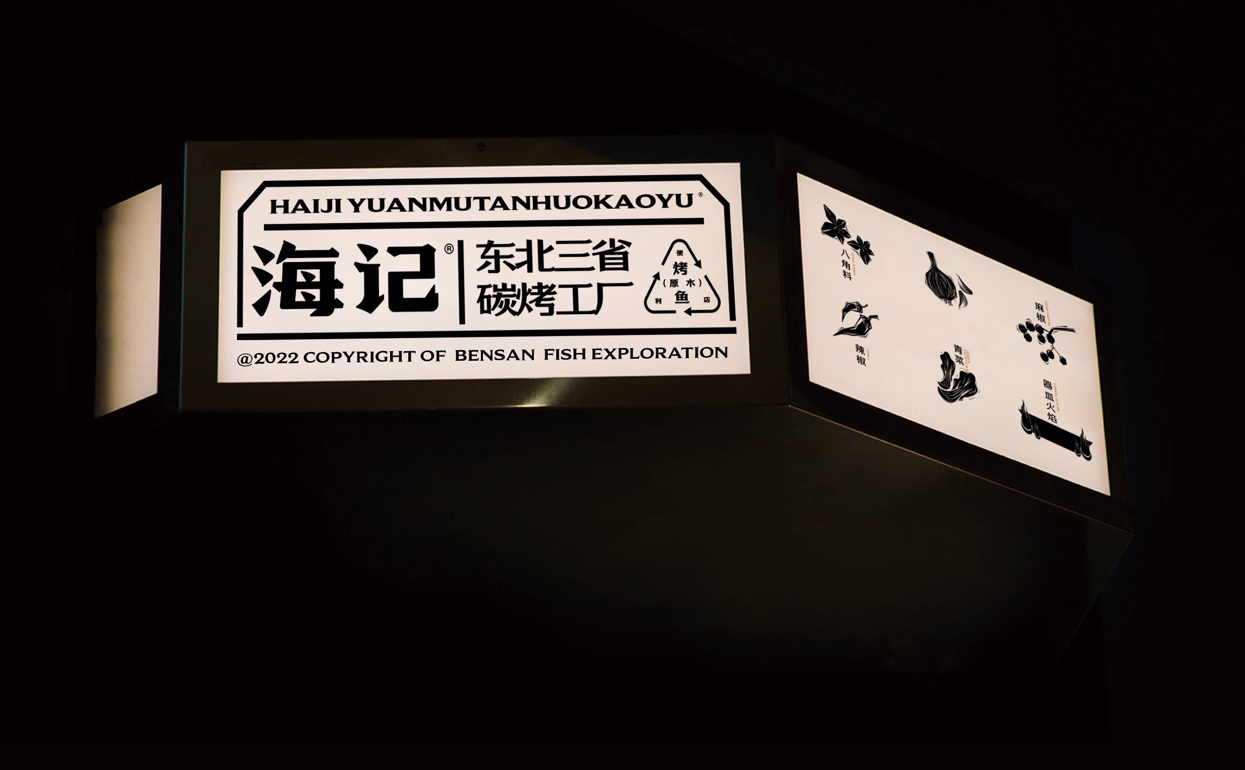 面对竞争激烈的烤鱼市场下,缺乏核心记忆点的品牌是无法胜出的。因此,我们基于食材、制作、环境等多方面对海记进行调研,最后以“原木炭烤”作为品牌升级的核心贯穿始终。我们重新定义品牌为“原木烤鱼新标杆”,并着重传达品牌“坚持把一道烤鱼做好”的工匠精神。
