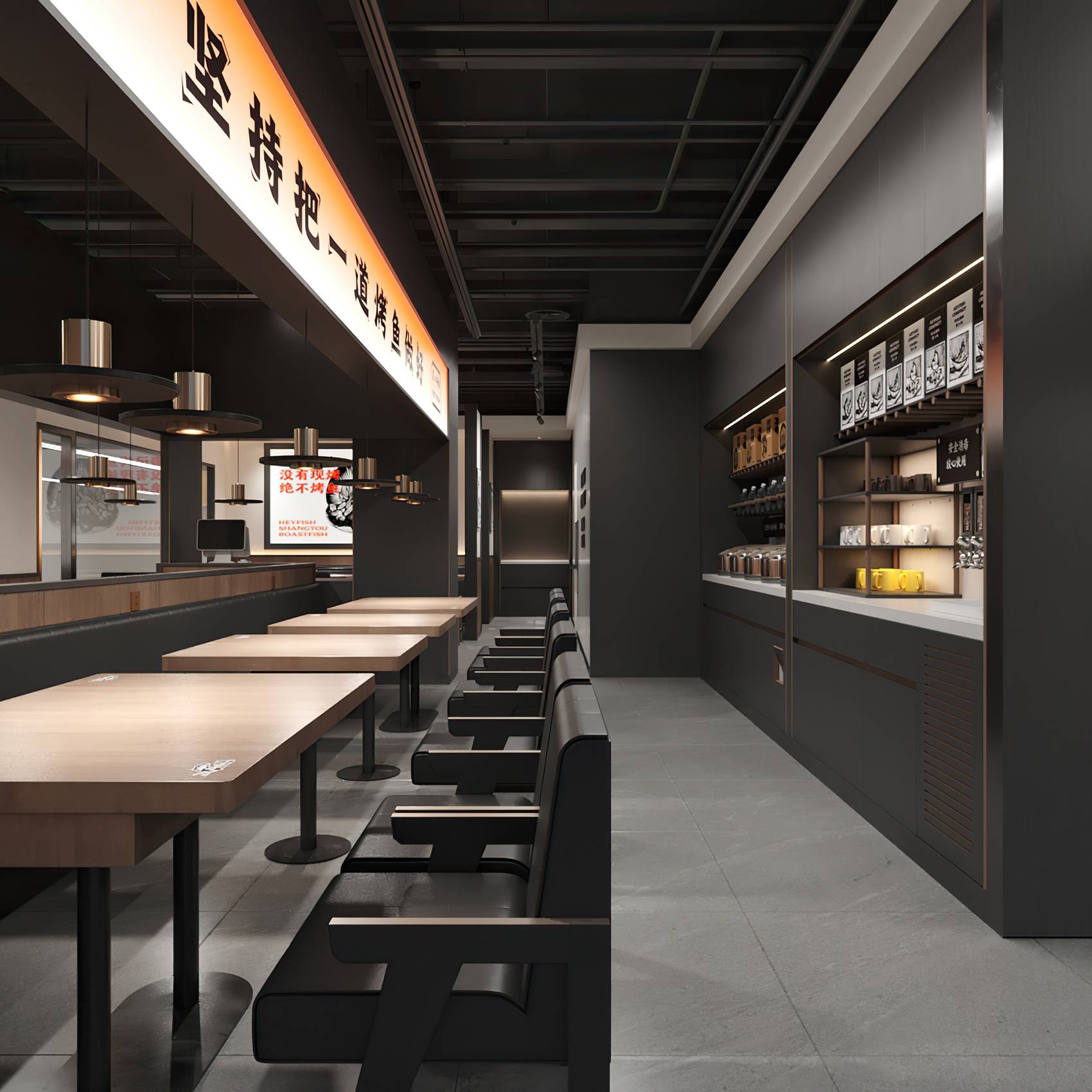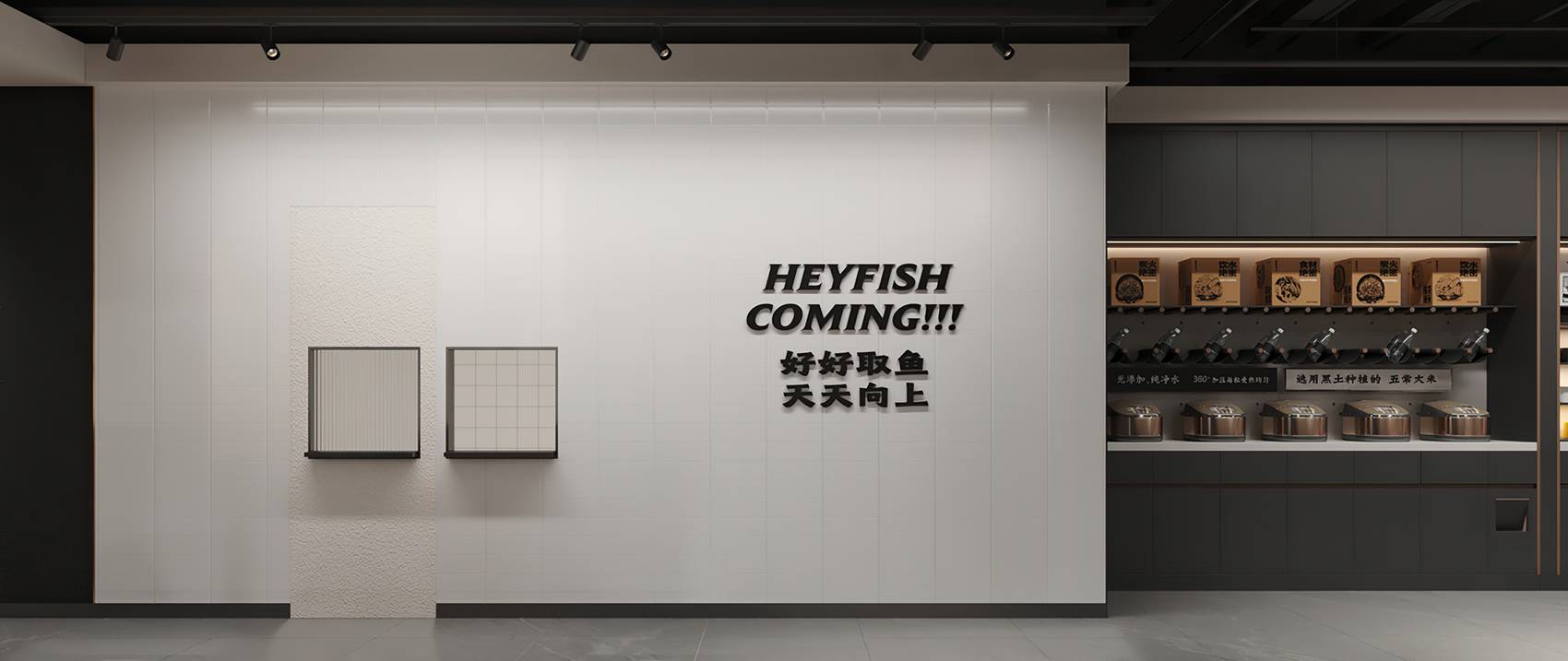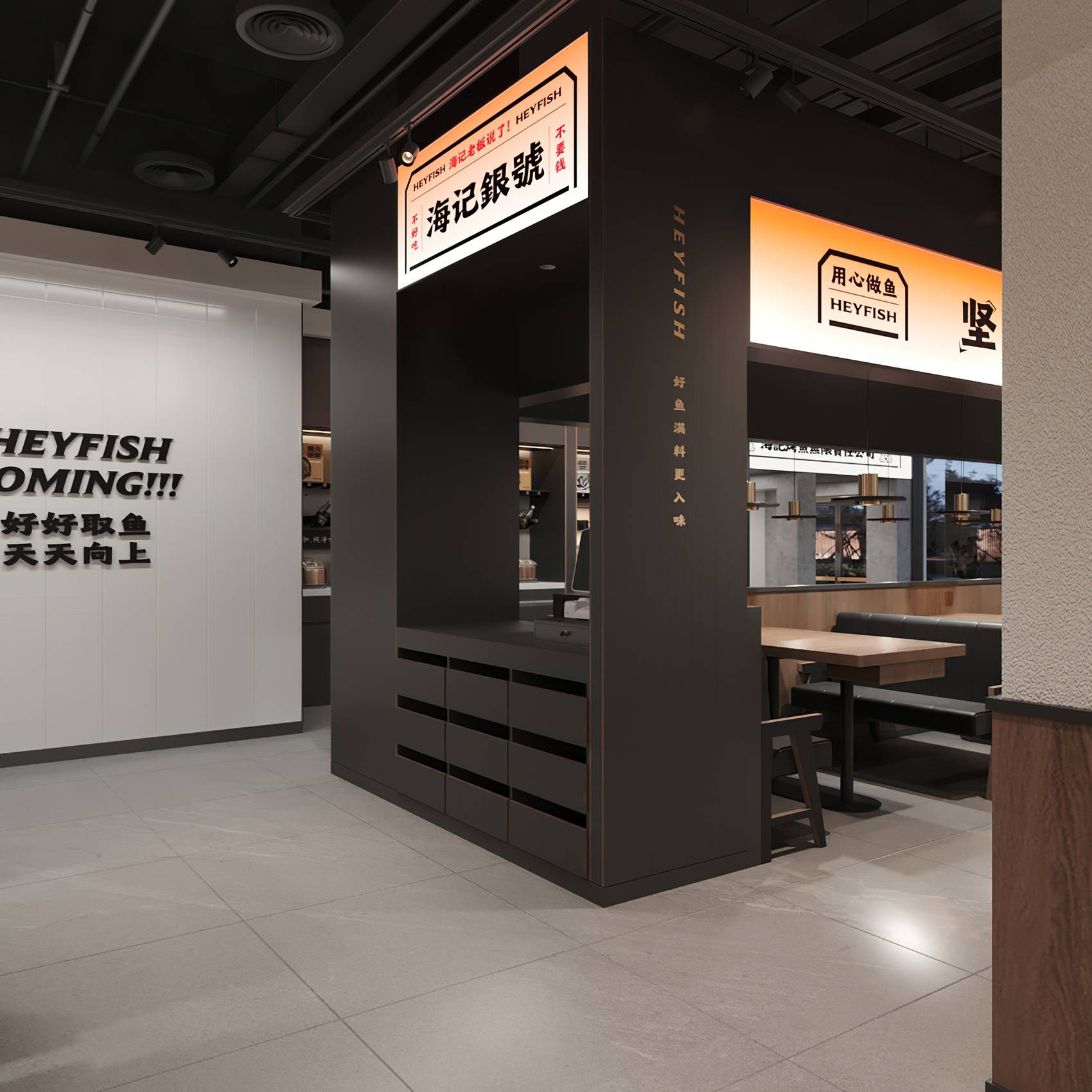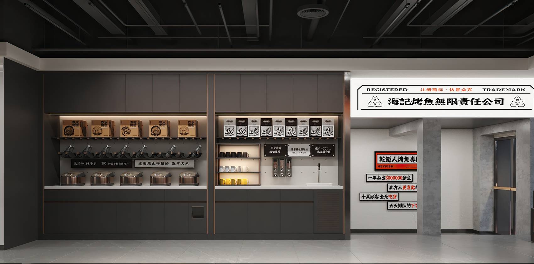 为了使海记更具影响力与吸引力,我们将场地合理划分,设置出一个小空间作为打卡区域,偏工业风的灰色空间,突出充满个性化文字标语,感受品牌文化的同时,赋予空间年轻活力,从而激发顾客更多的分享欲。