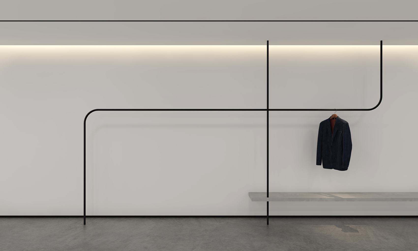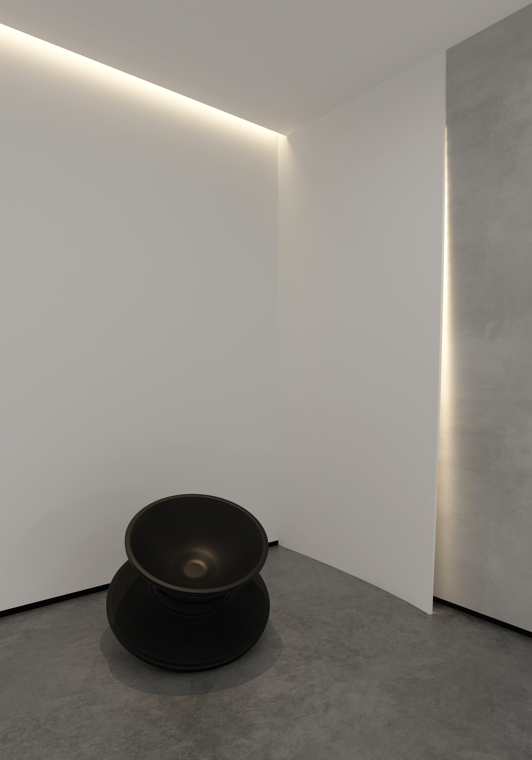 我们延续品牌经典,突破传统展厅陈列方式:通过结合智能灯光系统,去感应行走与停留的状态而变换灯光的明暗、层次、色温, 使整个空间具有不稳定且极富运动感的形态倾向。