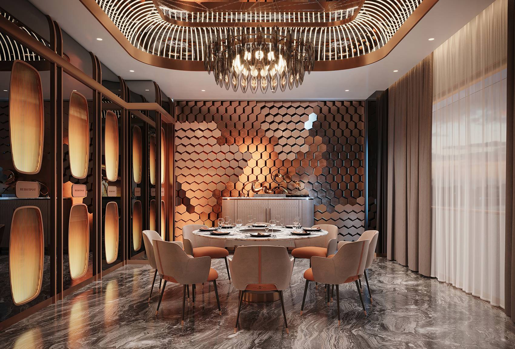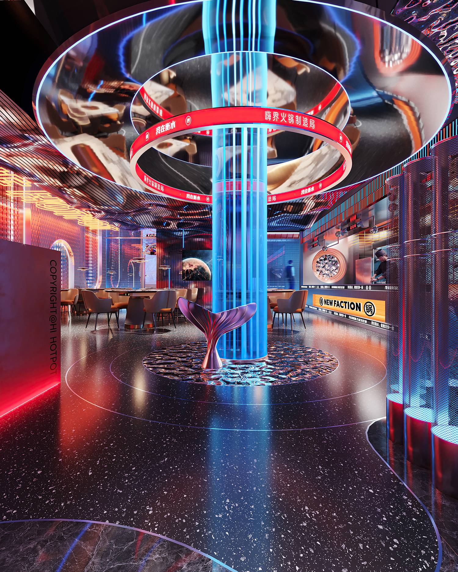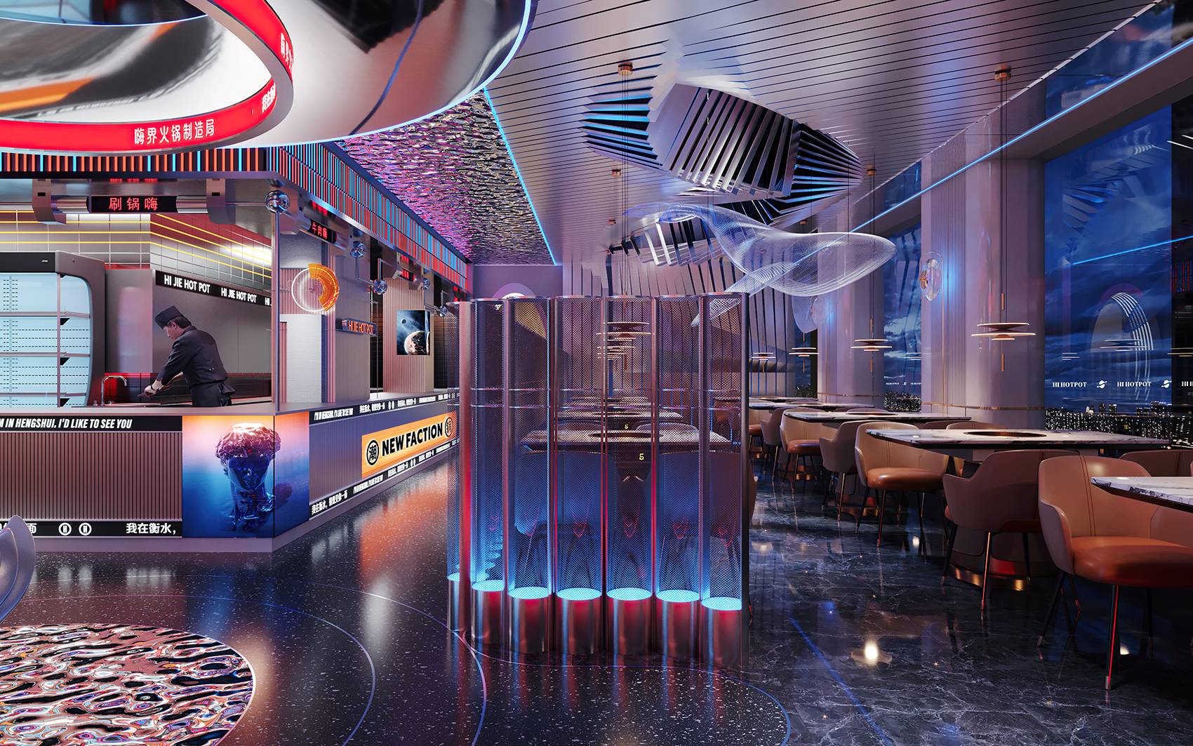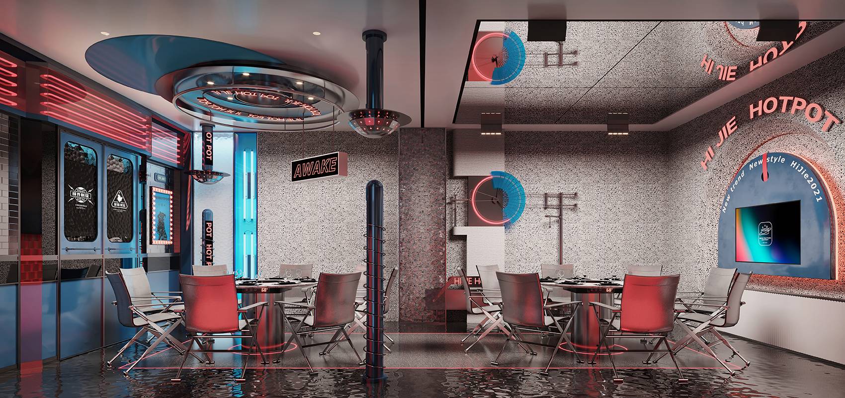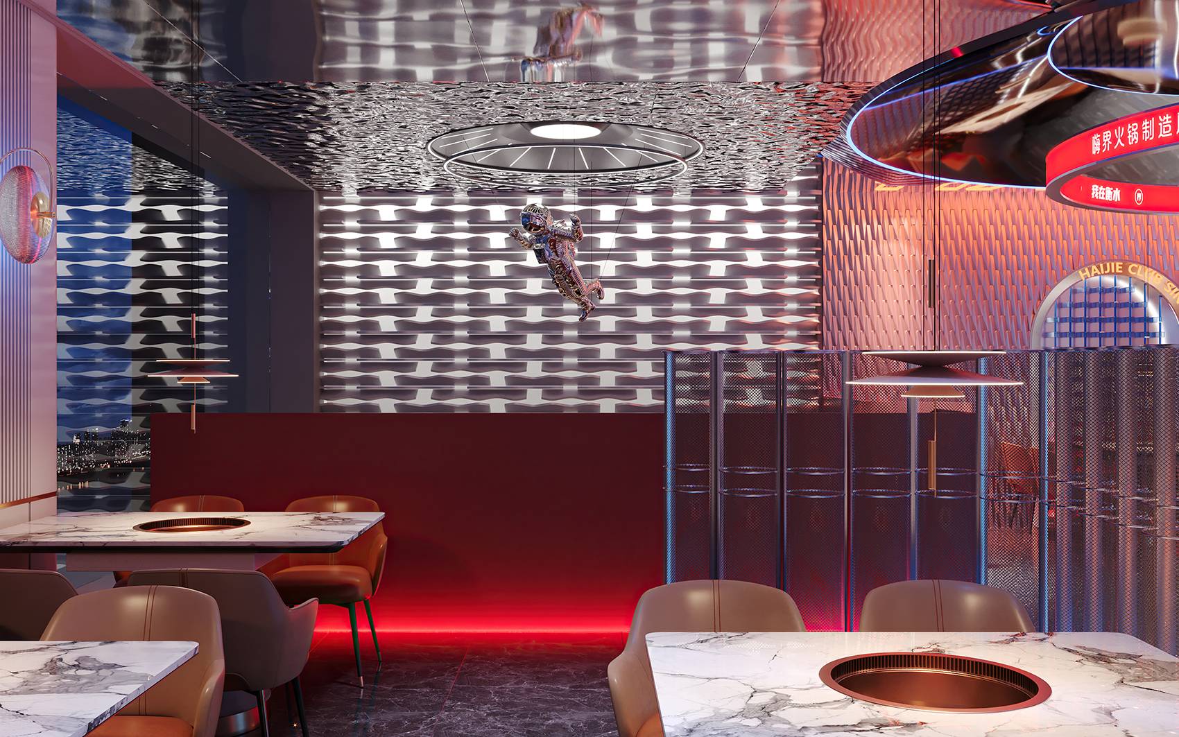 嗨界,精致现涮火锅料理,致力于通过五感俱全的飨宴空间,呈现格调非凡的锅物美学。通过设计艺术的精致表达和新潮元素的点睛混搭,嗨界探索出了一条独具特色的川味火锅创新再造之路。颠覆传统火锅的固有标签,将设计美感贯穿每一处细节中,让每一次就餐都暗藏惊喜。