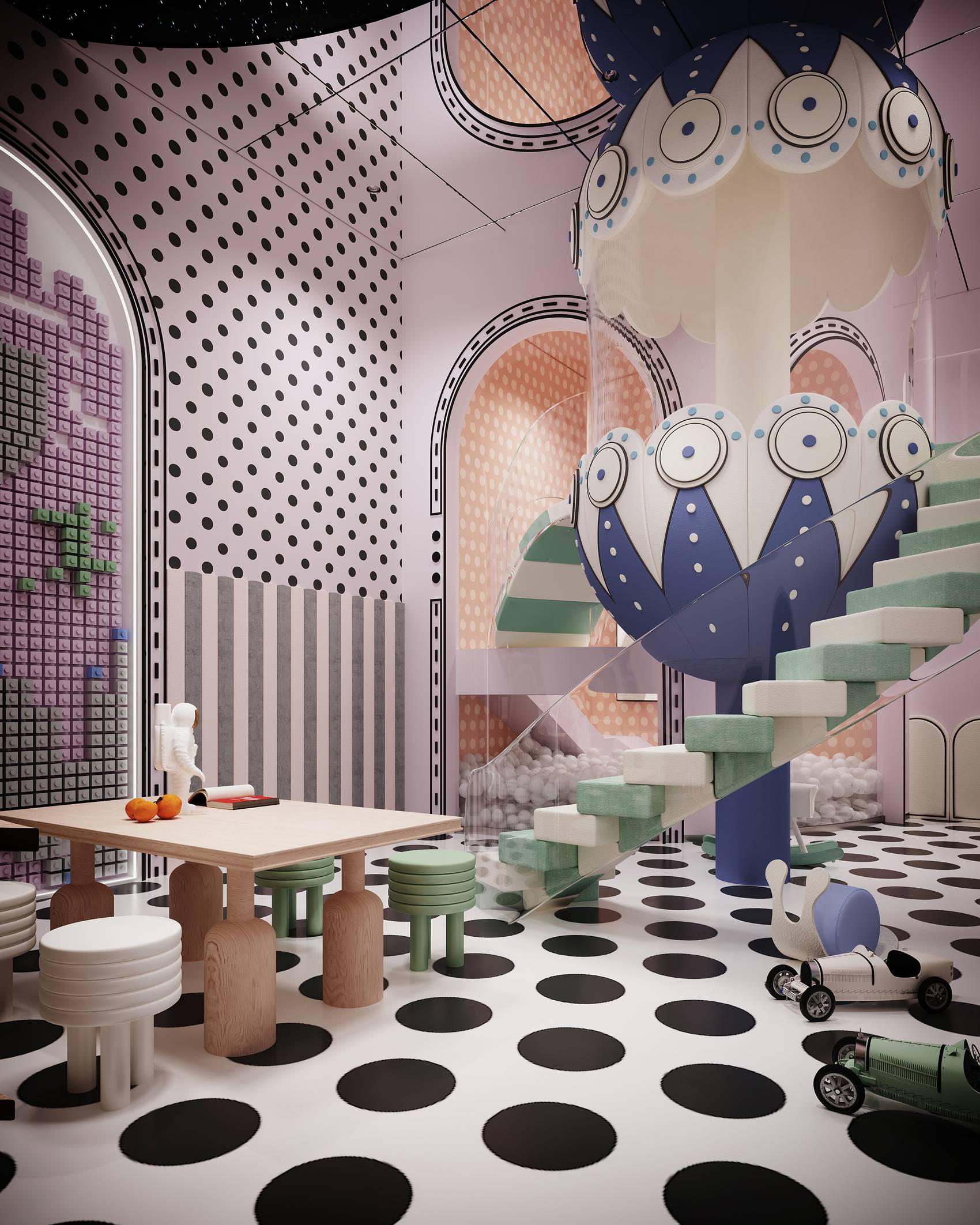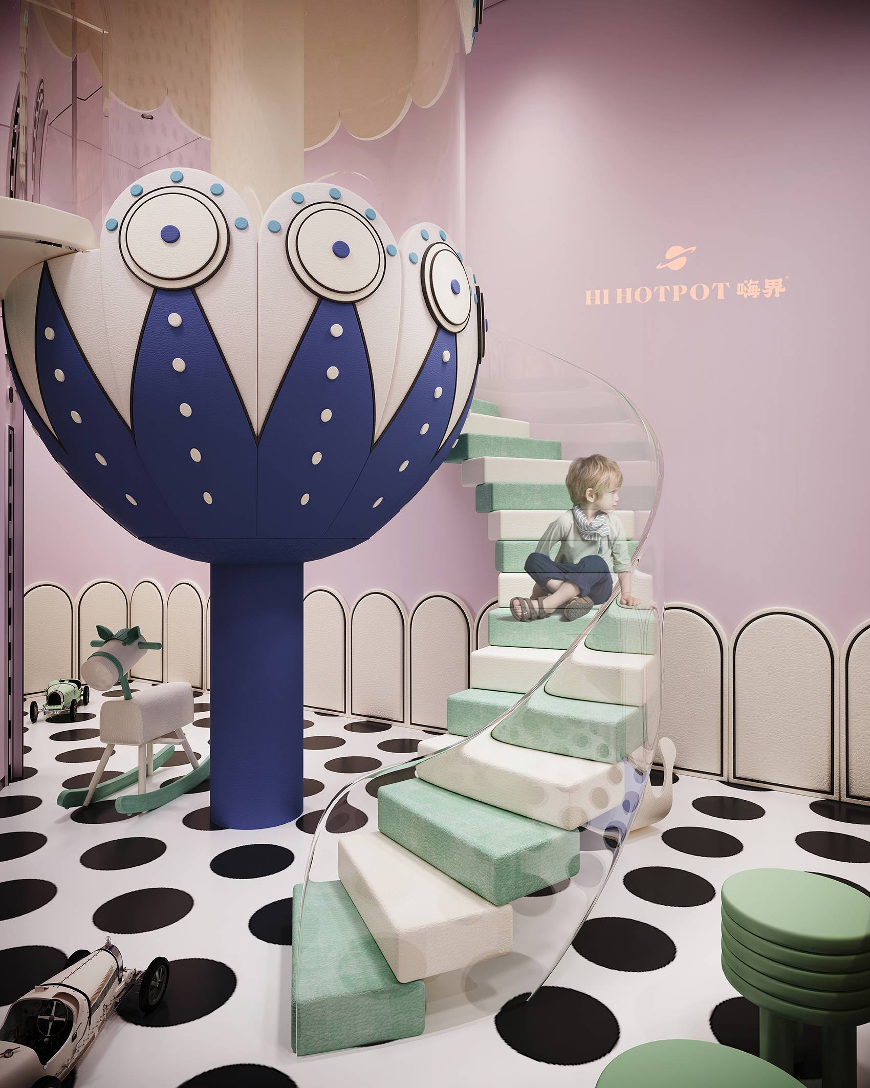 儿童区域犹如爱丽丝仙境一般,模糊了幻想与现实的界限,云朵滑梯、书香宇宙、梦幻雨屋,超脱现实的童真设计,满足孩童探索的欲望和奇幻的体验。