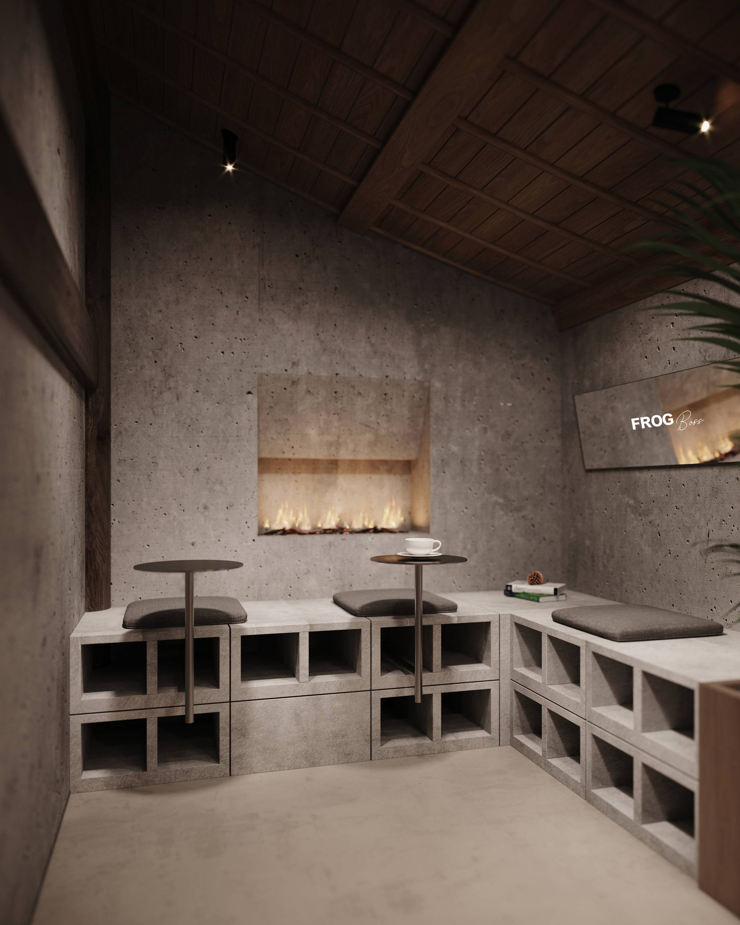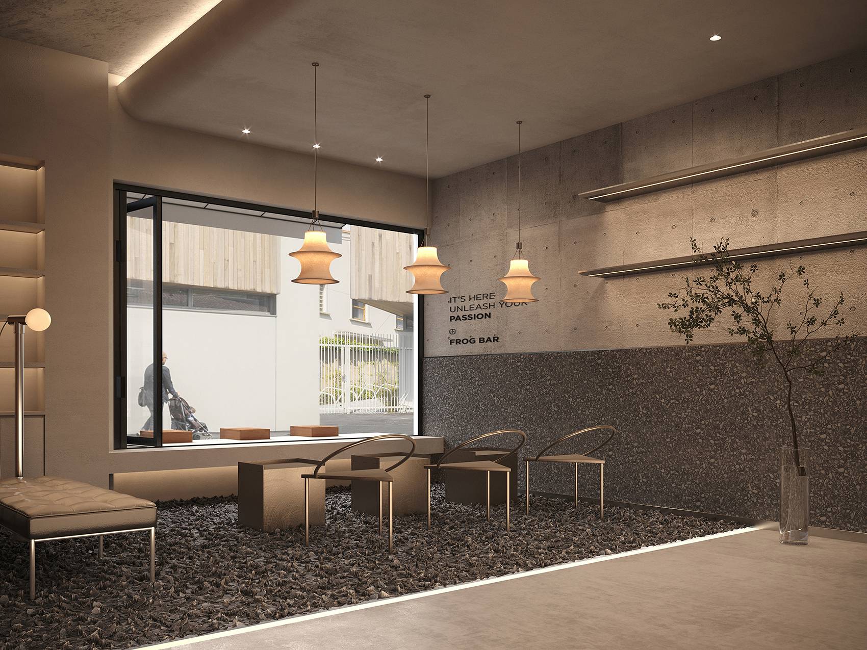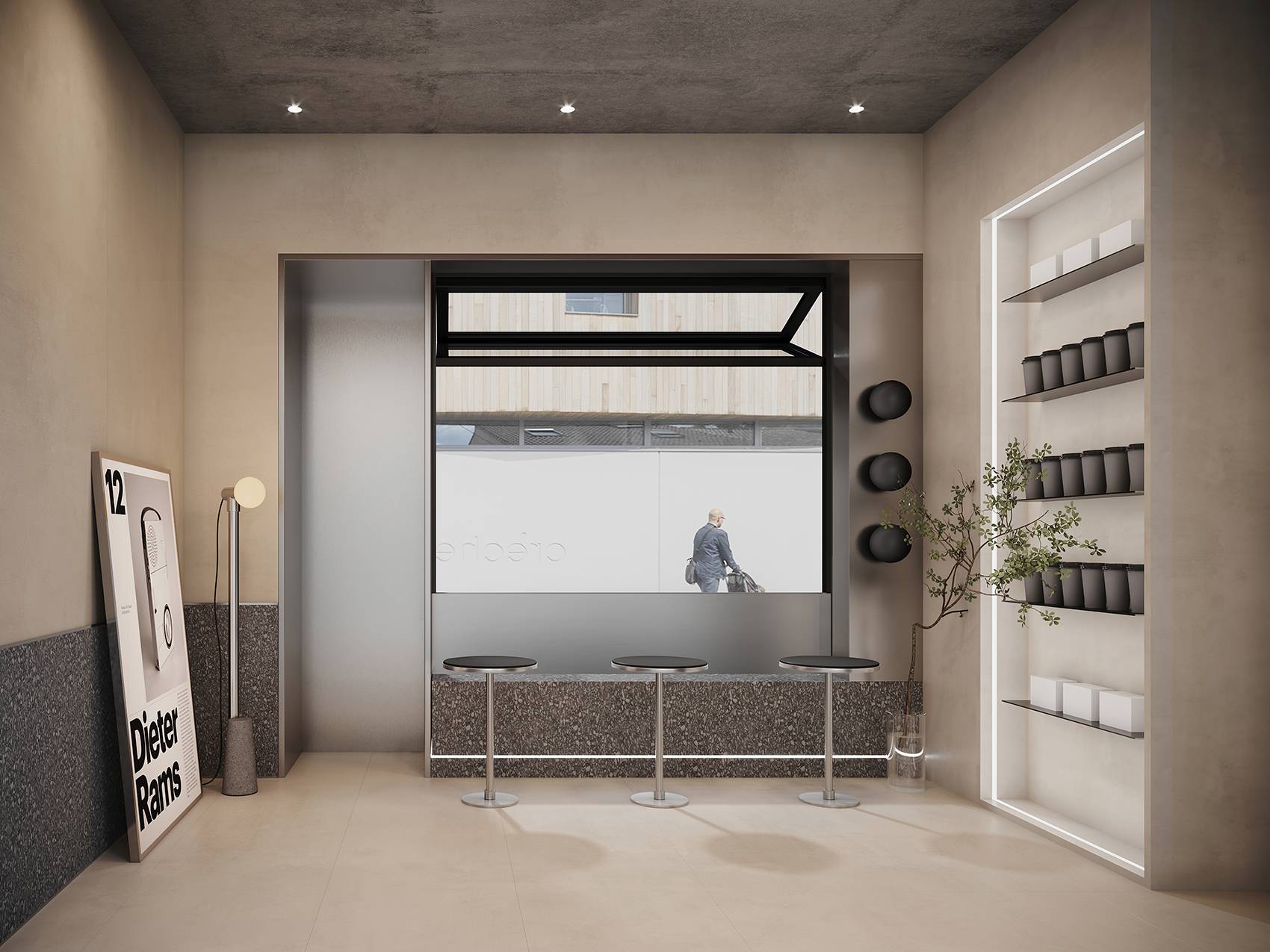 在简单的设计中,门头依旧充满了质感。在窗口处安排了休息座,在折叠窗打开时,它是内部空间的延伸;在折叠窗关闭时,它又是独立的,巧妙的设计增加了空间的变化。