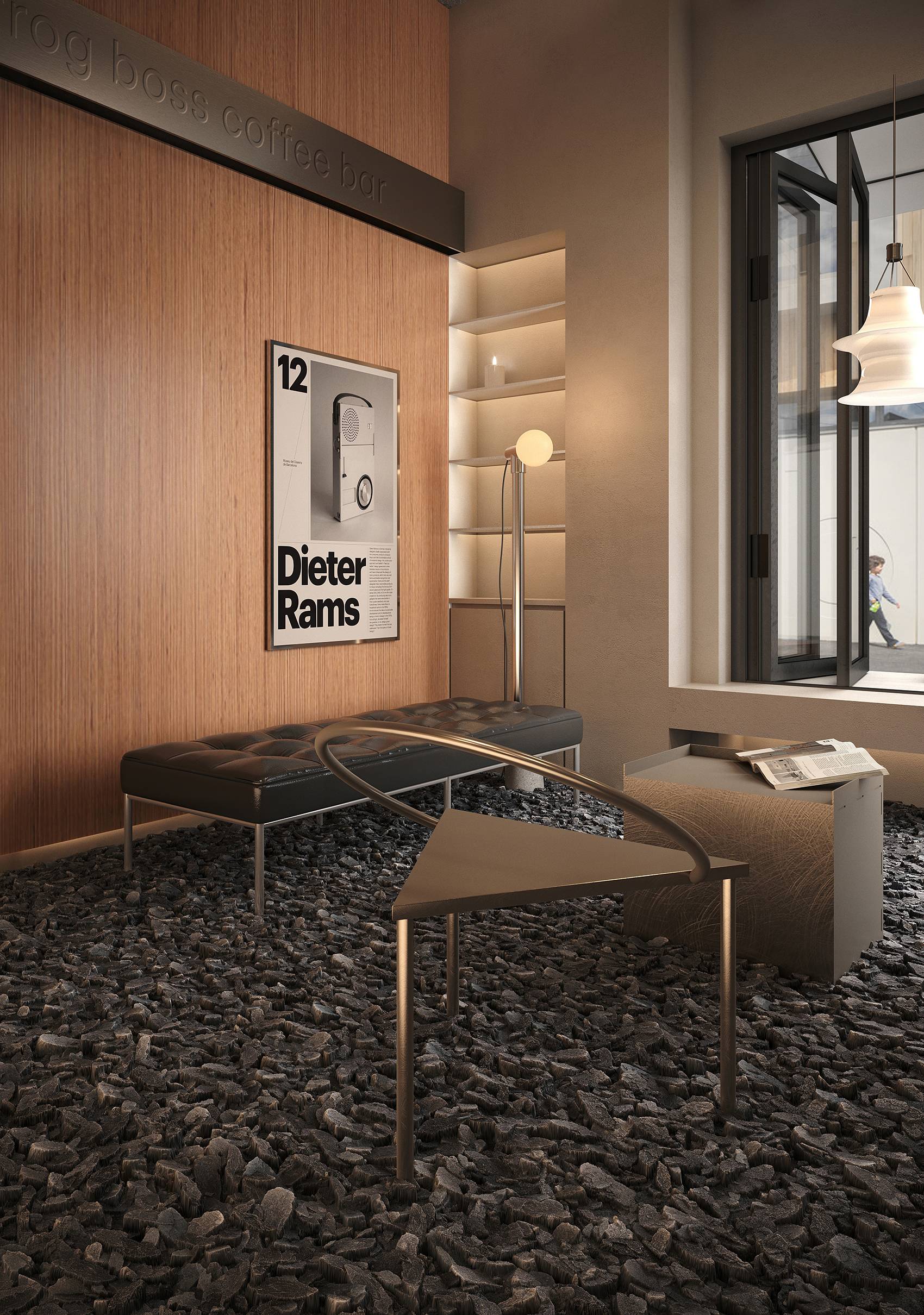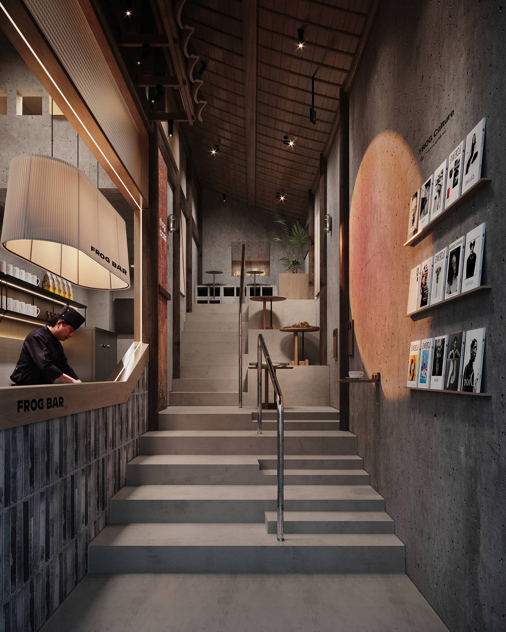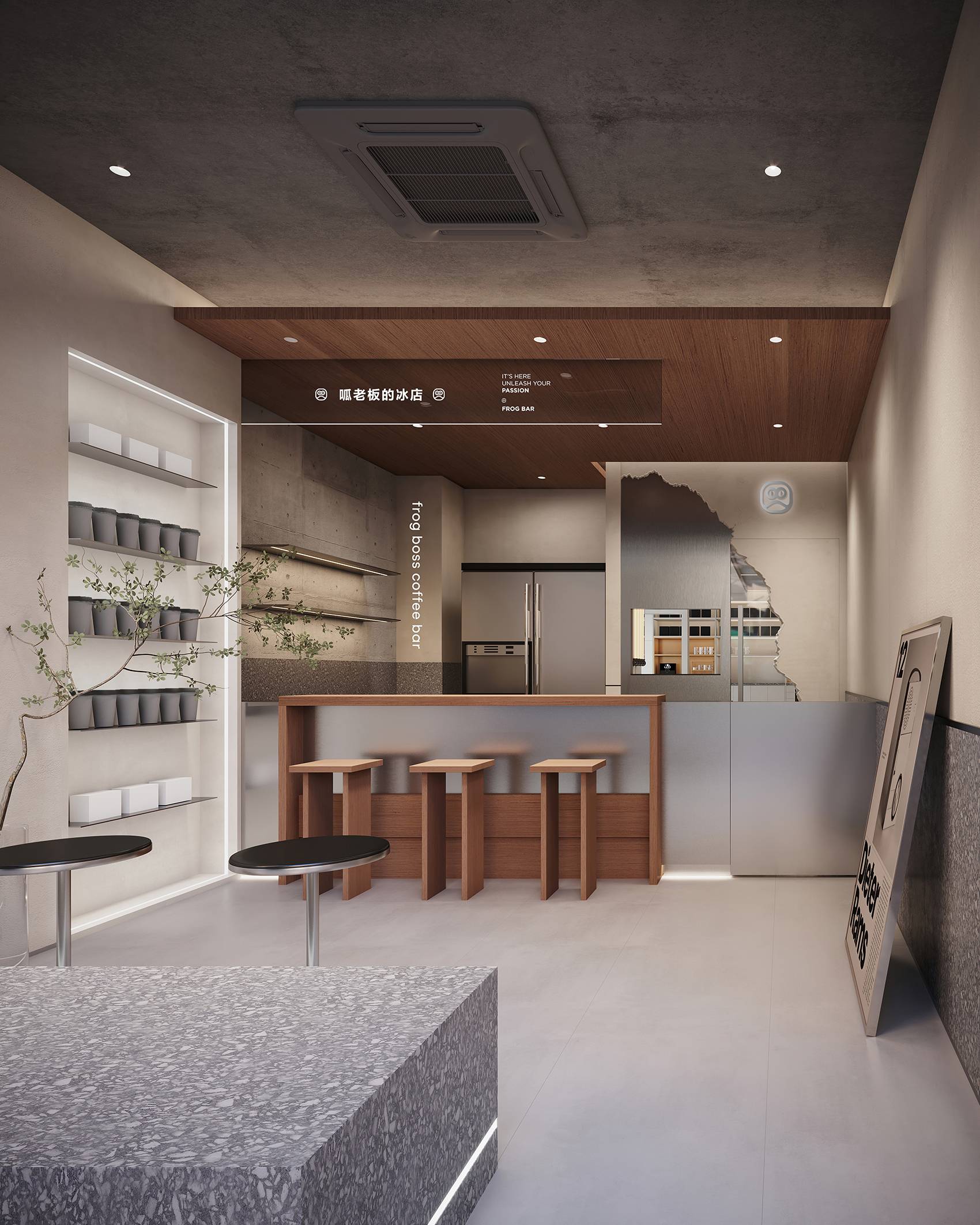 我们选择了混凝土和水洗石作为重要的空间材质,利用其粗粝质感结合银质金属打造个性的工业风格,并在其中融入温暖的木材,硬朗与温和的碰撞中和,形成差异化,丰富空间层次。不同的门店采用不同配比的材质,延续相似特质的同时,加入其他材质,如砖块、不锈钢、瓦片、玻璃等,呈现区别化的风格,给予消费者多变的空间体验。