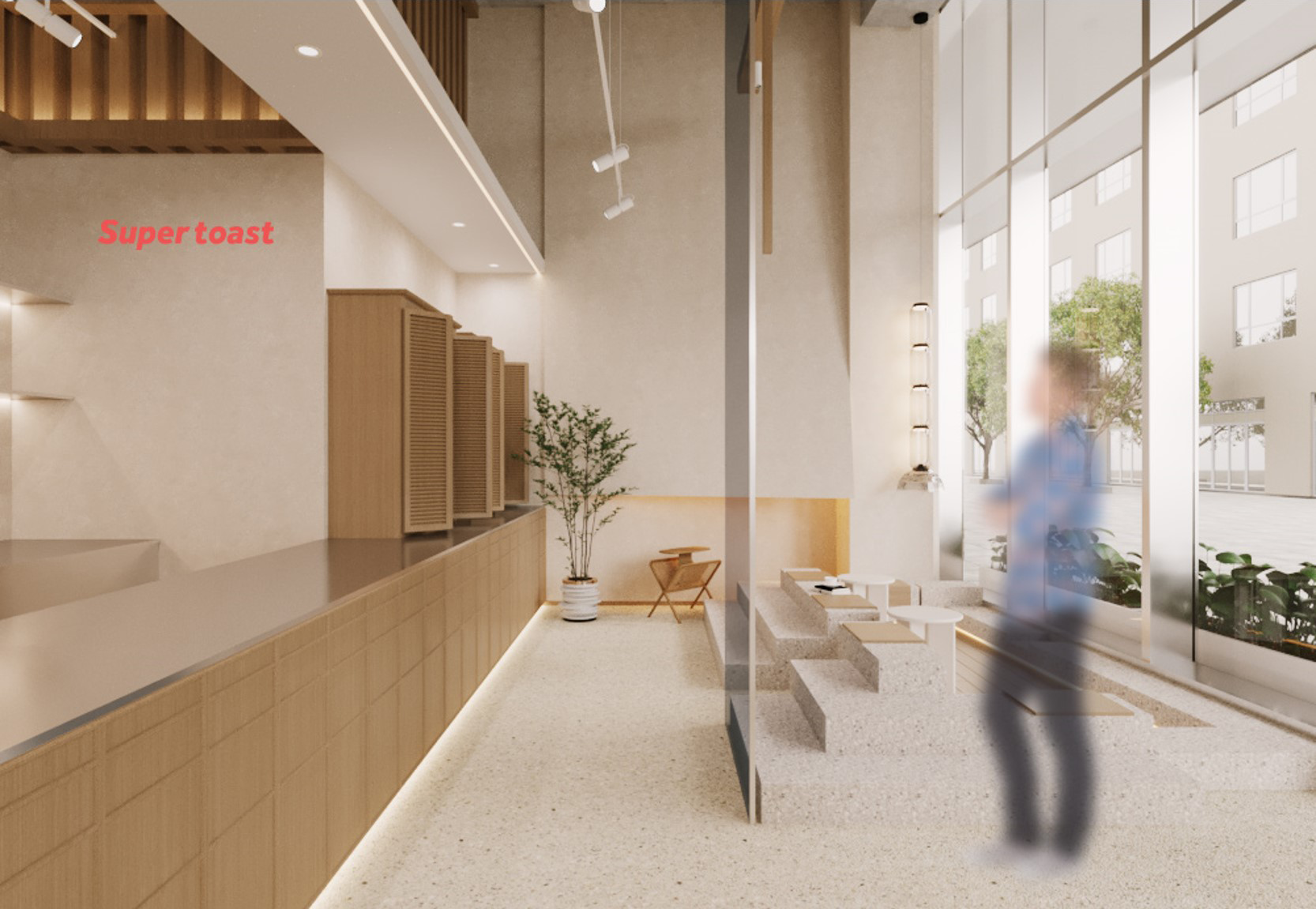 主要材质:水磨石砖、木饰面、艺术漆、亚克力