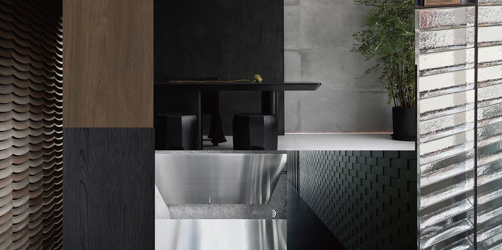 在空间的材质上,设计师秉承对气氛营造、极致品味的追求,经过反复推敲,主要以黑胡桃木和胡桃木为主,搭配上青石砖和屋檐瓦片,低调沉稳,很有历史的底蕴厚重感,人身在其中,立刻就能感受到古代情景的再现。同时拥有现代气息的不锈钢金属和玻璃砖,不仅增加了空间的层次感,还柔和了沉重感,多了几分明快和时尚感,给予更丰富的用餐体验。