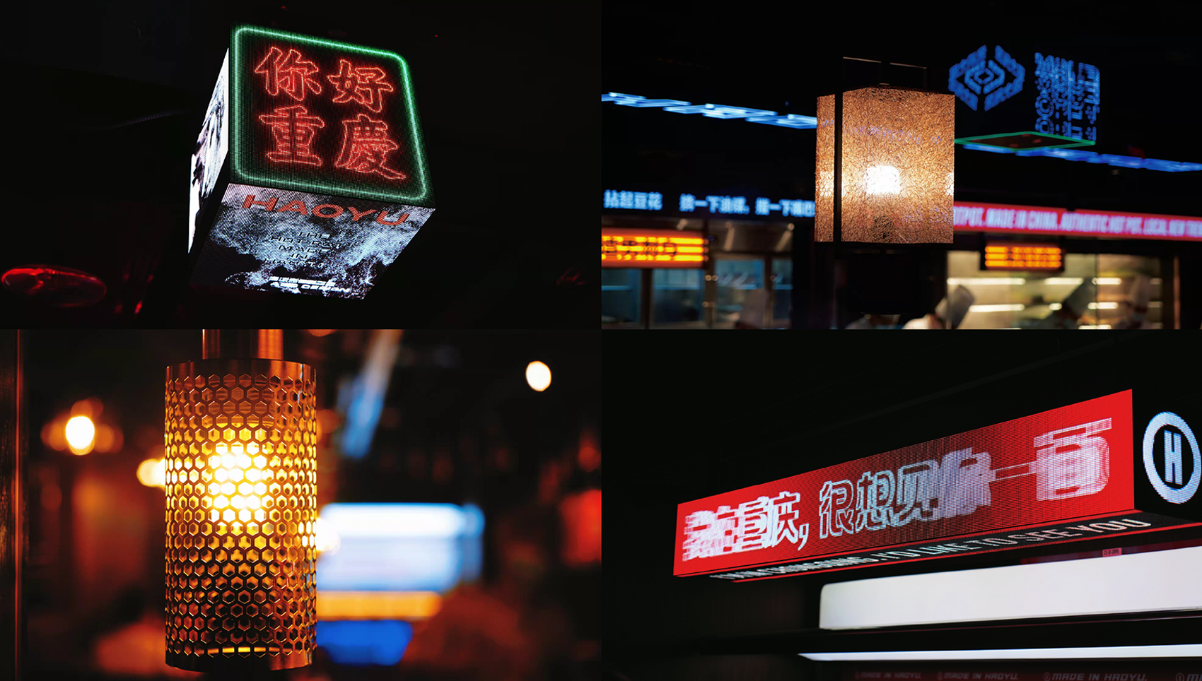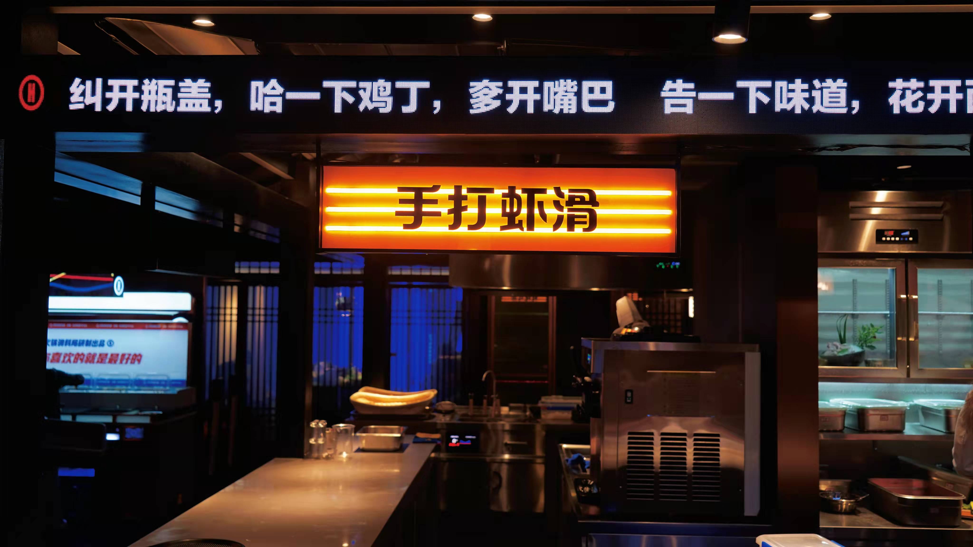 门头前的地面、招牌,均使用了LED屏,变幻莫测的动态设计赋予了门店炫酷的动感,亮眼独特的视觉效果,最大限度地展现豪渝火锅的品牌形象与定位。