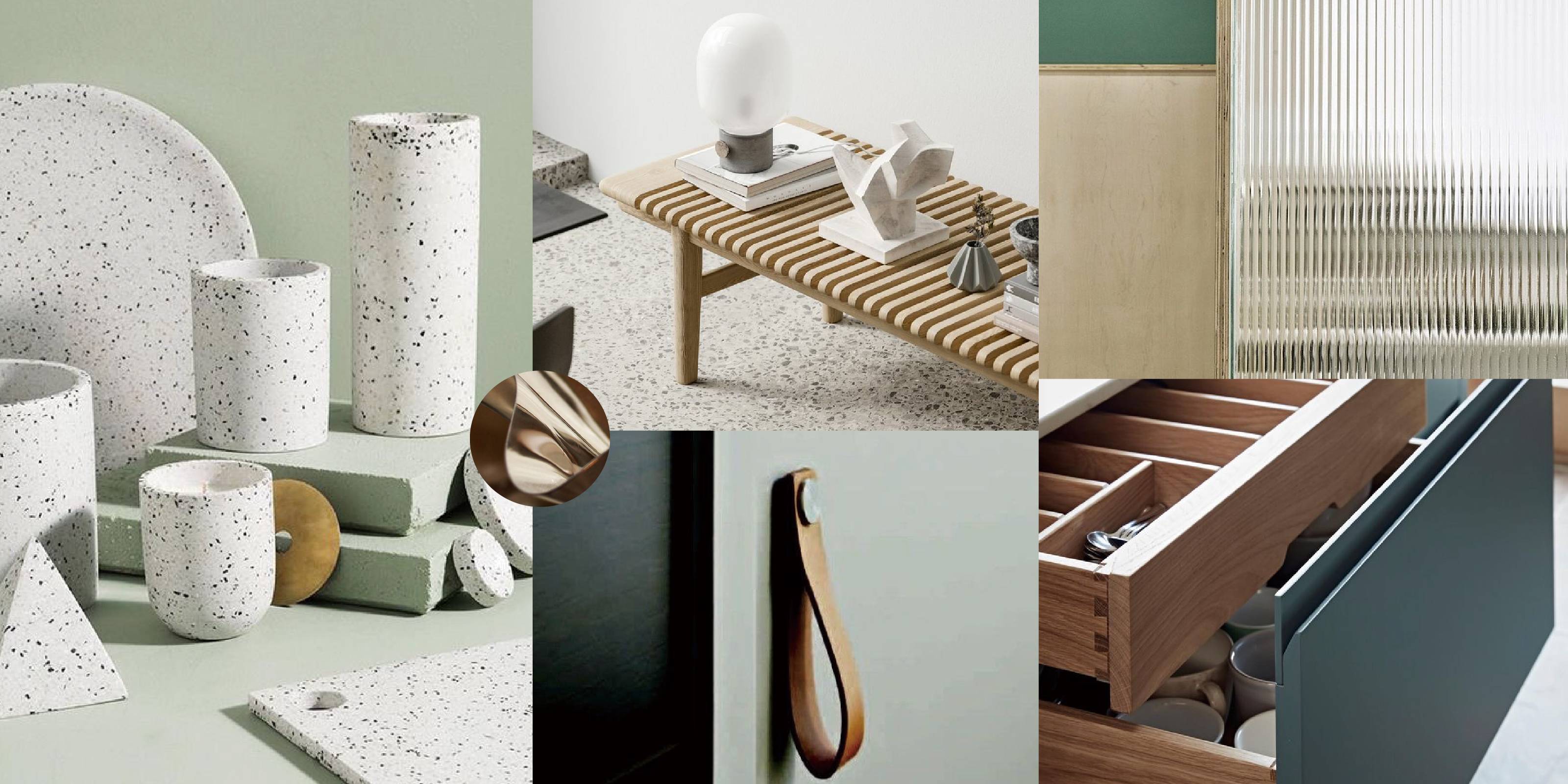 Main Materials: Stainless Steel, Wood Veneer, Terrazzo