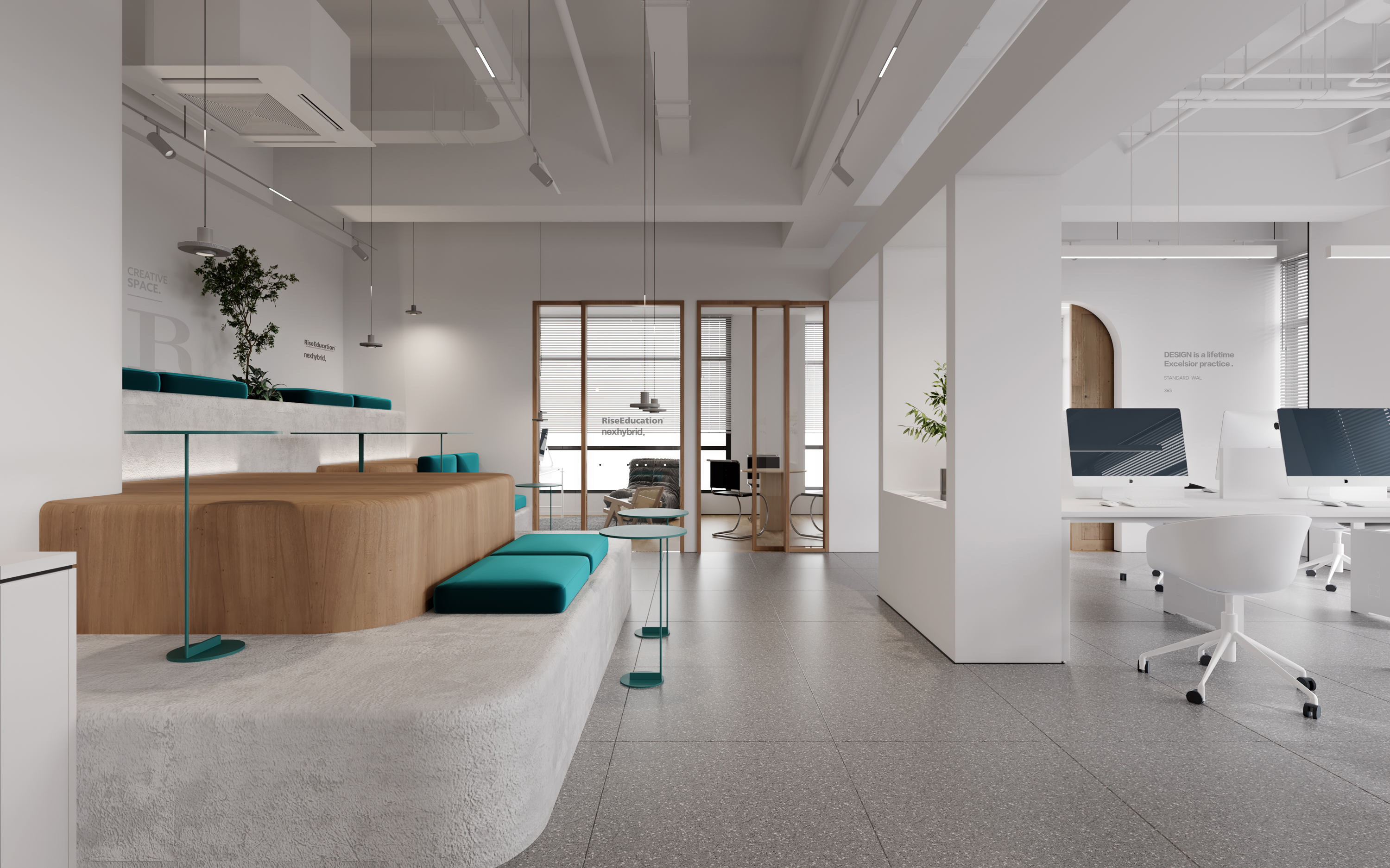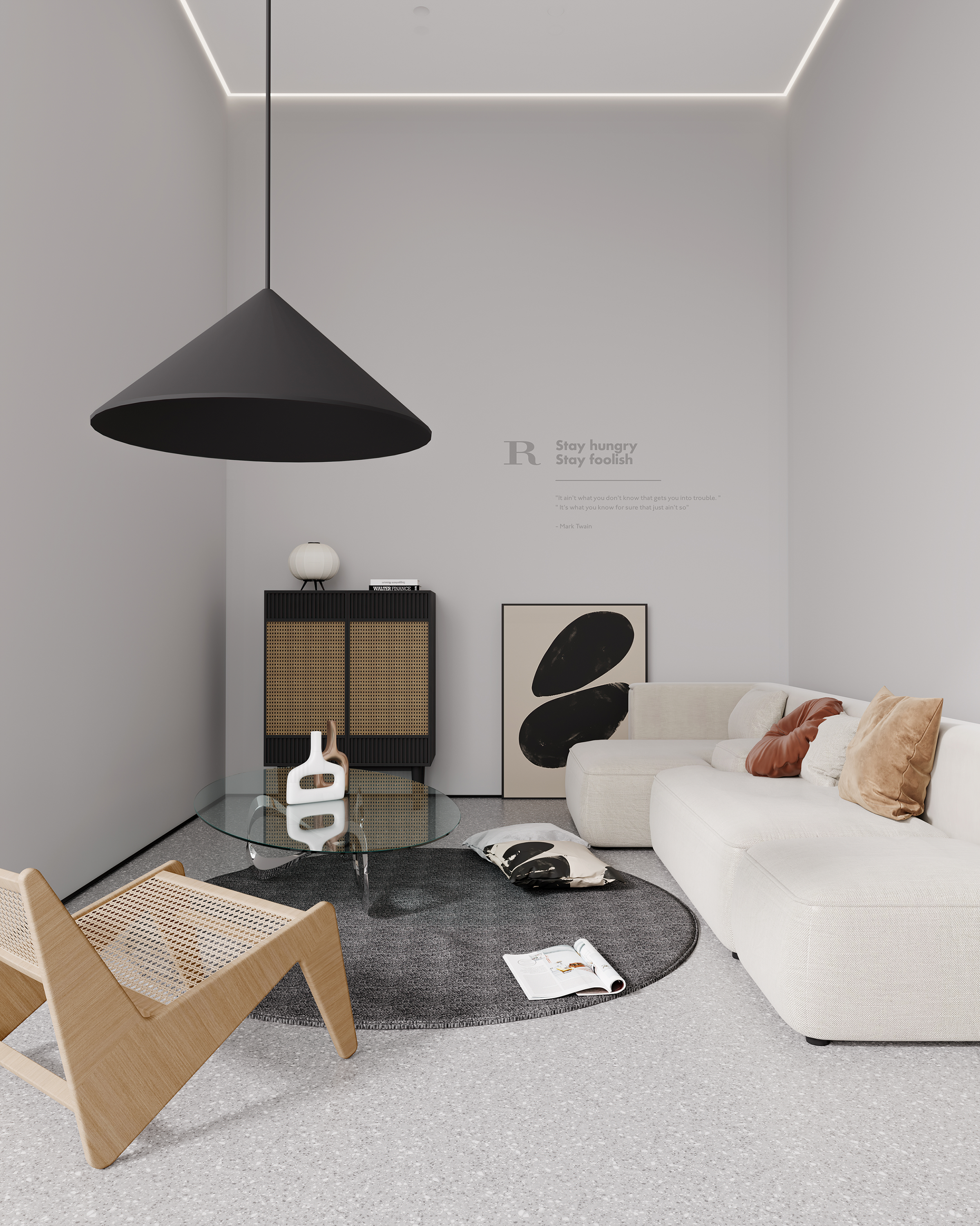 空间本身的材质语言非常简单,以艺术涂料作为主基调,在此基础上,运用木材营造生活化的办公环境,利用玻璃引入光线,增加空间的明亮度,采用金属点缀,丰富空间层次感,诠释独特的空间魅力。