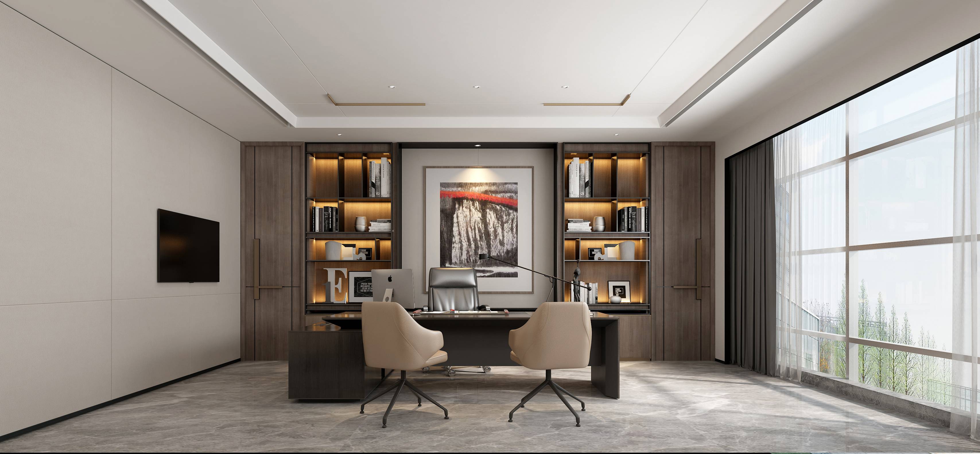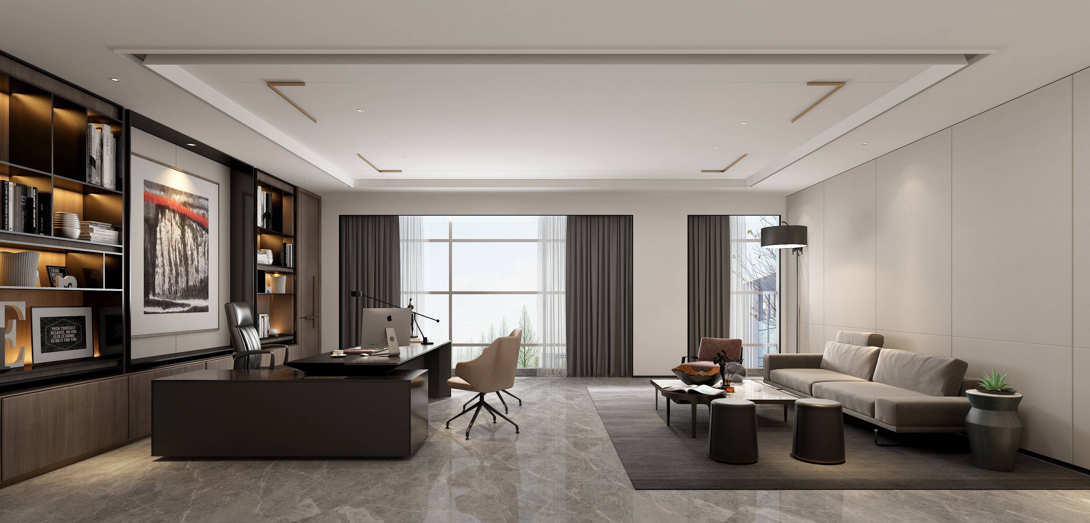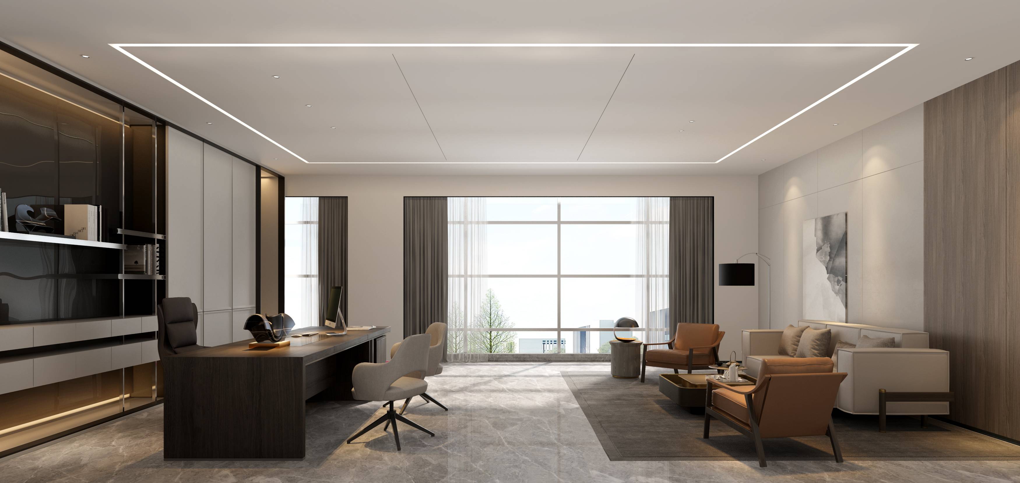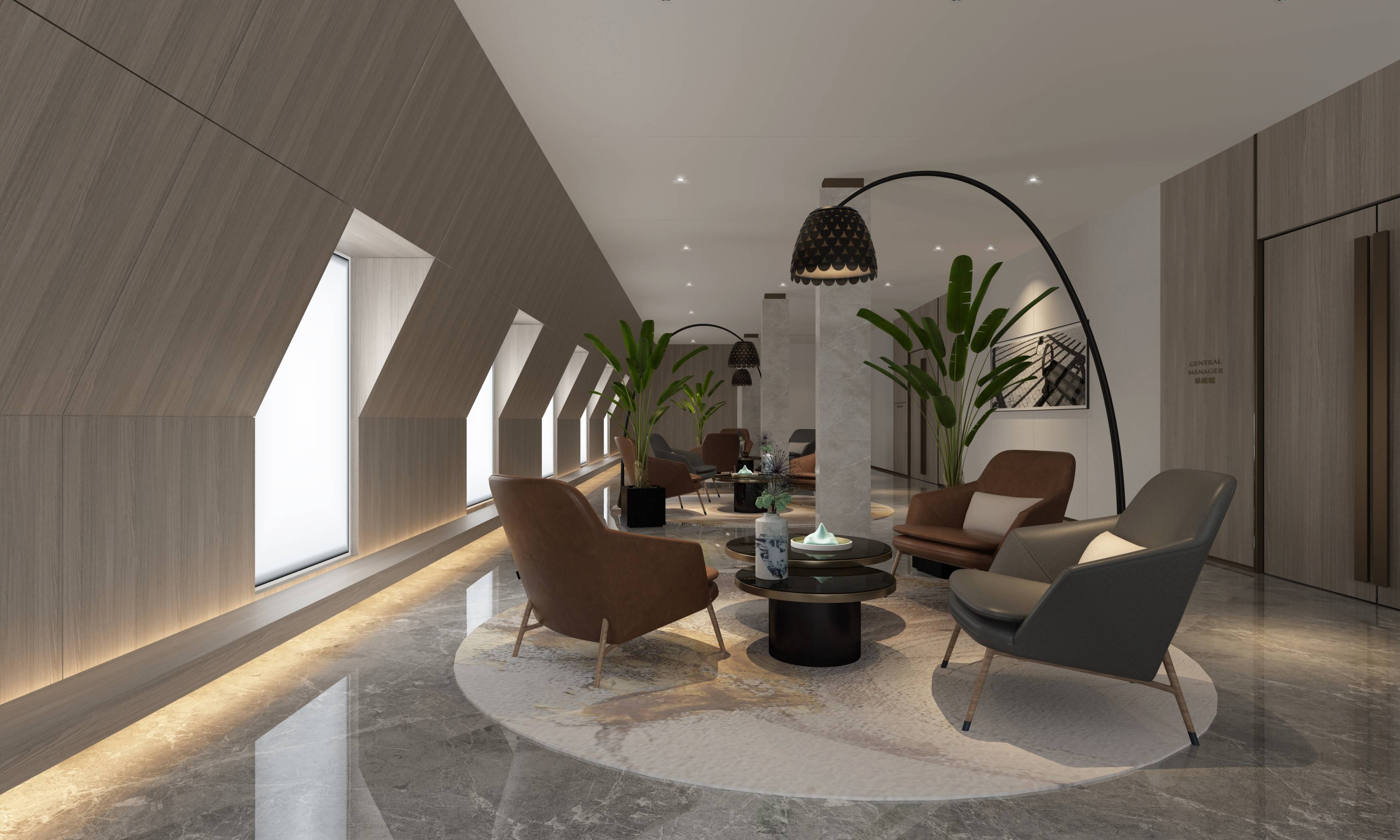 在满足现代多元化、智能化办公模式的同时,汲取了西方现代艺术发轫之处的审美诉求,以映射东方艺术的线性语言,为简单的几何立体空间赋型定调。