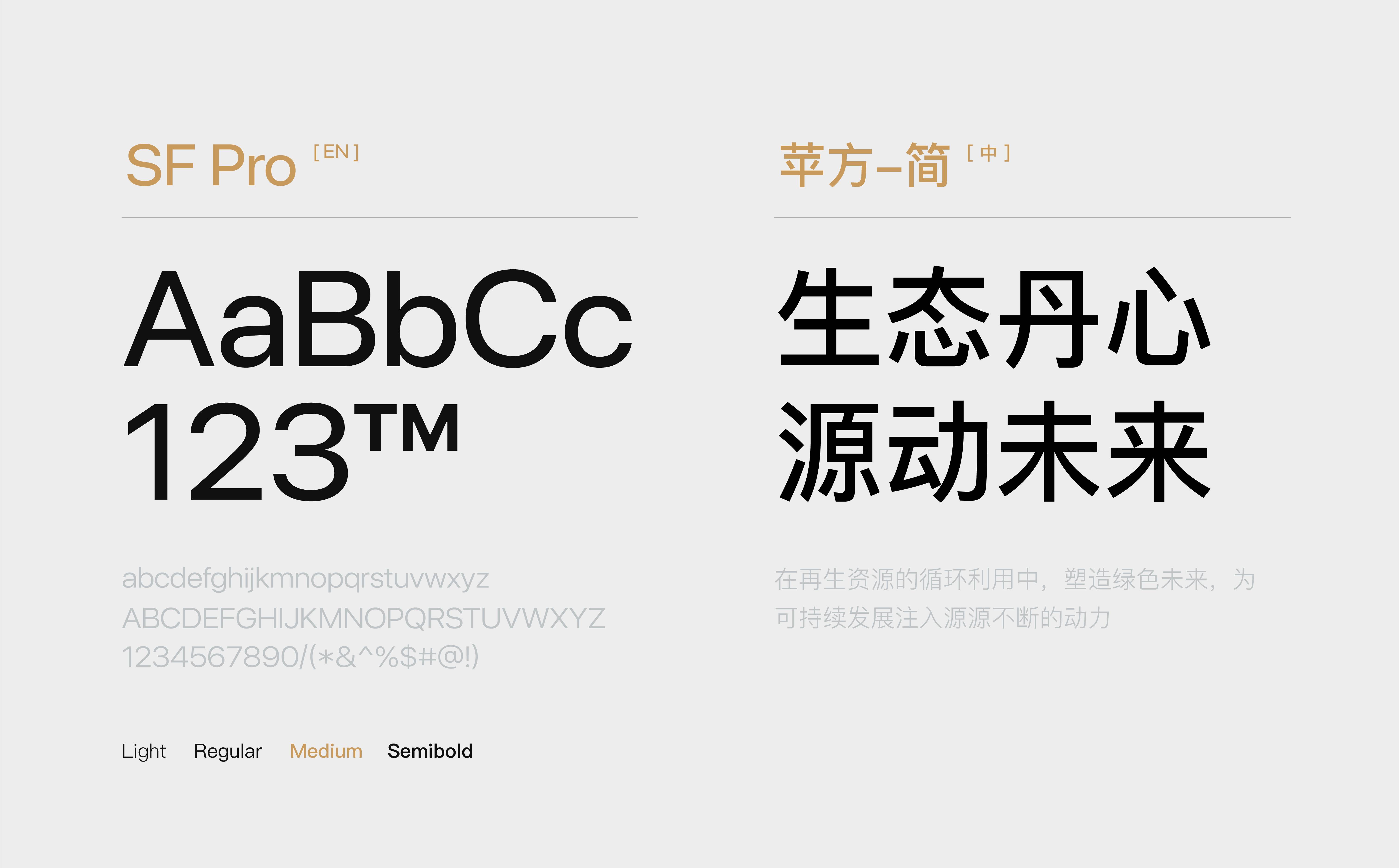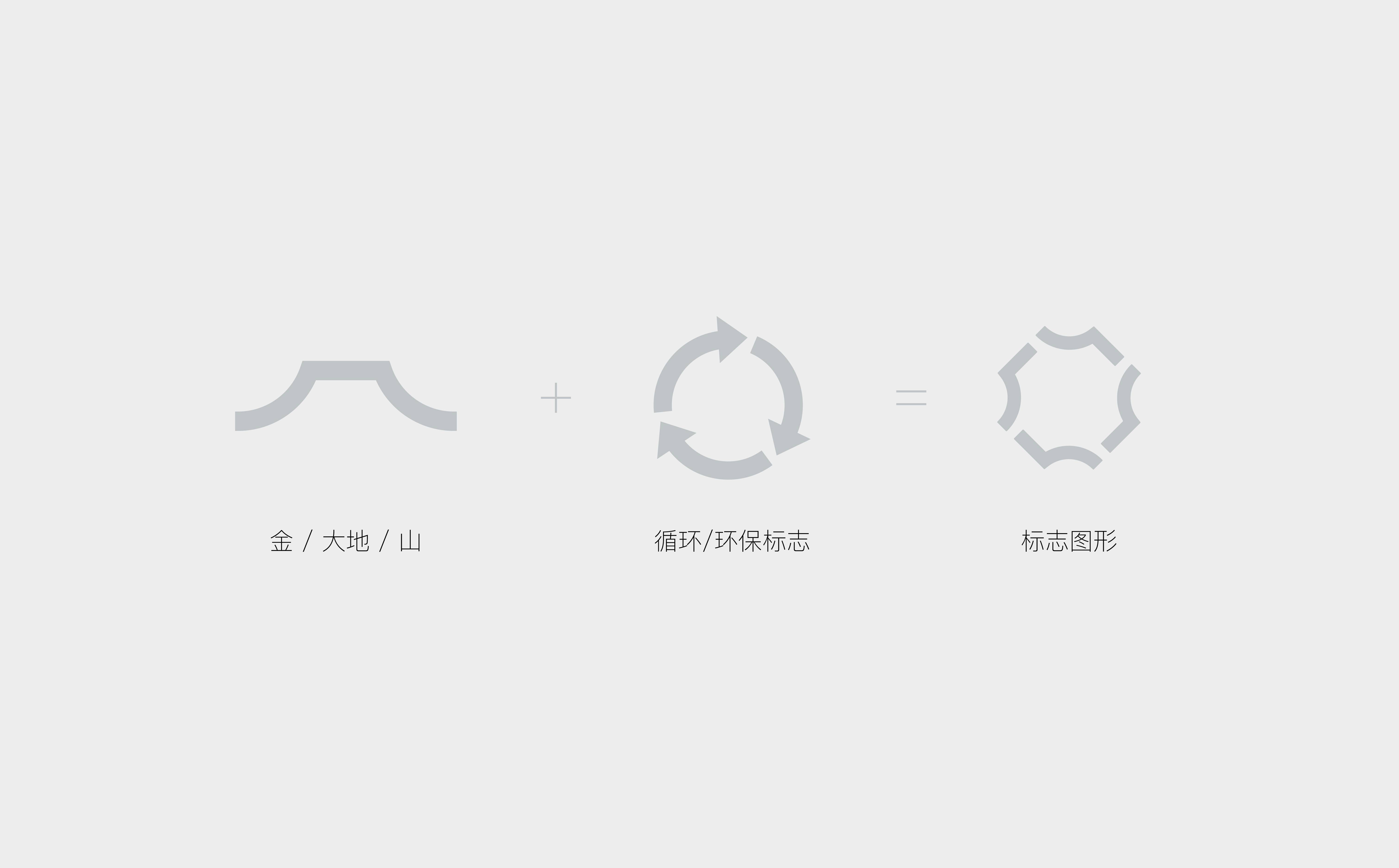 基于品牌属性,字体具备显而易见的品牌特征,同时我们希望它是简约的、易被识别的。从品牌中提取出金、大地、山元素,与科技蓝、环保标志巧妙融合,寓意着循环、再生、回收与创新。