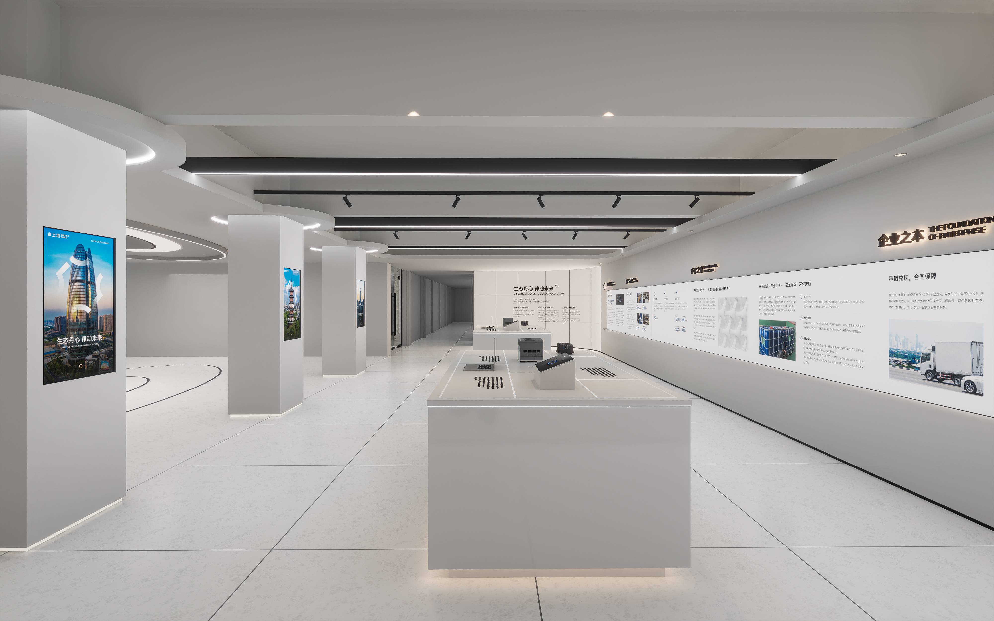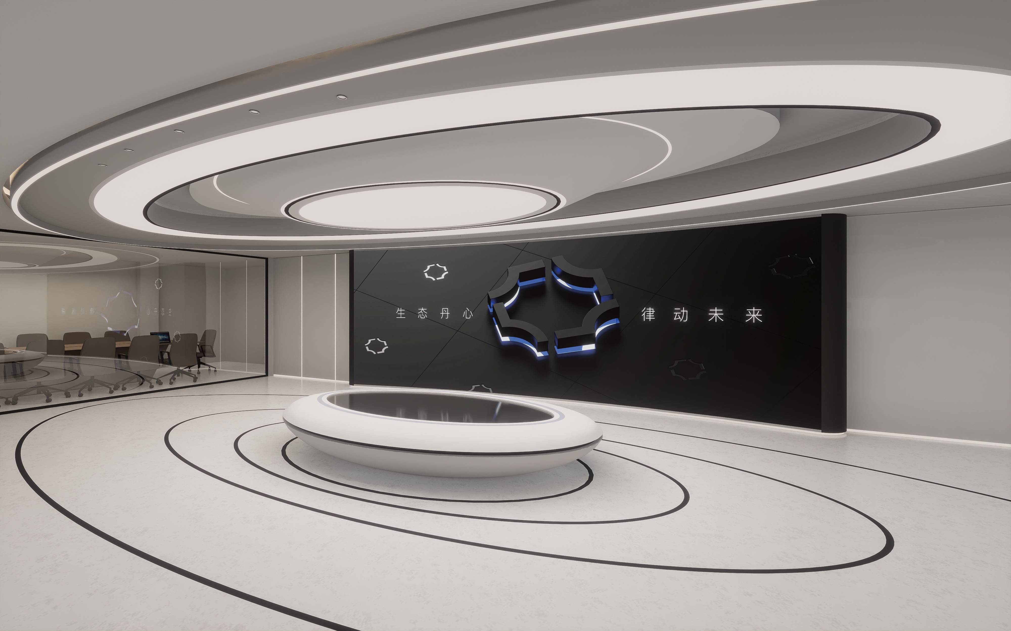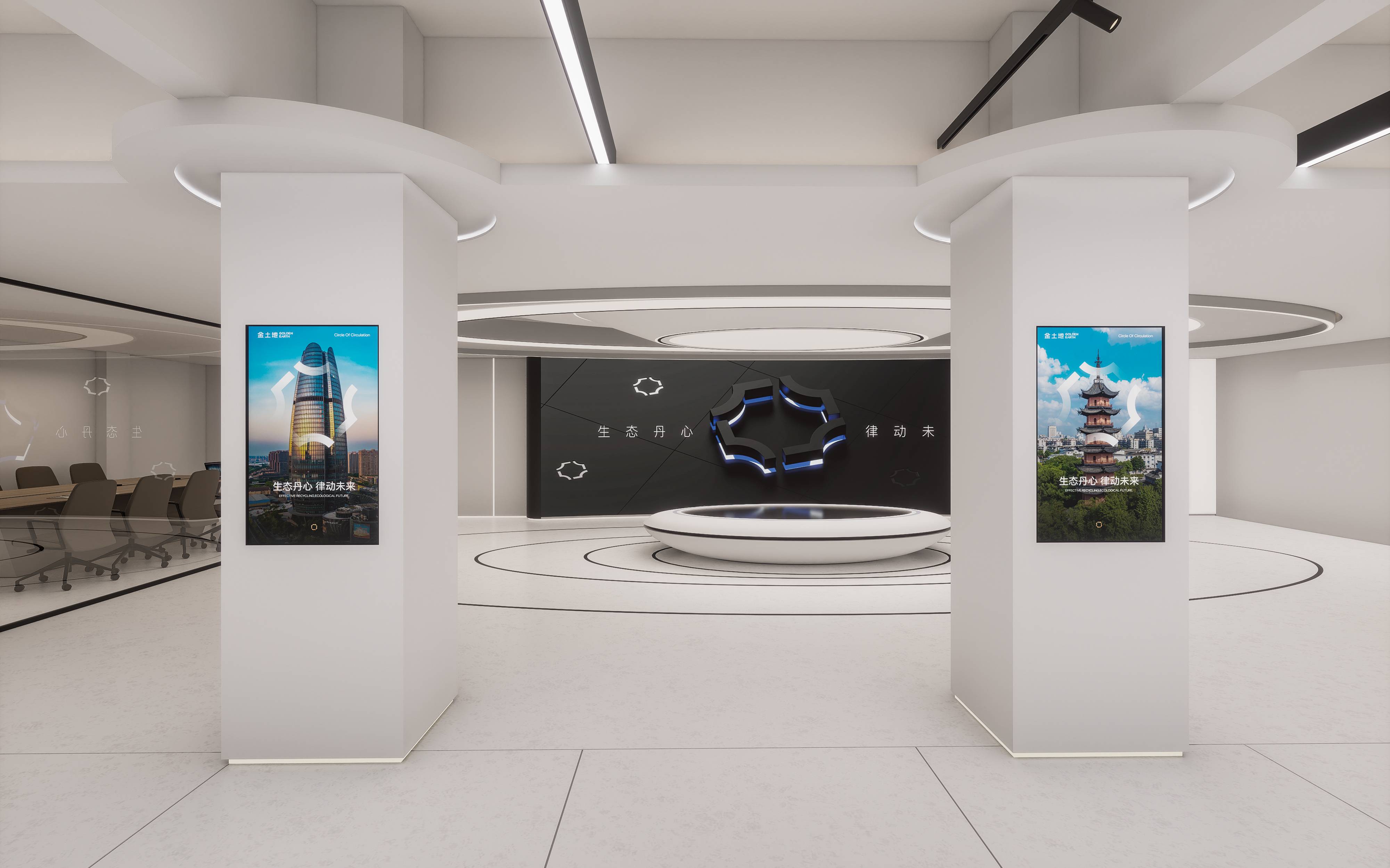 以简洁而干练定位的设计语言,营造了一个严谨而又科学的展厅空间。呼应“三端一数”模式,体现数字化展厅,打造智慧环保的展示平台,展现对未来城市环境的一个期许和探索。