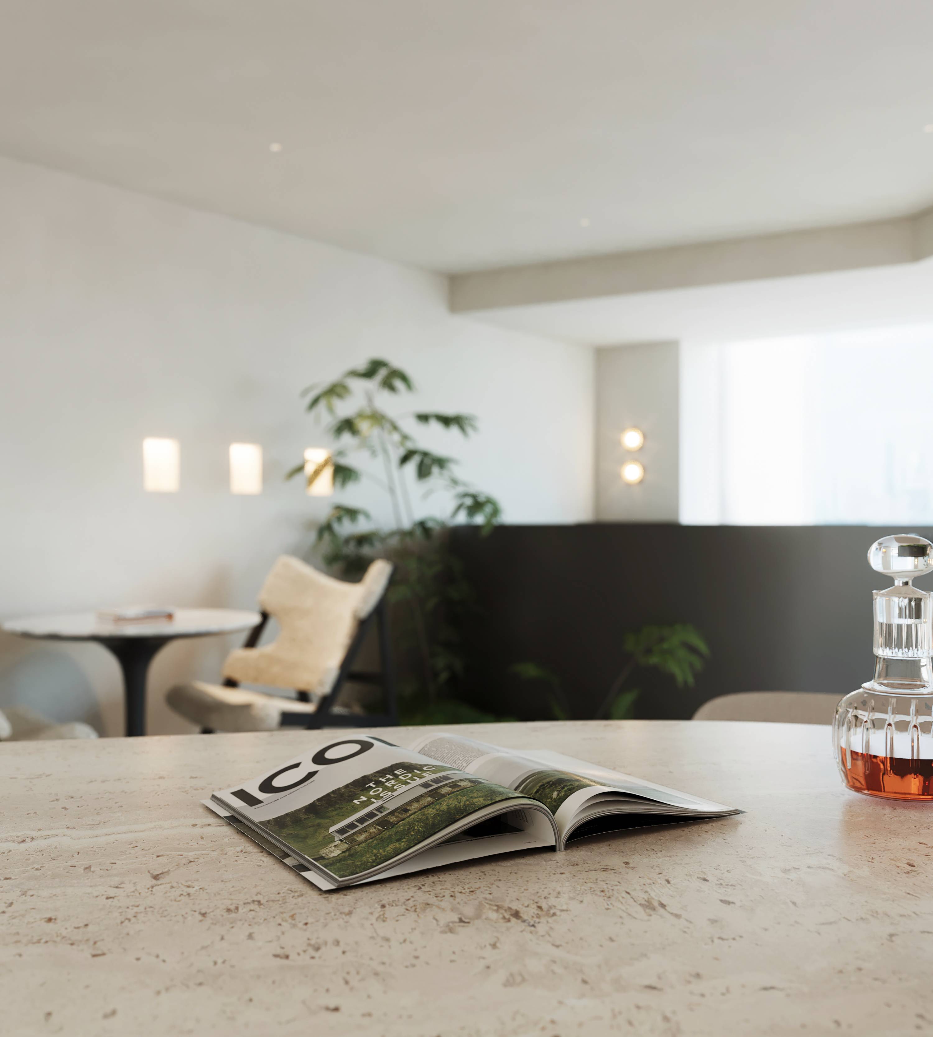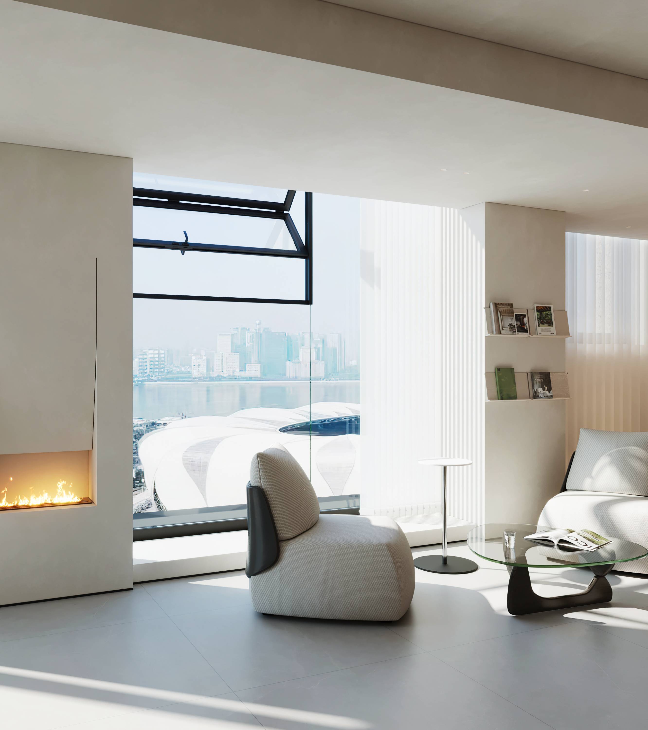 材质上,选用细腻平滑的涂料大面积铺设空间,纯净而简约;木饰面携温润肌理与柔和色泽穿插其中,以自然笔触柔化冷硬线条,调和出温暖氛围。硬朗光滑的石材、金属、玻璃则为空间带来了丰富的层次感和透光感,共同交织出兼具品质感与舒适体验的立体空间美学。