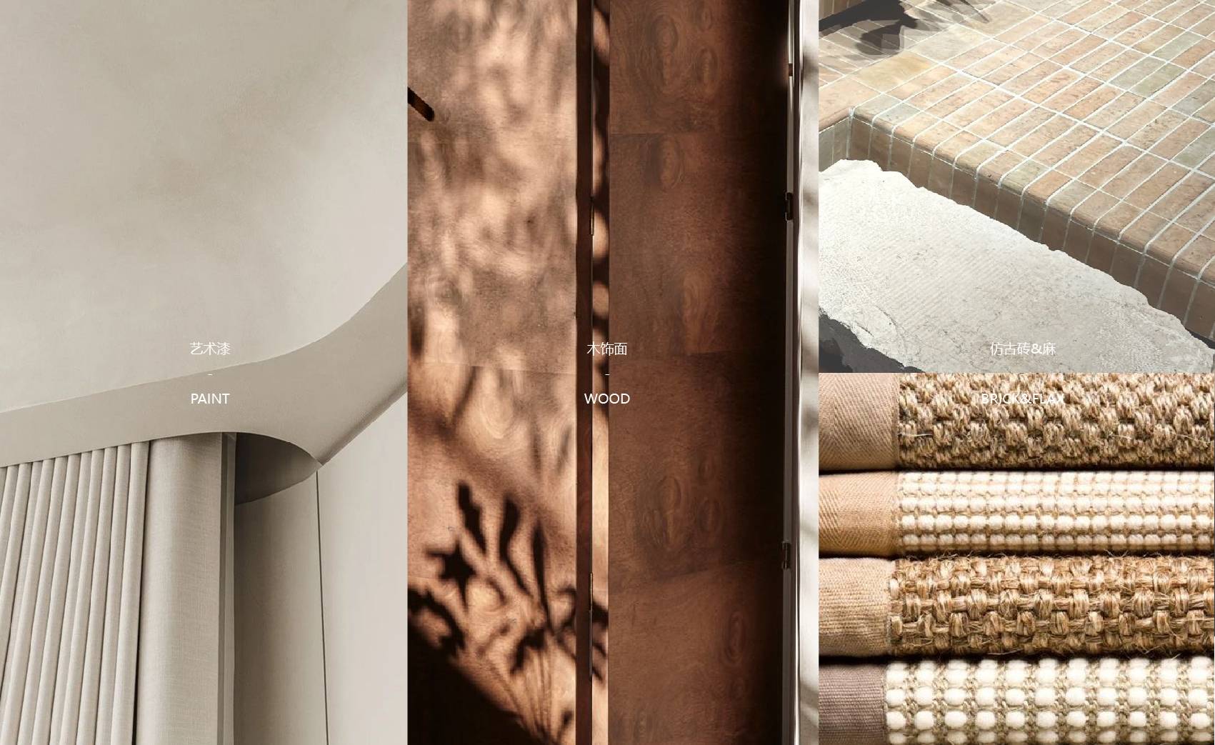 材质上,以细腻的艺术漆为基底,木饰面的天然纹理流淌出质朴气息,粗粝仿古砖沉淀着岁月的温润感,麻质材料的纤维肌理则带来柔和触感。多种材质交融,营造出温暖舒适、充满手工匠造温度的氛围,契合品牌天然调性。