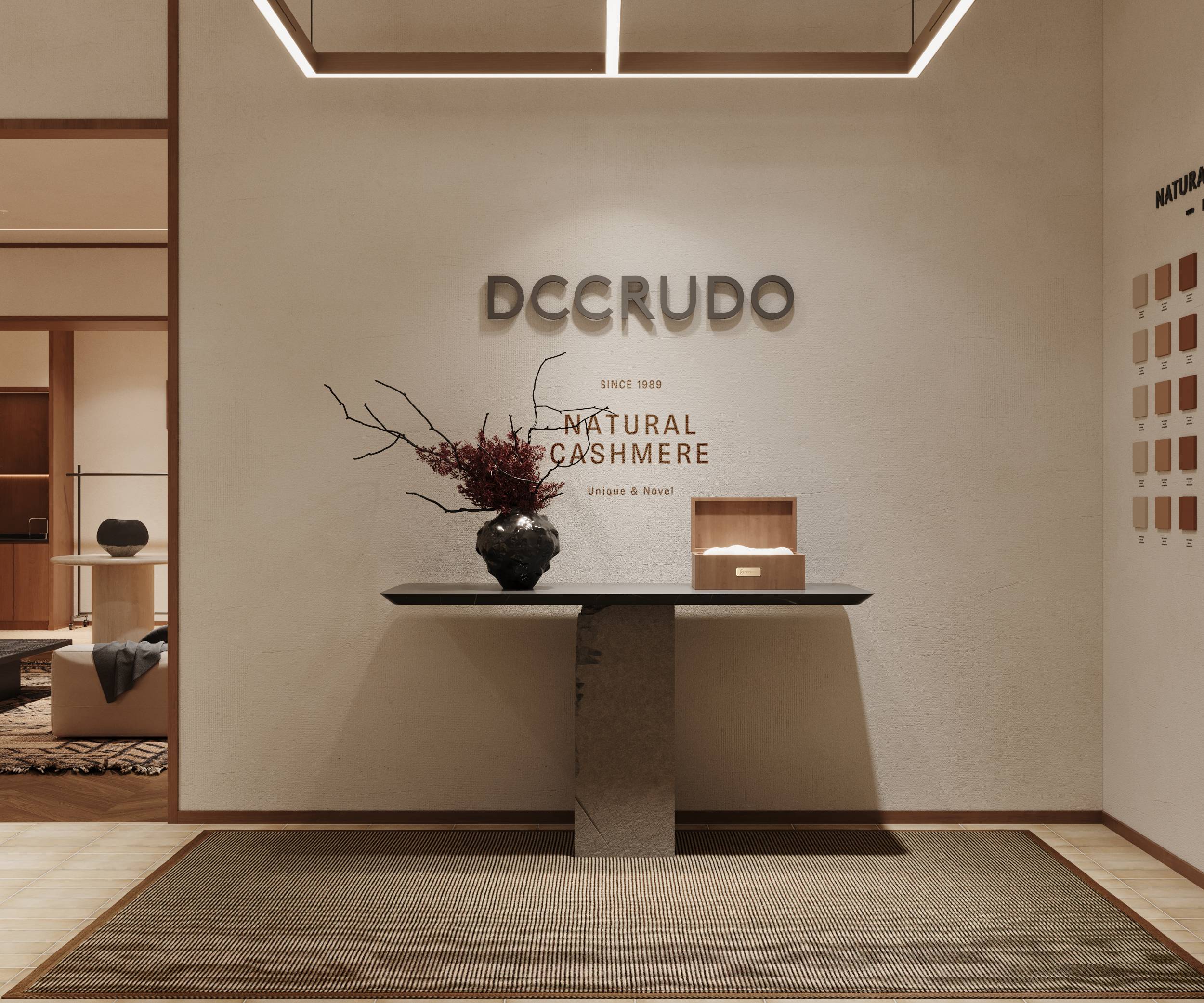 于细节处,将麻绳织料装饰于地面、墙面等,无声诉说着品牌溯源自然本真的理念。几枝姿态野逸的原生枝条插在素胚陶罐里,如同散落的旧日诗篇,不喧哗,却赋予空间呼吸的韵律与沉淀的故事感。